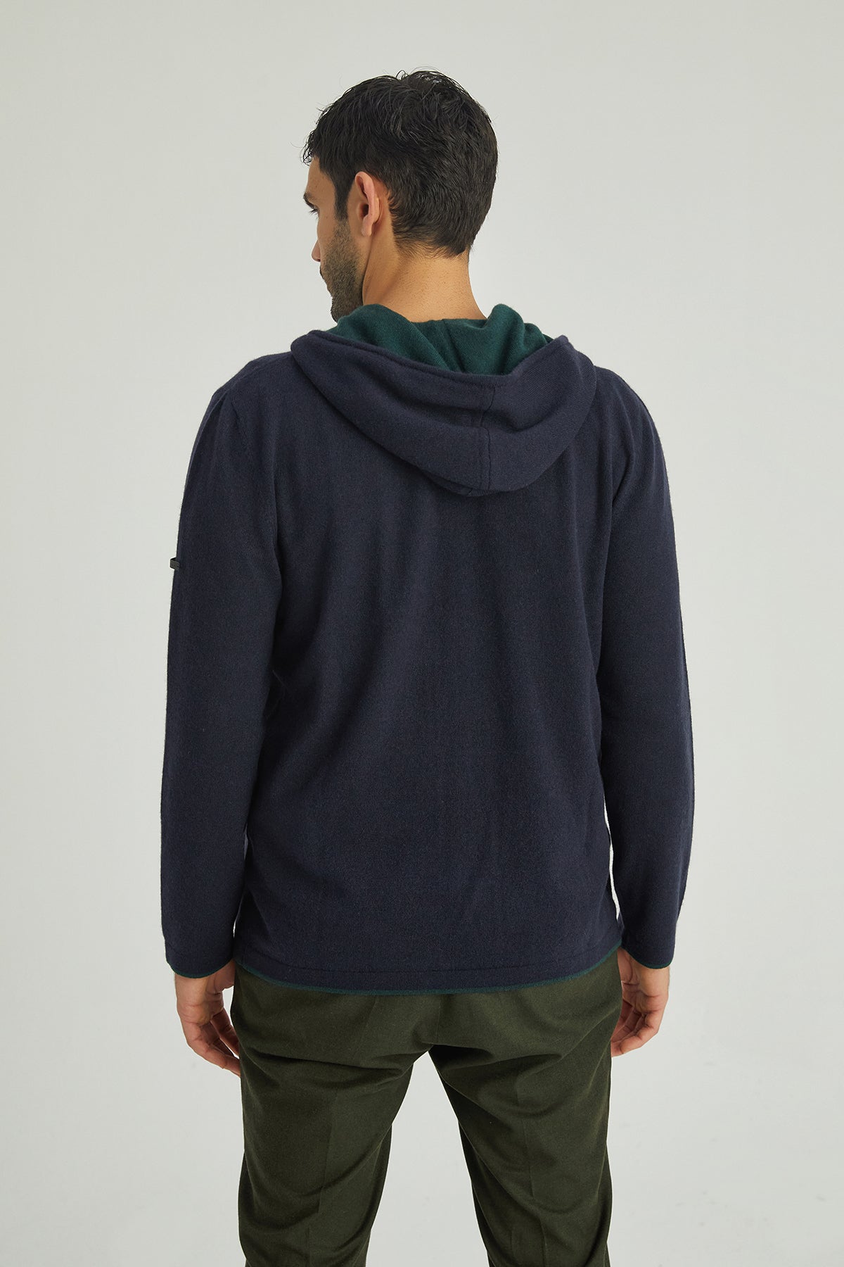 Lacivert Scott Saf Kaşmir Kapüşonlu Hırka