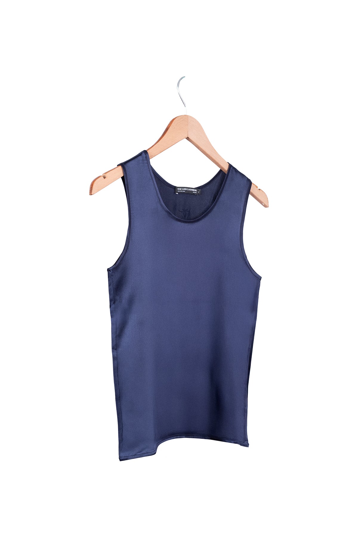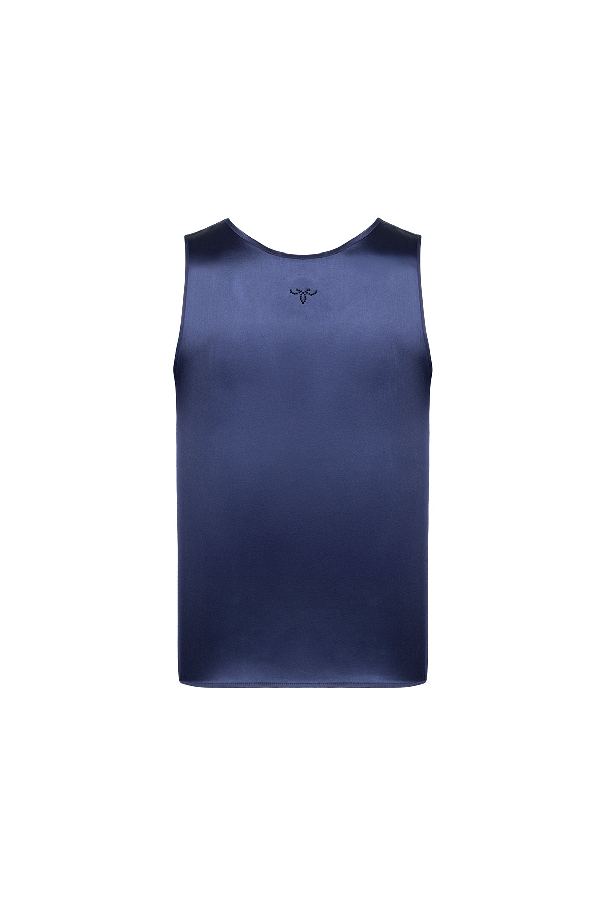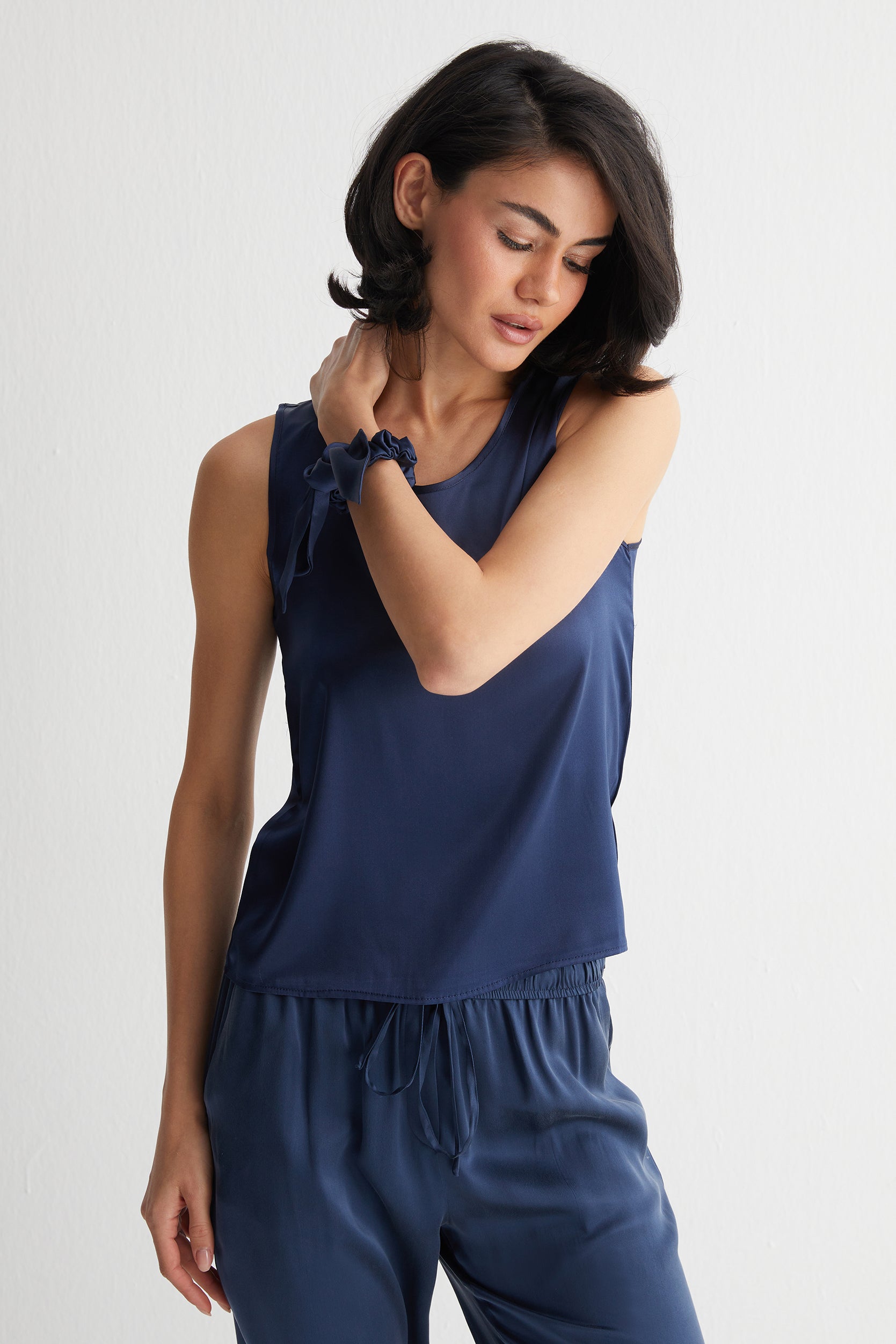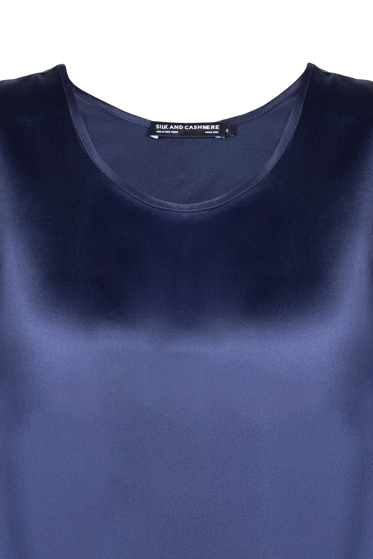Lacivert Toscana İpek Yuvarlak Yaka Bluz