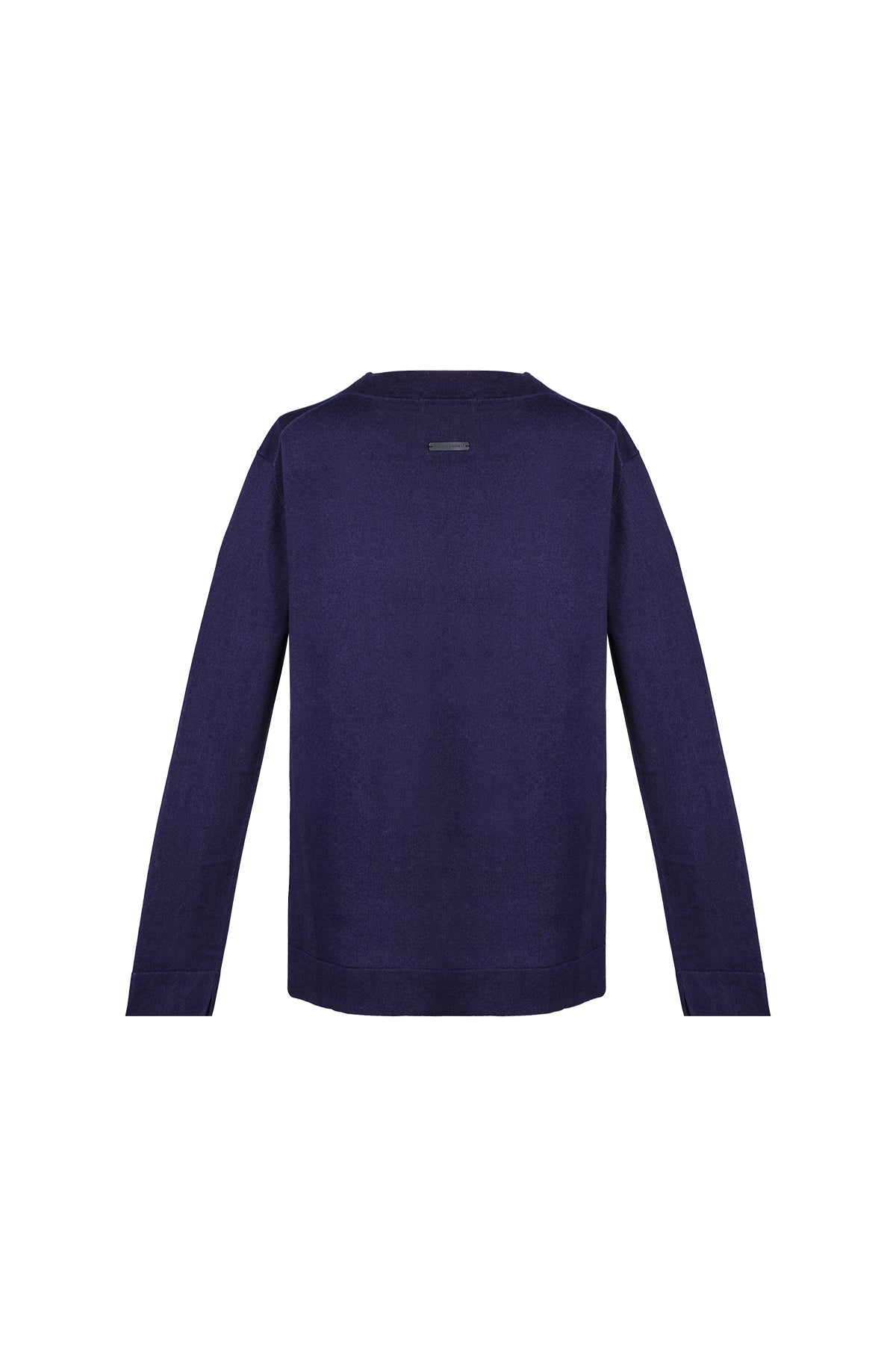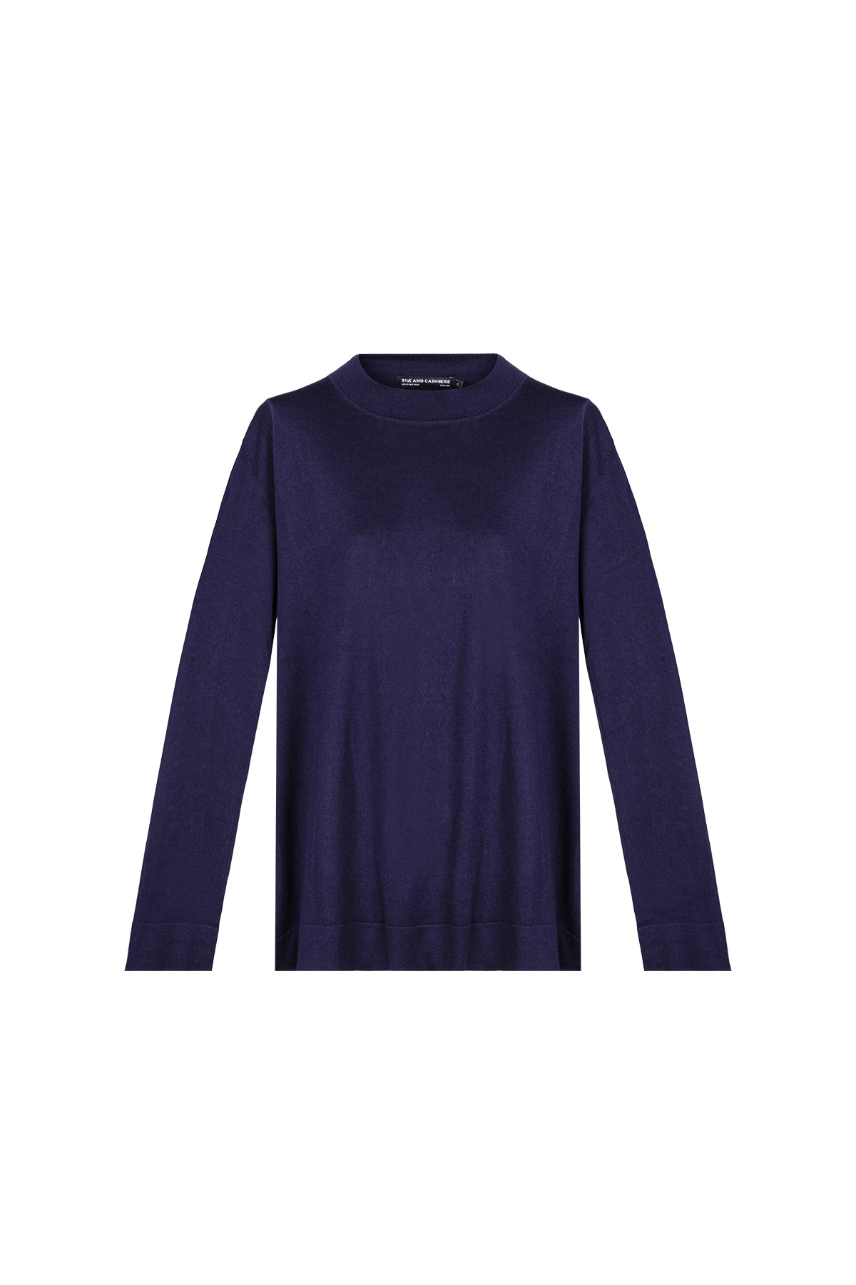 Lacivert Zoe İpek Kaşmir Yuvarlak Yaka Tunik Triko