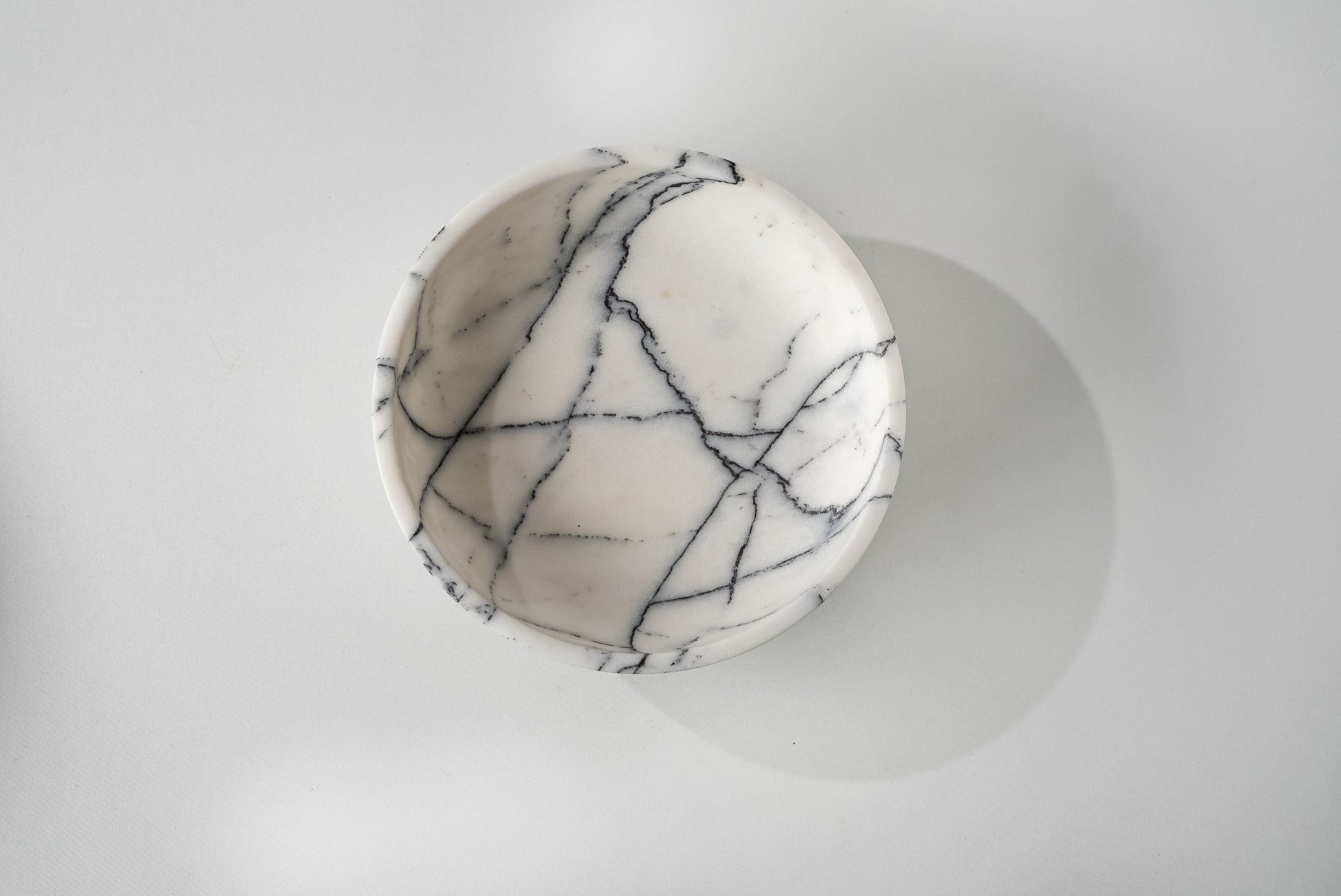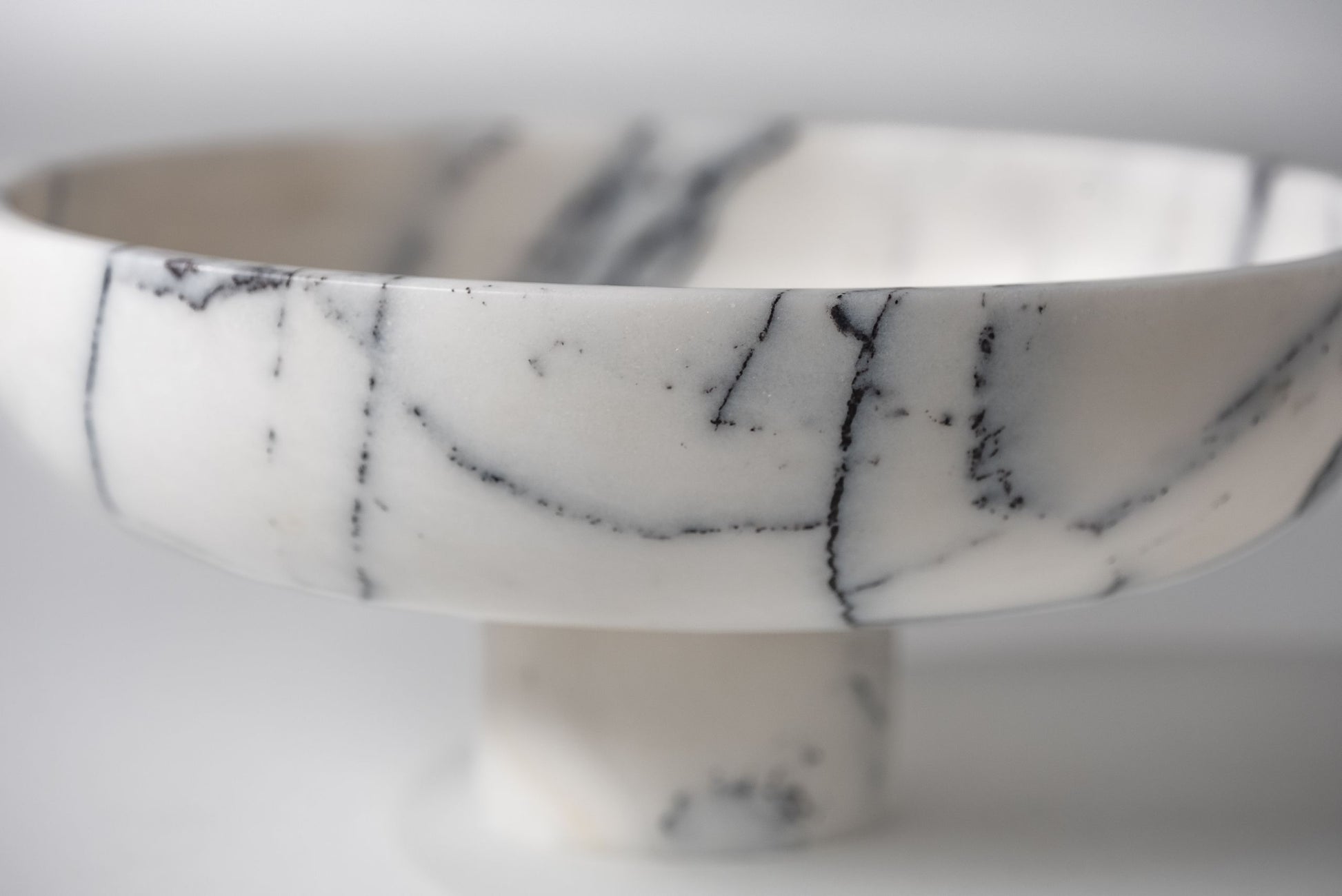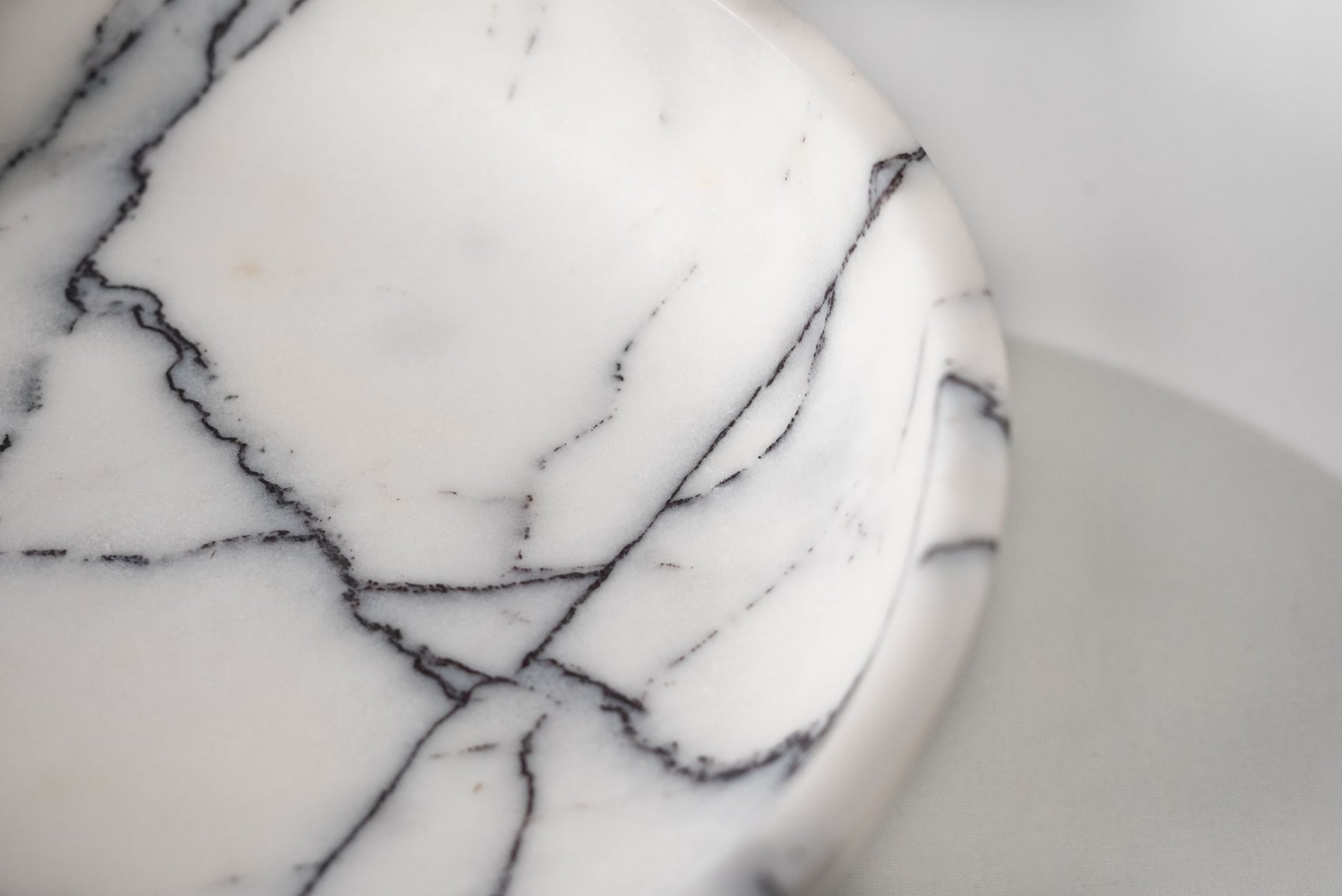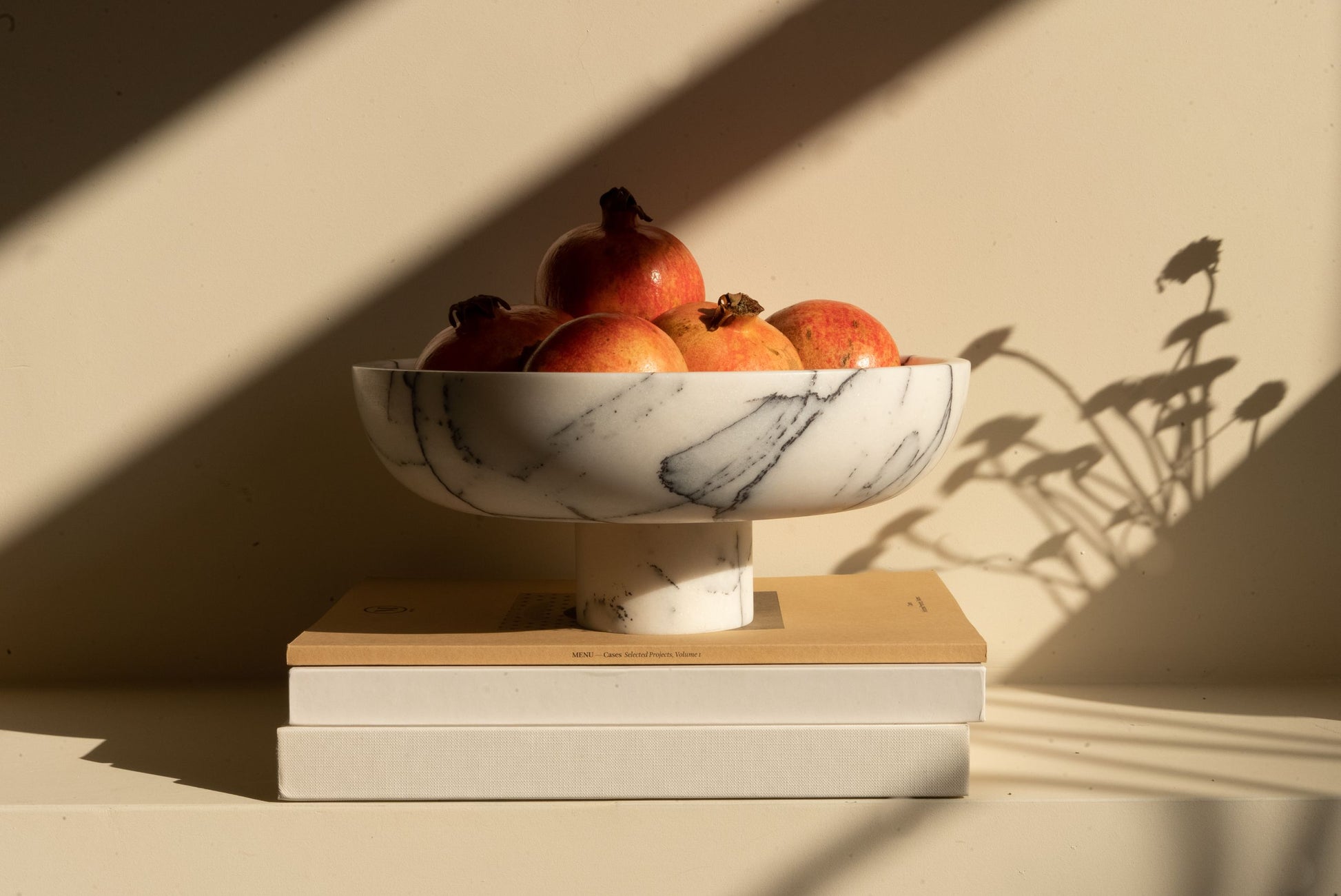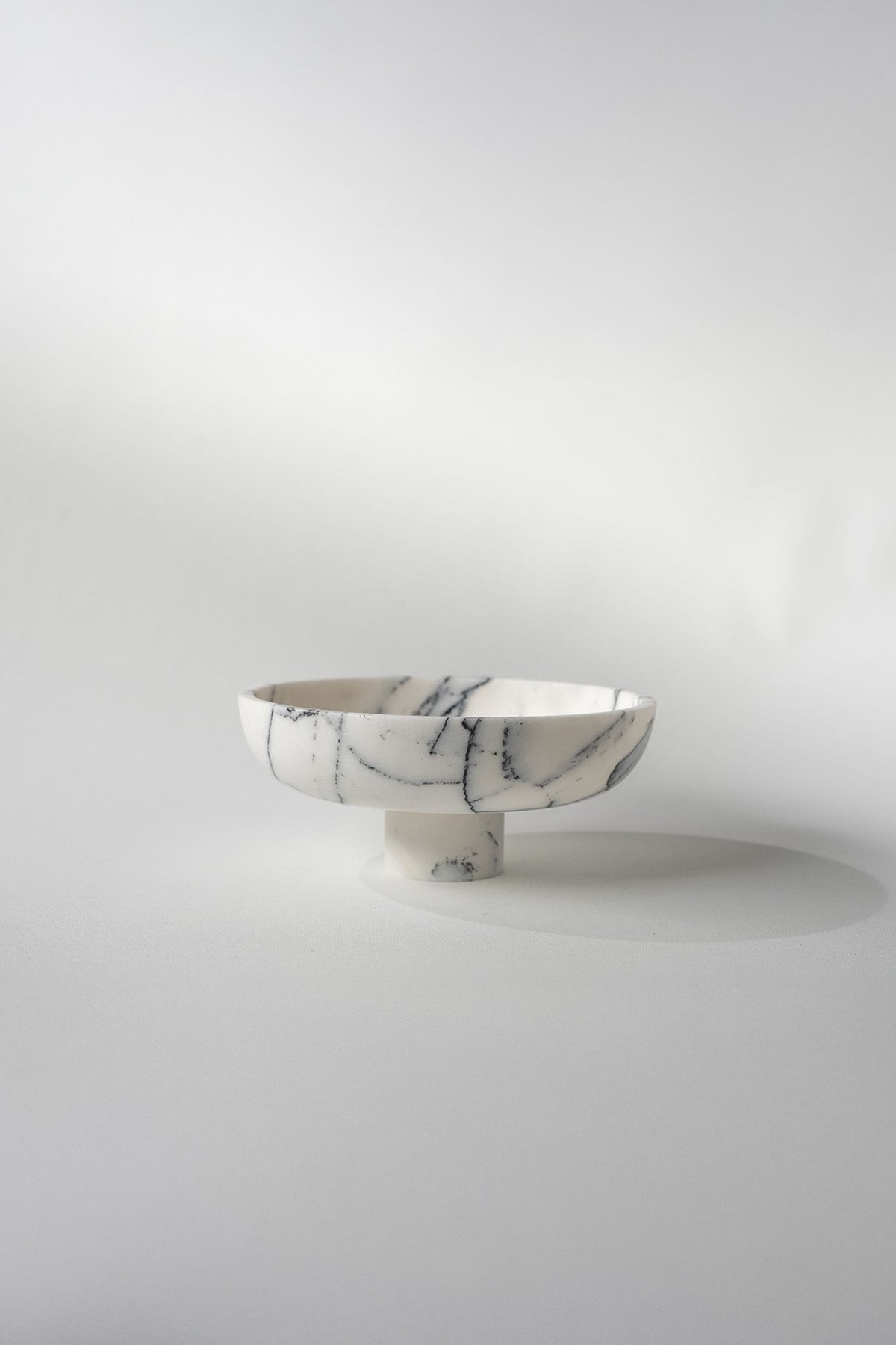 Harriet ayaklı sunum kasesi, klasik formu modern bir duruşla yeniden yorumlarken; mermerin zamansız asaletiyle her sofrada ya da yaşam alanında ayrıcalıklı bir yer edinir. Yükseltilmiş ayak yapısı, objeye hem denge hem de zarif bir yükselti kazandırır. Her biri doğal damar yapısıyla farklılık gösteren bu mermer parça, işlevsel olduğu kadar estetik açıdan da güçlü bir duruş sergiler.