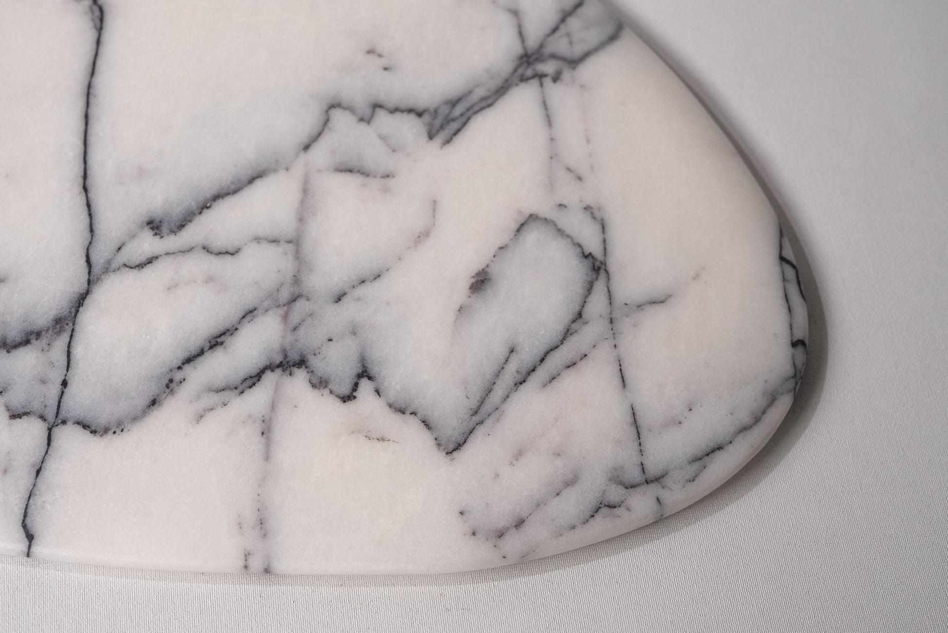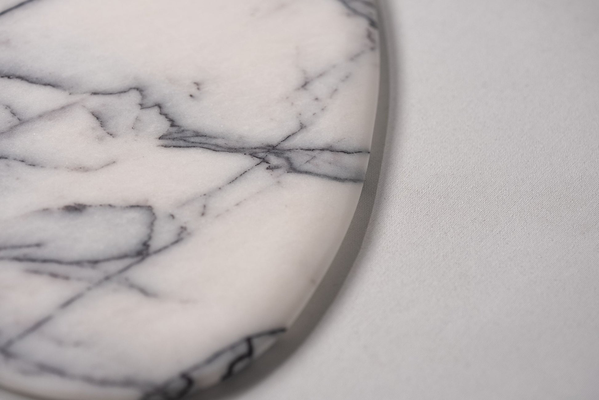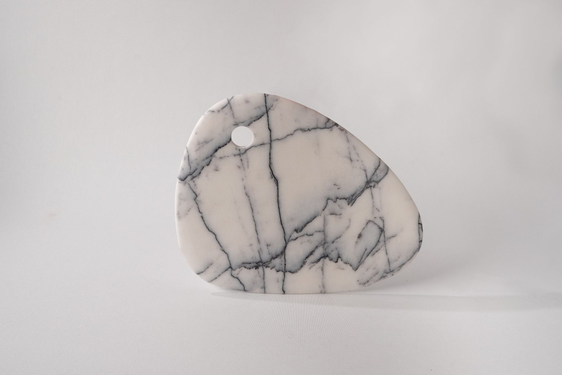 Saar Kesme Tahtası, mermerin doğal dokusunu organik bir form ile birleştirerek mutfaklara hem estetik hem de işlevsel bir dokunuş sunar. Doğal desen yapısıyla her parça kendine özgüdür ve tezgâh üzerinde bir tasarım objesi gibi durur. İster kesme tahtası, ister sunum alanı olarak kullanılabilir.