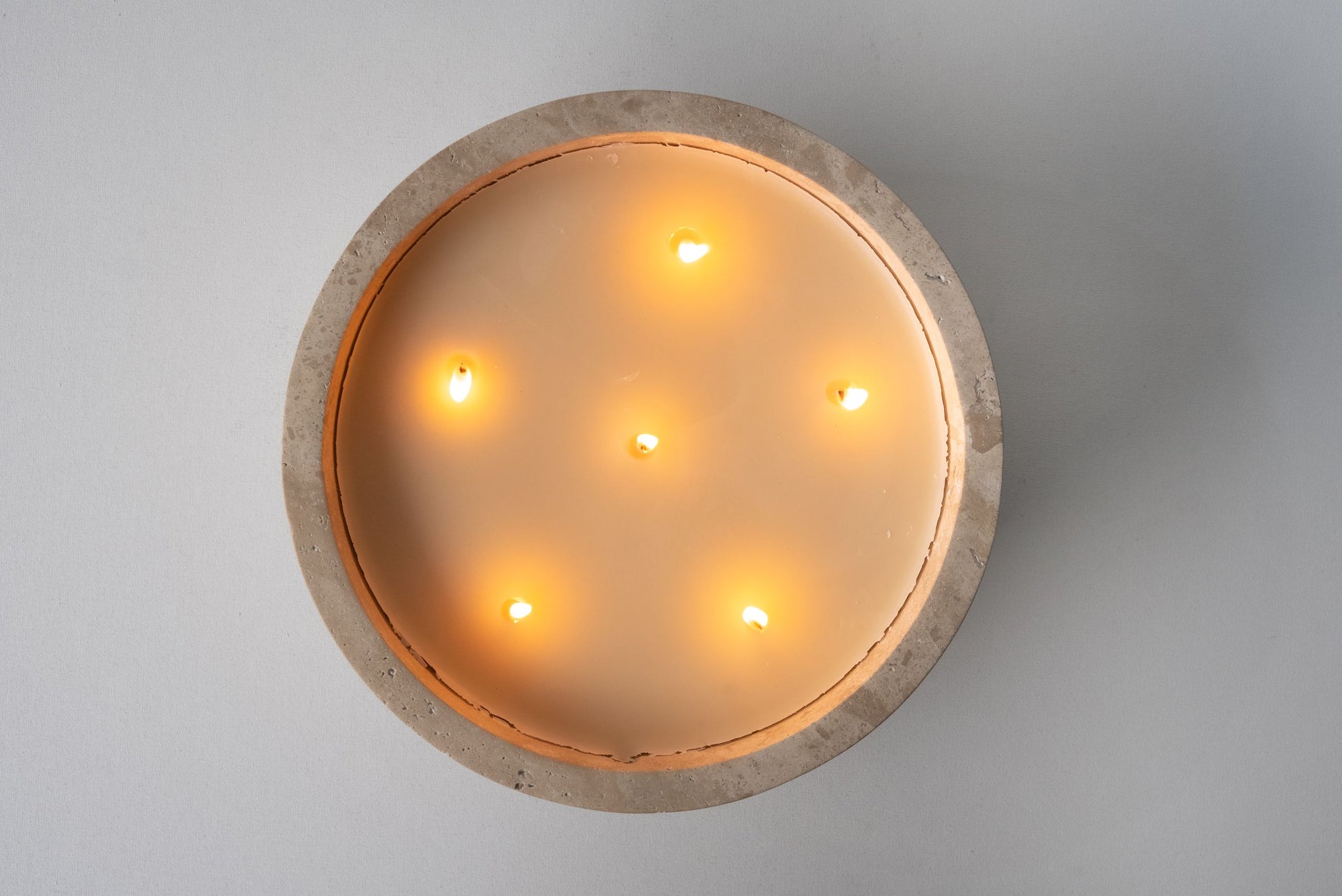Ziya Stone Mum Large, yalınlığı heykelsi bir zarafetle buluşturarak yaşam alanlarınıza huzurlu bir odak noktası kazandırır. Doğal mermerin kendine özgü damar yapısı ve pürüzsüz yüzeyi, her bir ürünü benzersiz kılar. %100 doğal, kokulu soya mumu ile birleşen bu özel parça, yalnızca ışık değil; dinginlik ve doğallık da yayar. Yanmadığı anlarda bile dekoratif bir nesne olarak varlığını hissettirir.