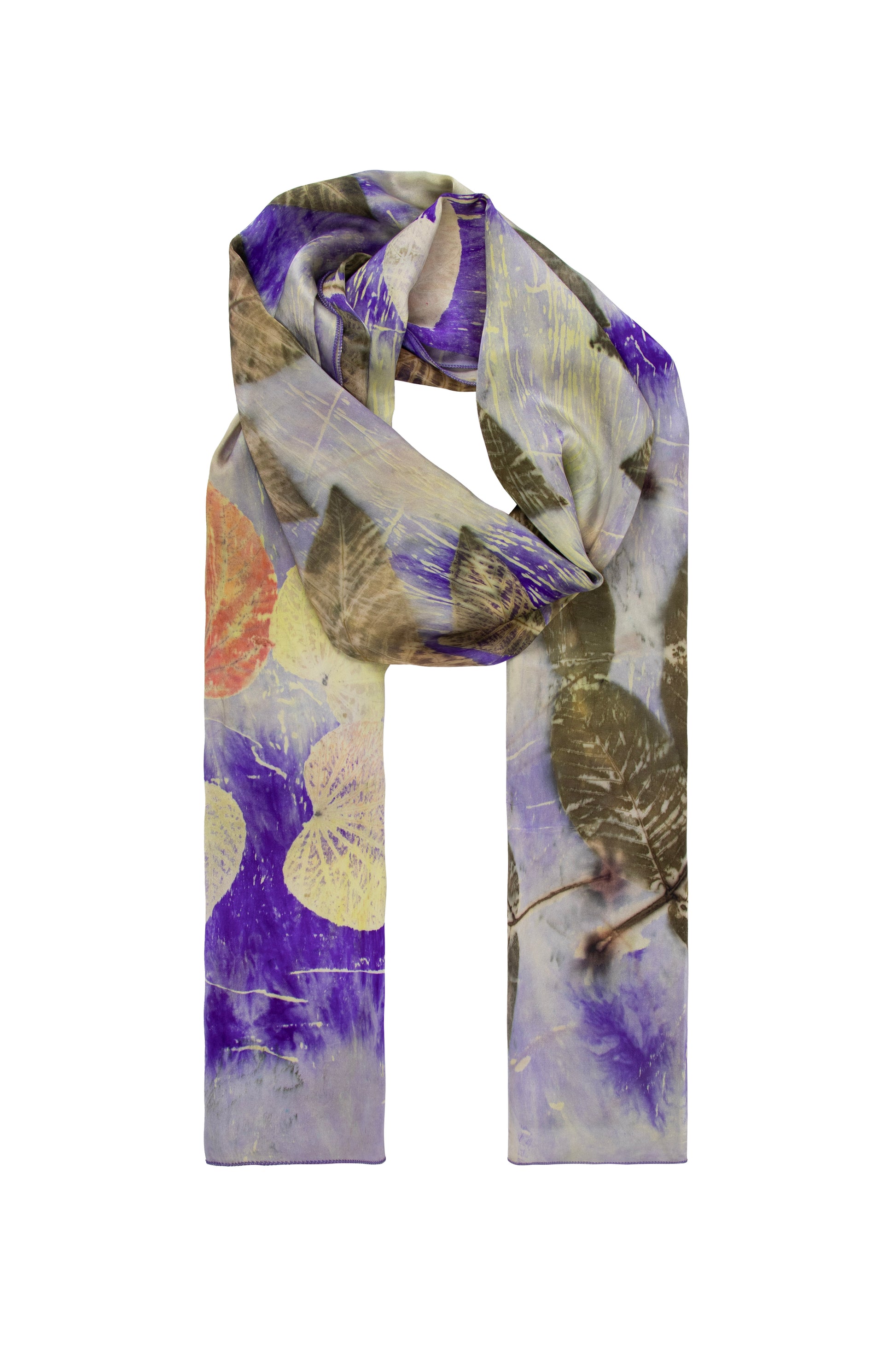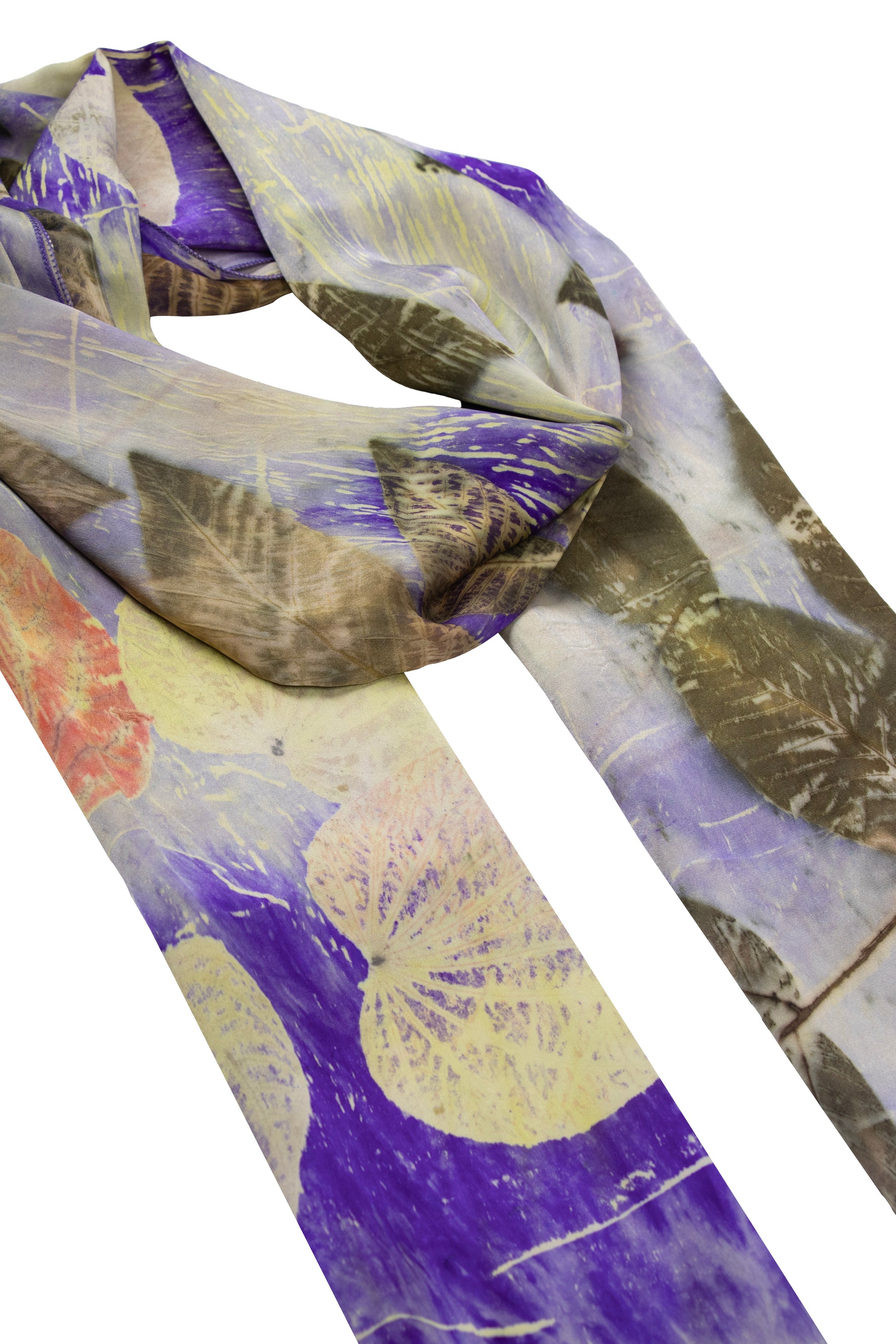 Lila Saf İpek El Baskısı Ekolojik Şal 90 x 200 cm