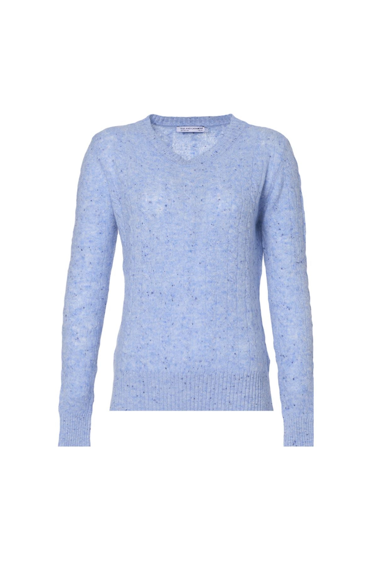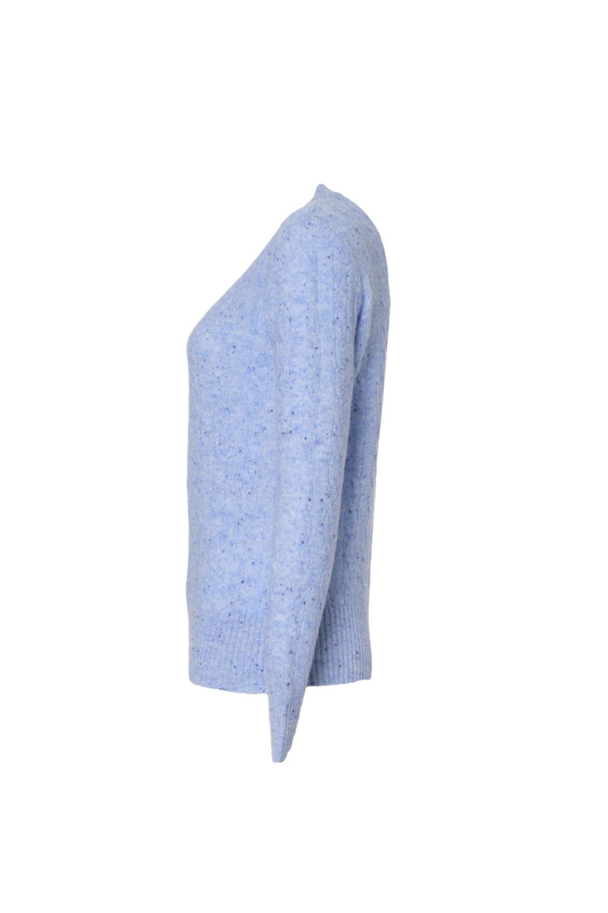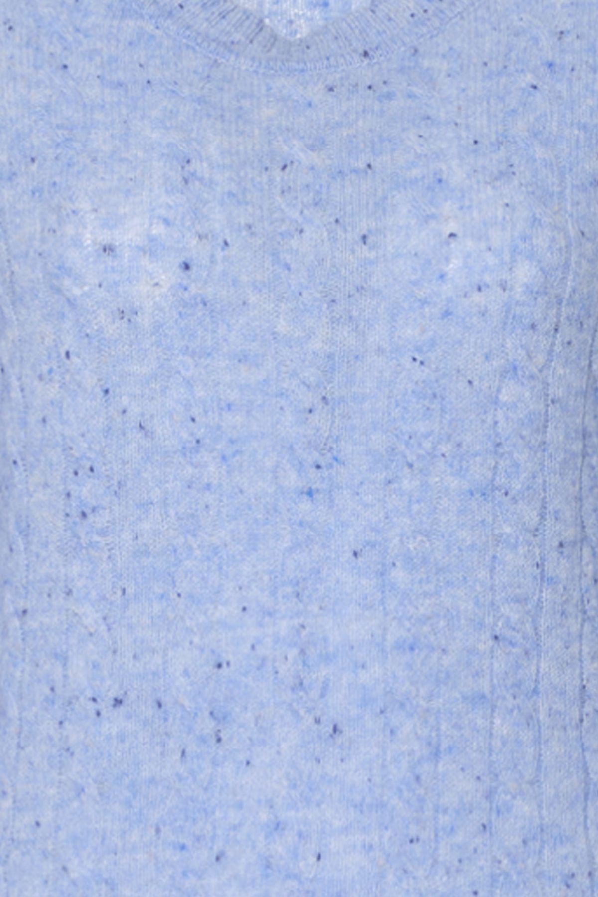 Mavi Amelia Avustralya Yünü Kaşmir Saç Örgülü Yuvarlak Yaka Uzun Kollu Kadın Kazak