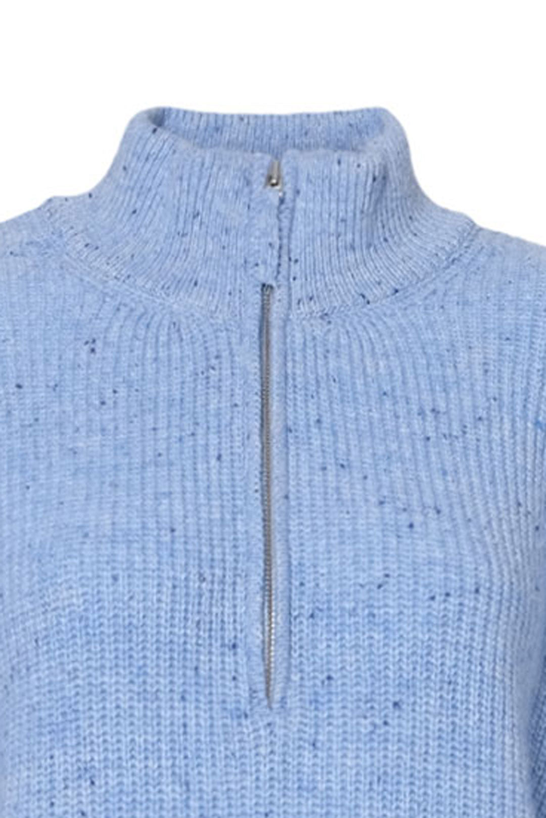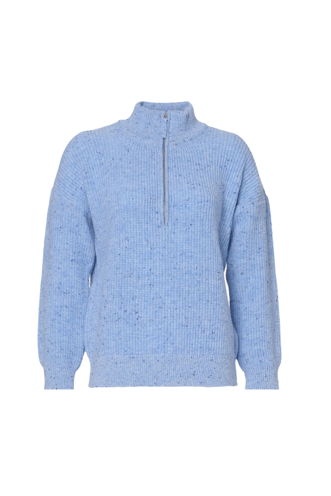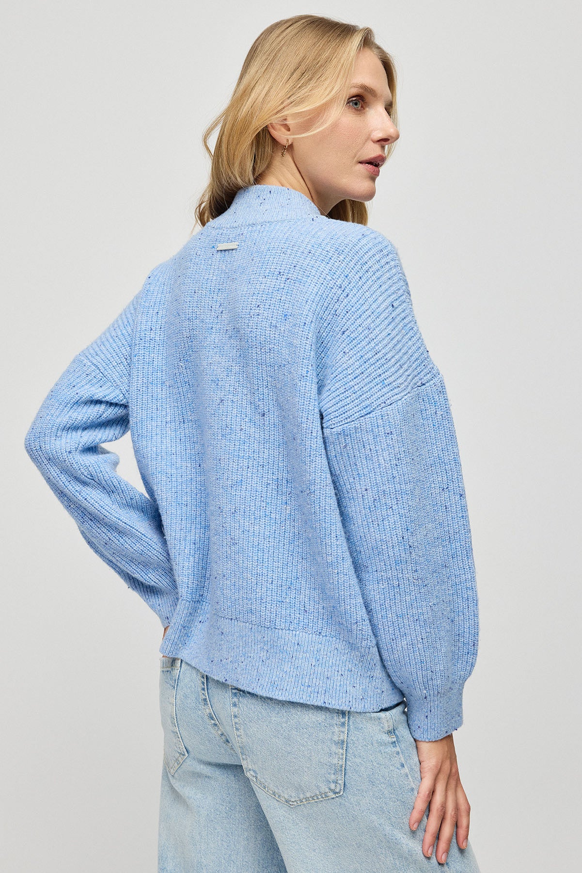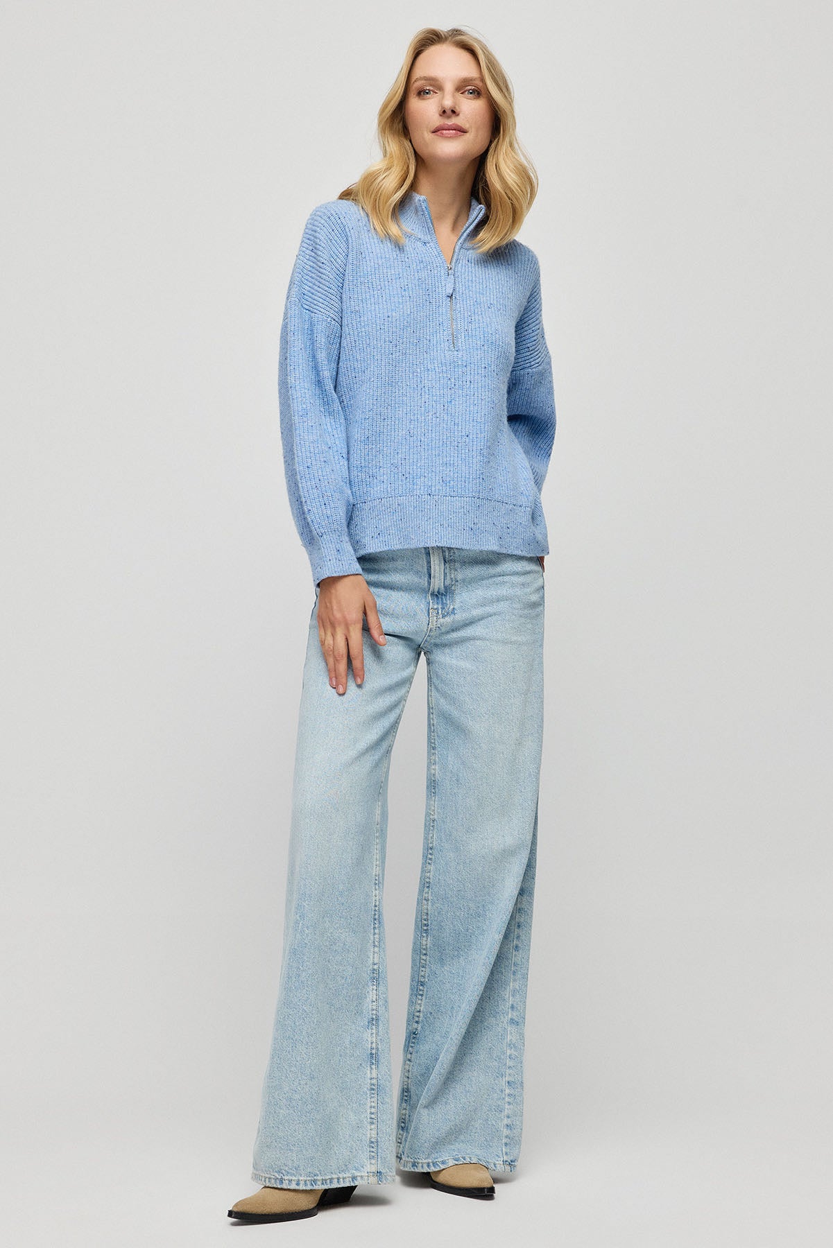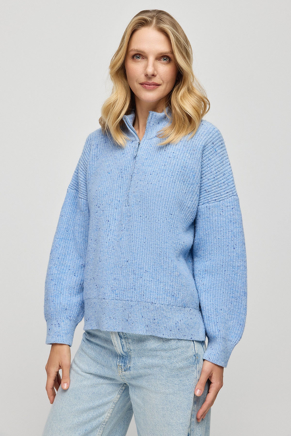 Mavi Aurora Avustralya Yünü Kaşmir Ribana Örgülü Fermuarlı Uzun Kollu Kadın Kazak
