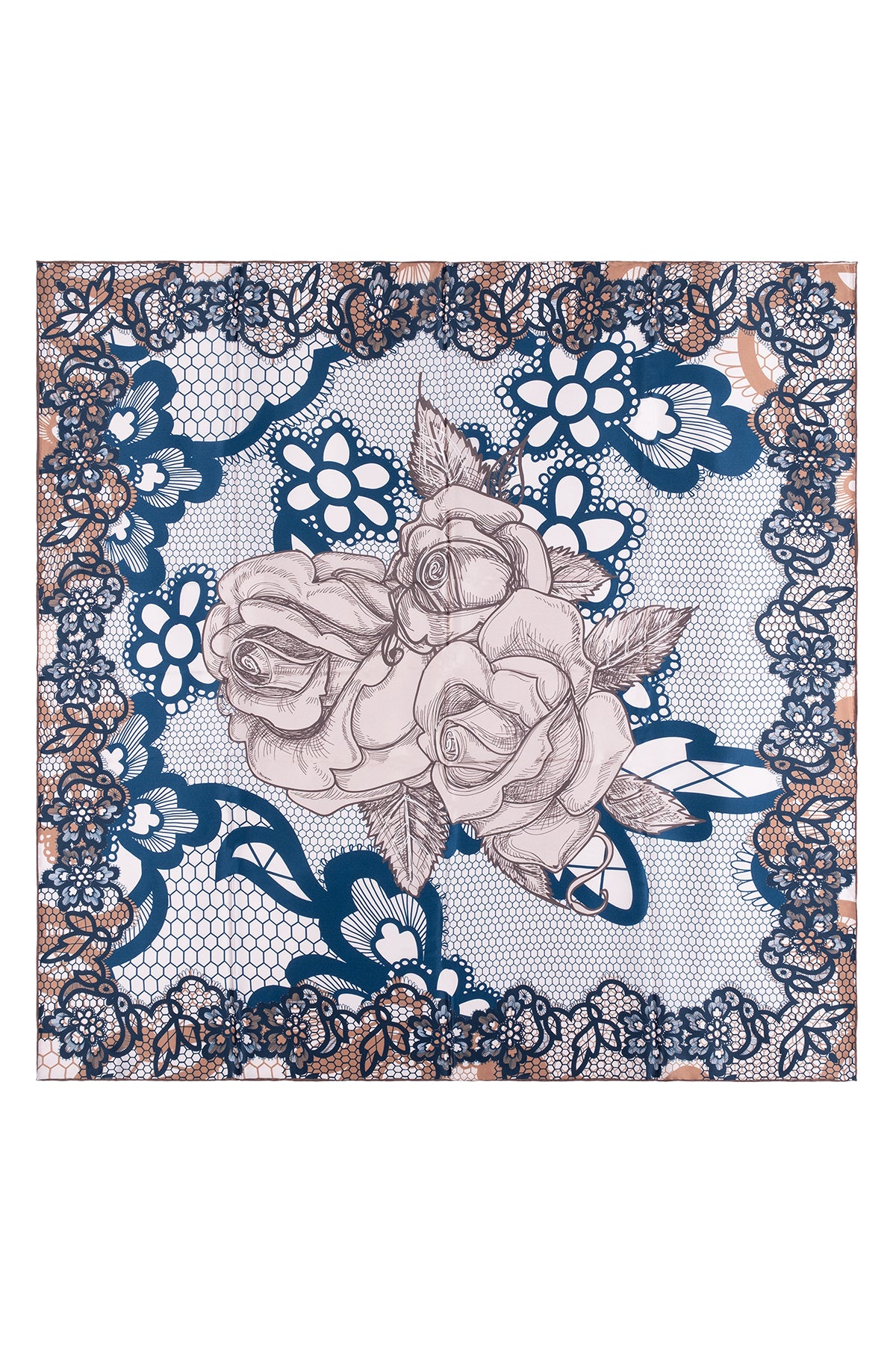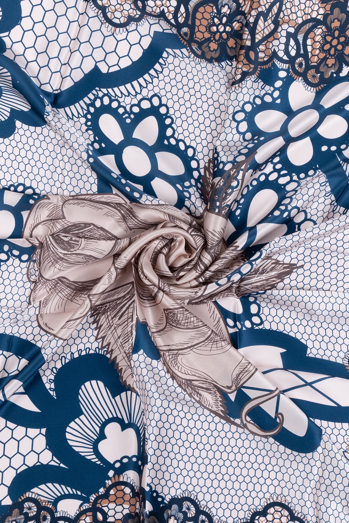 Mavi Bej Leonore İpek Desenli Kare Eşarp 110x110 cm