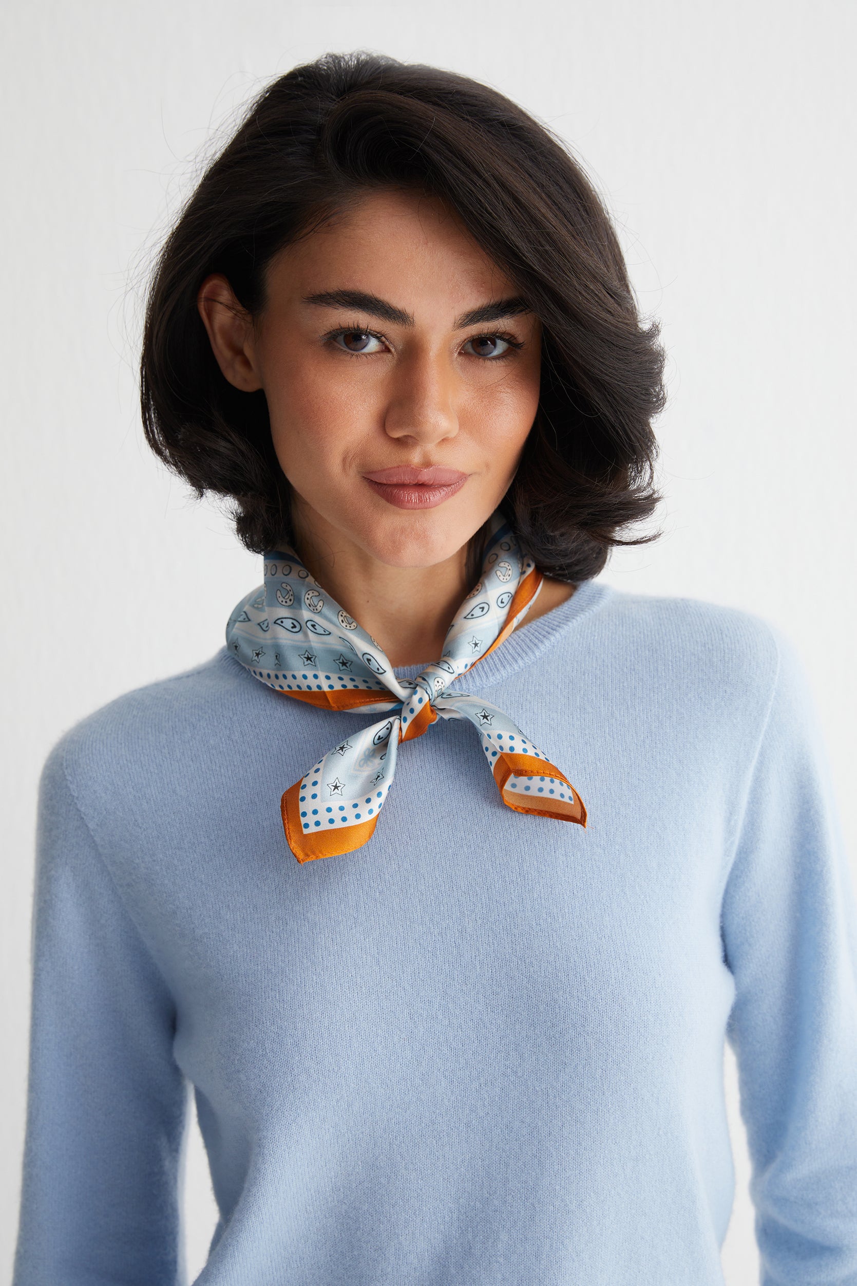 Mavi Camel Laila Saf İpek Kare Eşarp 50x50 cm