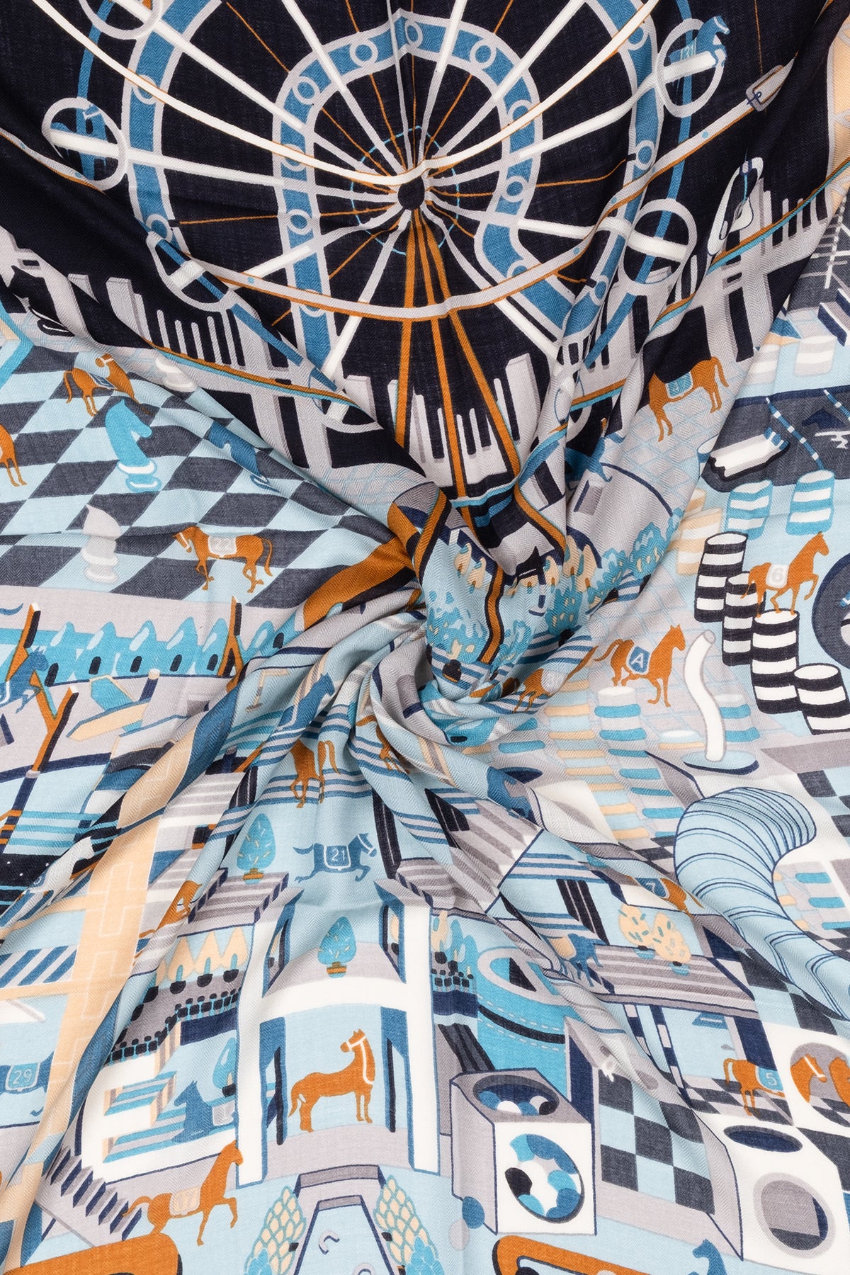 Mavi Ekru Linda Saf Kaşmir Baskılı Eşarp 140x 140 cm