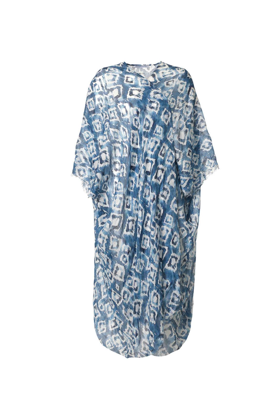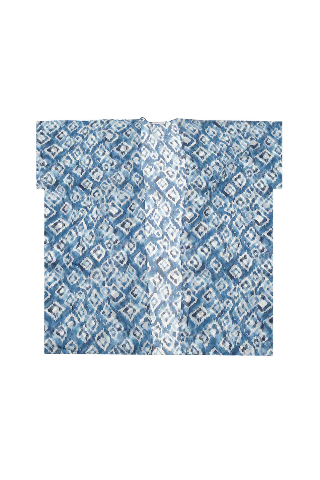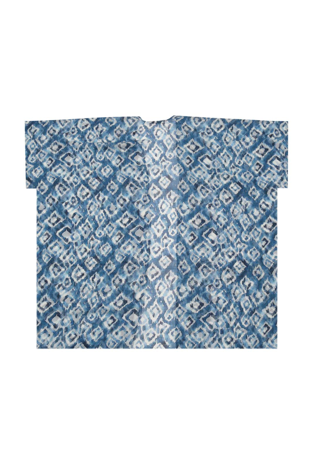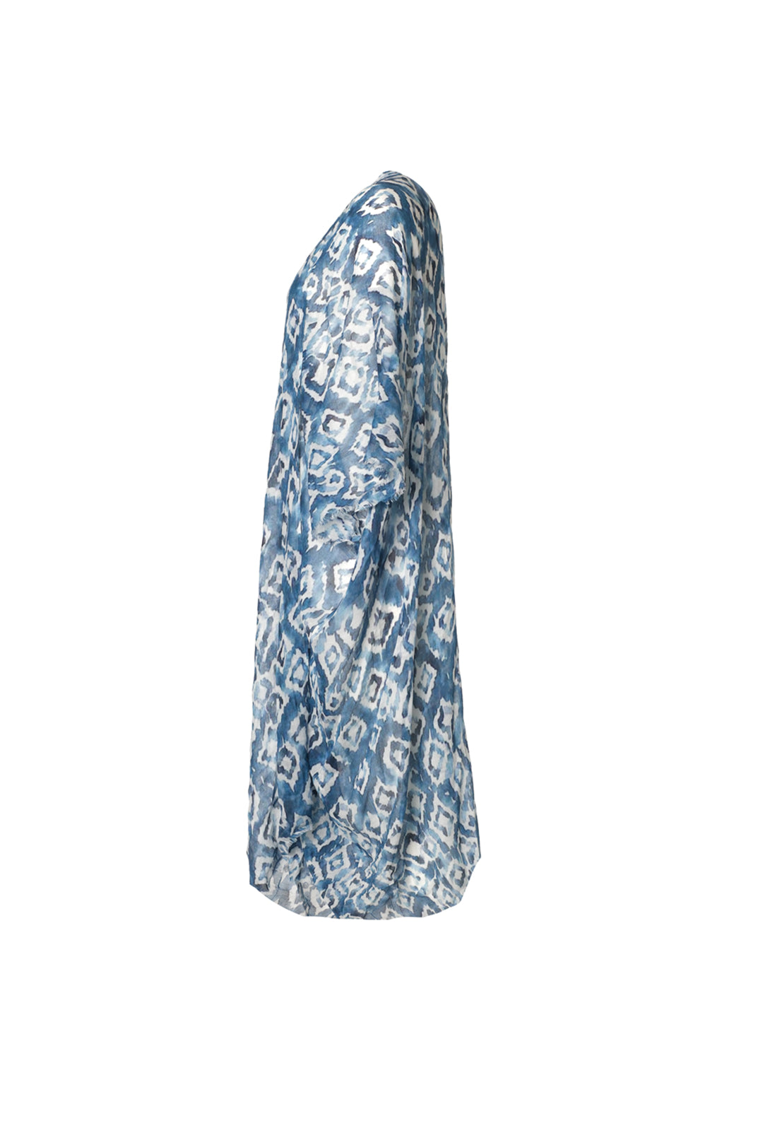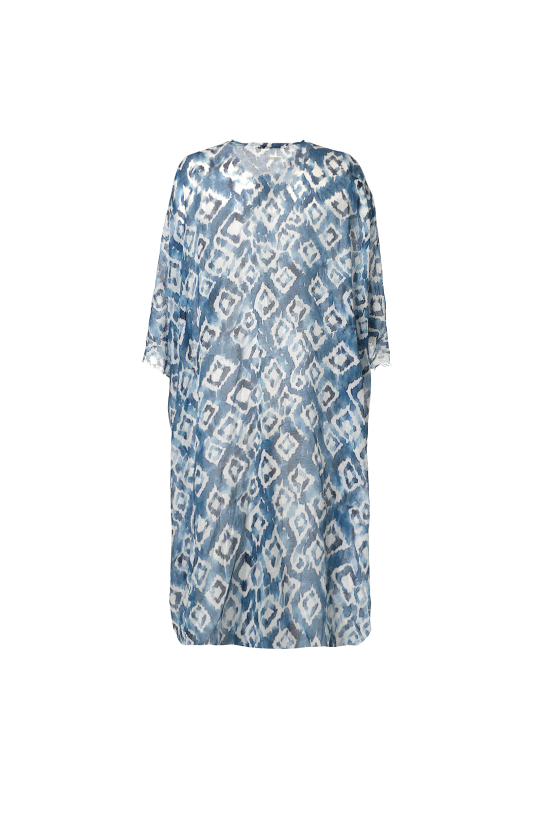 Mavi Jas İpekli Desenli Kısa Kollu Uzun Kimono Hırka