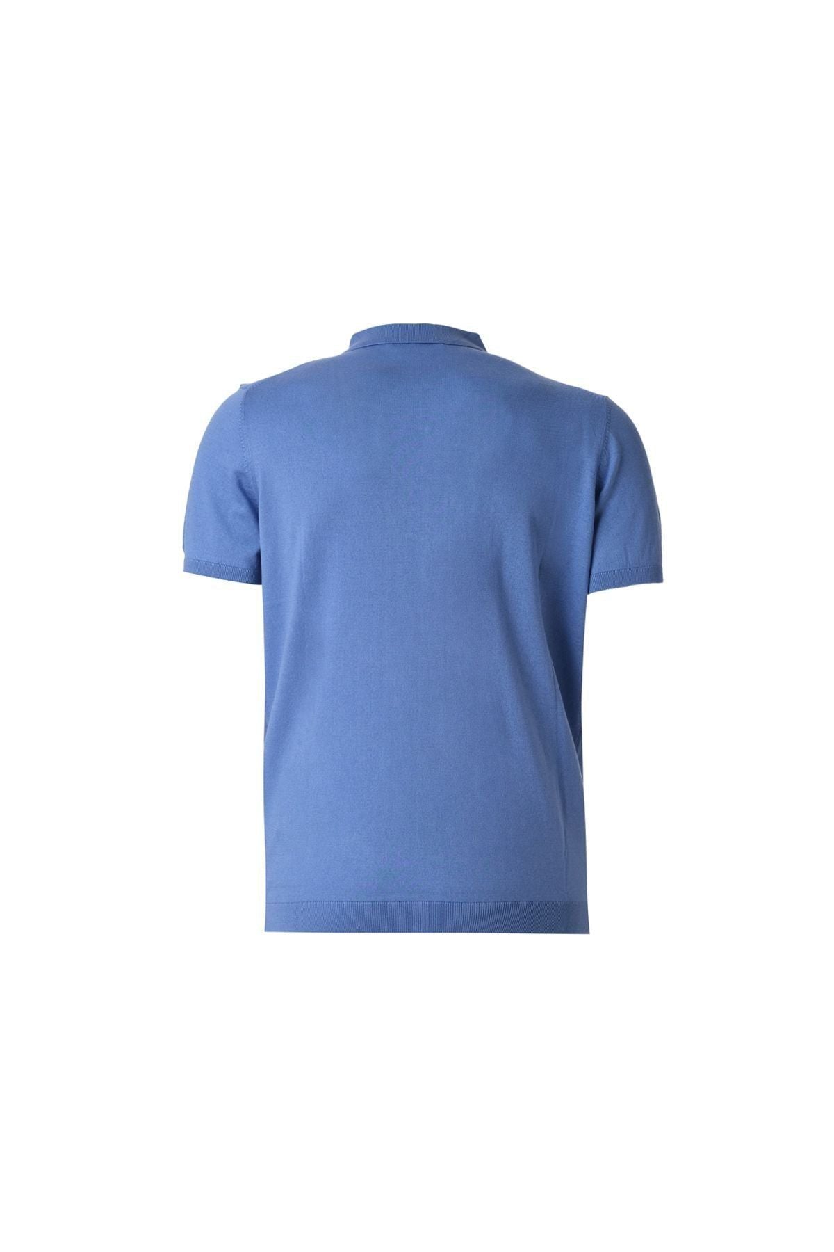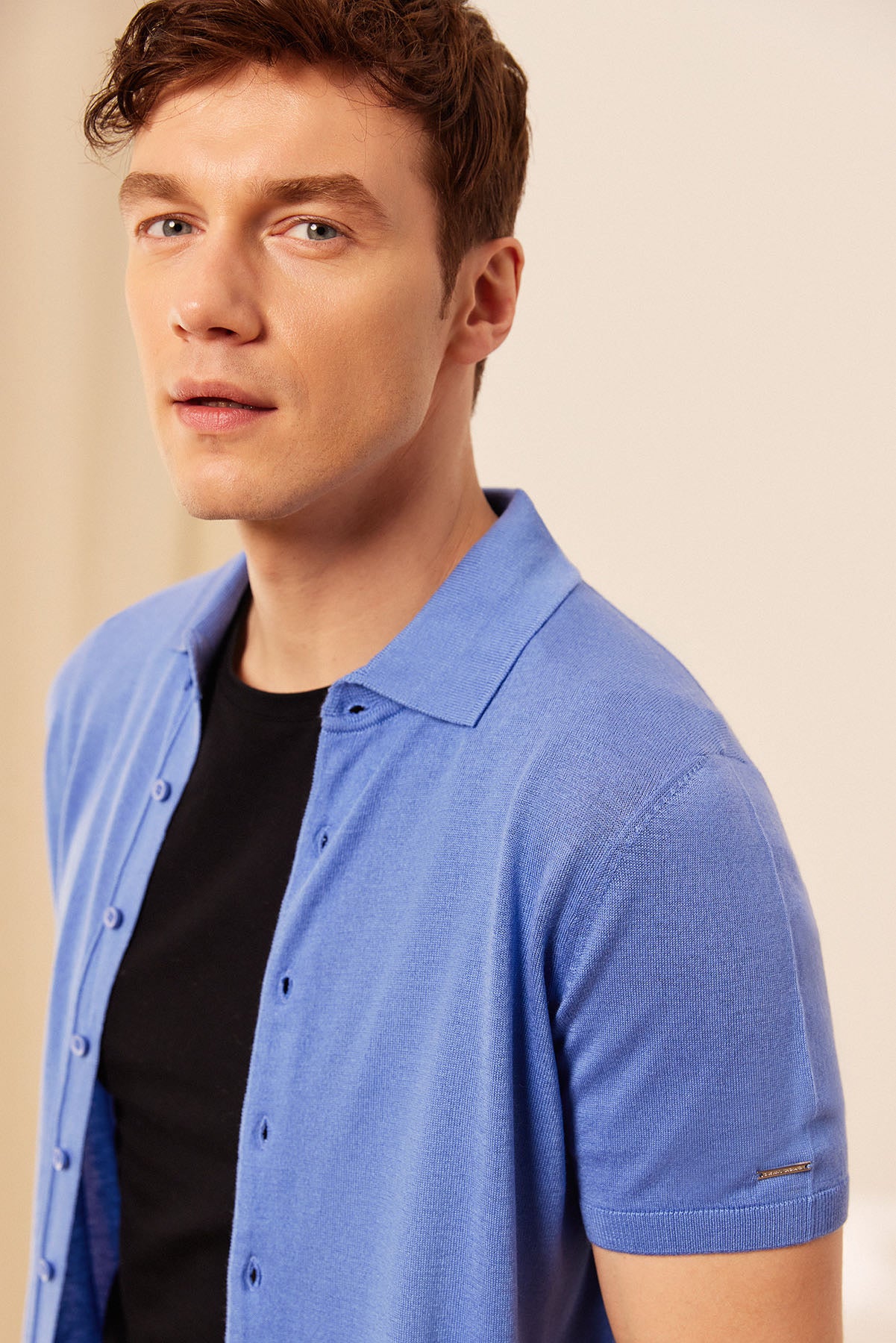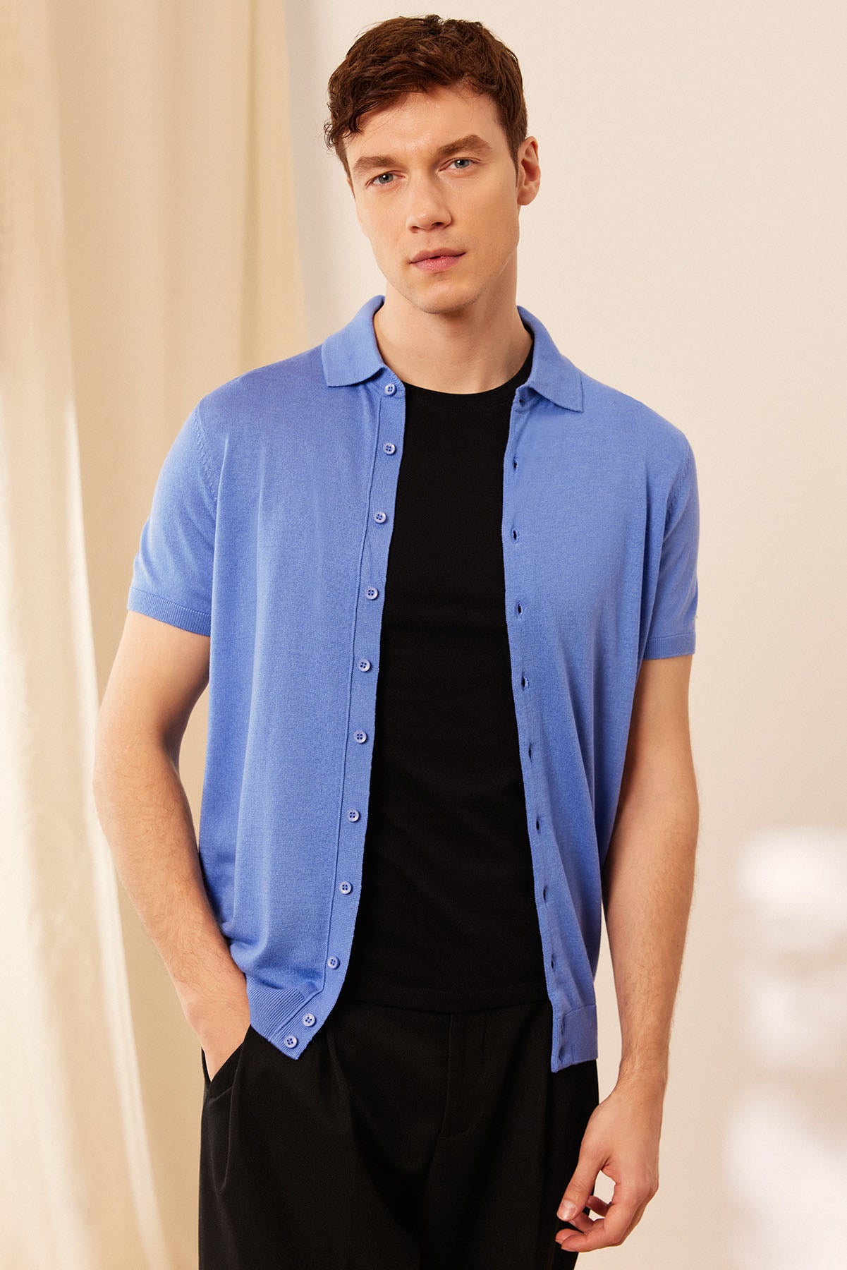 Mavi Kaşmir İpek Utku Kısa Kollu Polo Yaka Triko Gömlek