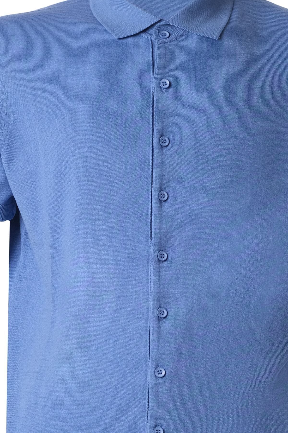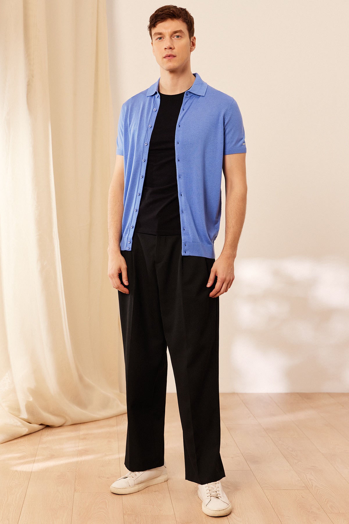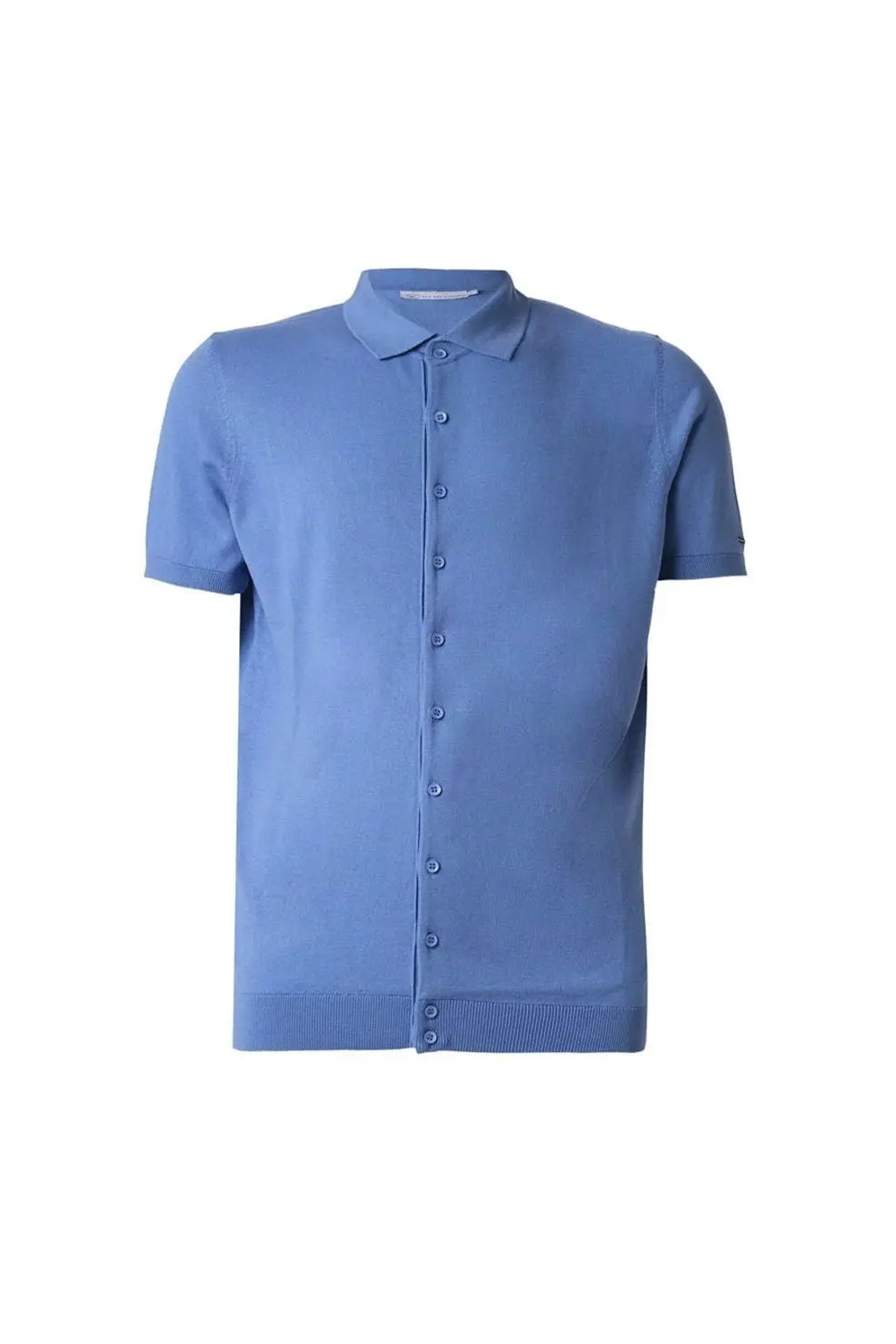 Mavi Kaşmir İpek Utku Kısa Kollu Polo Yaka Triko Gömlek