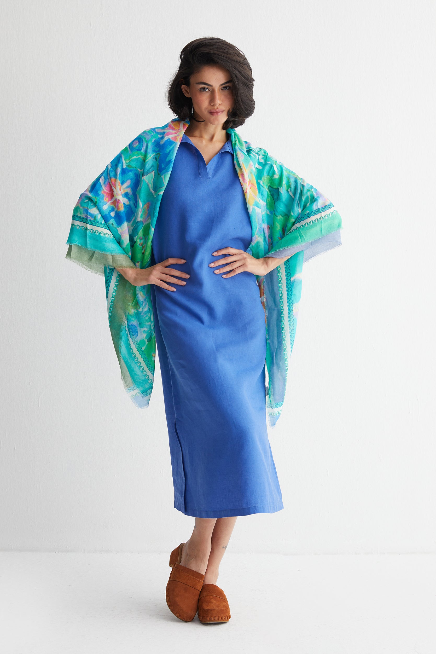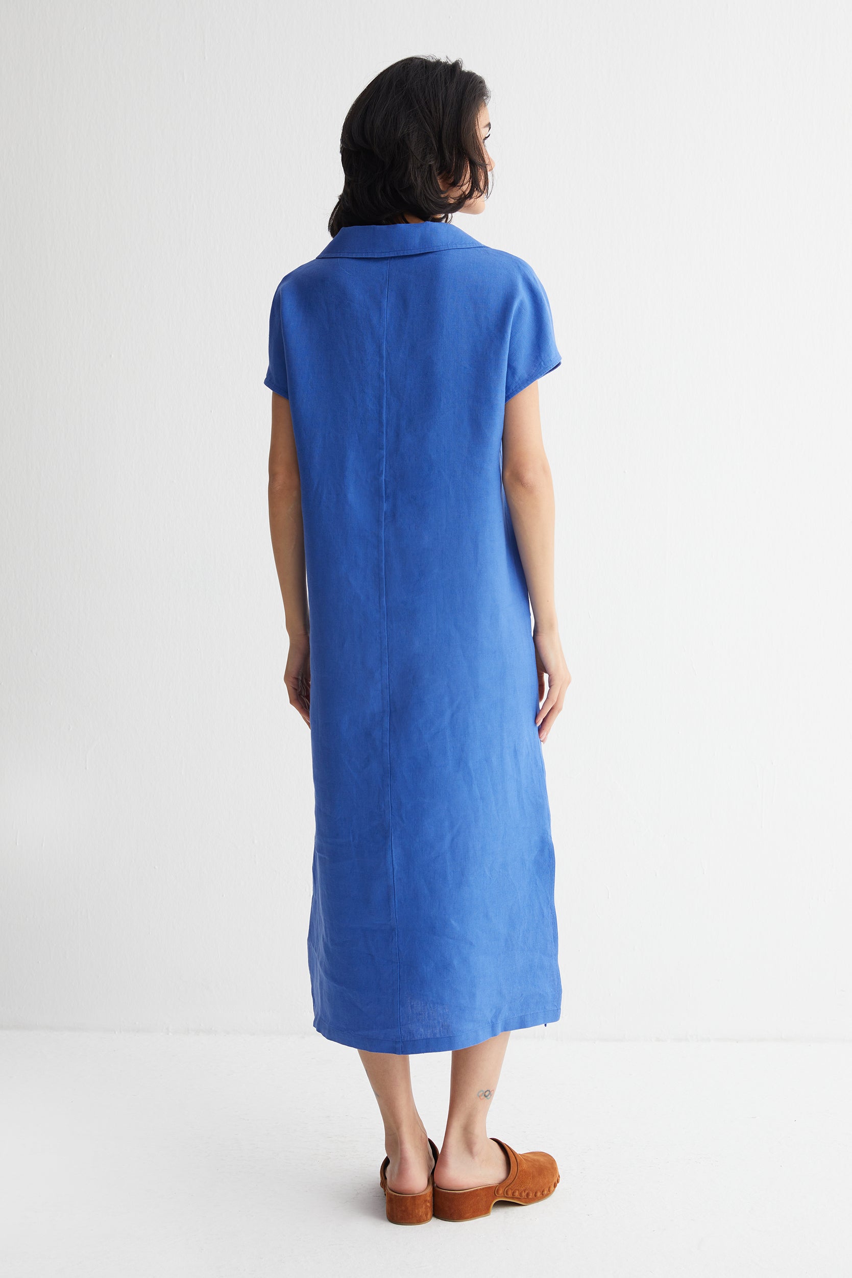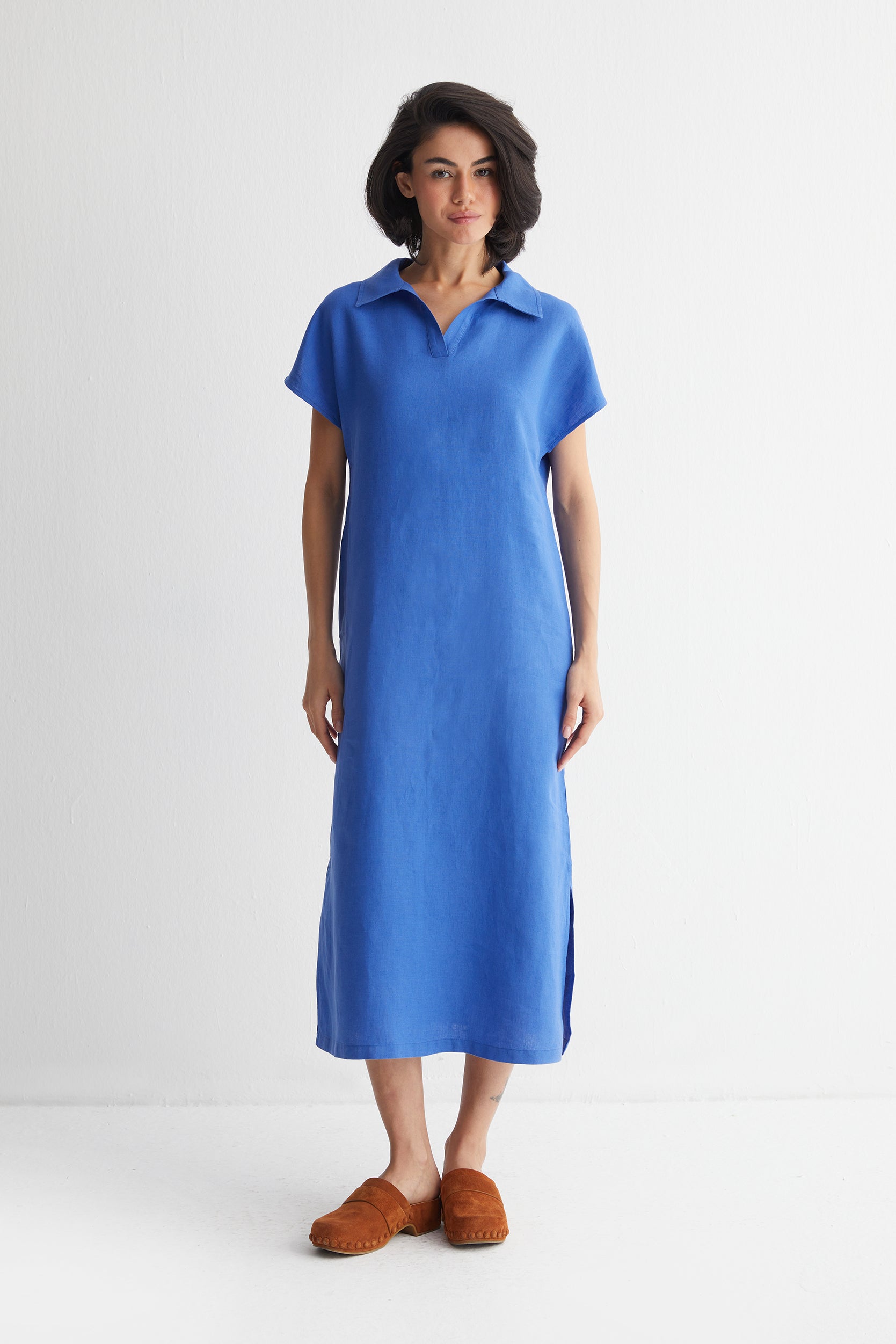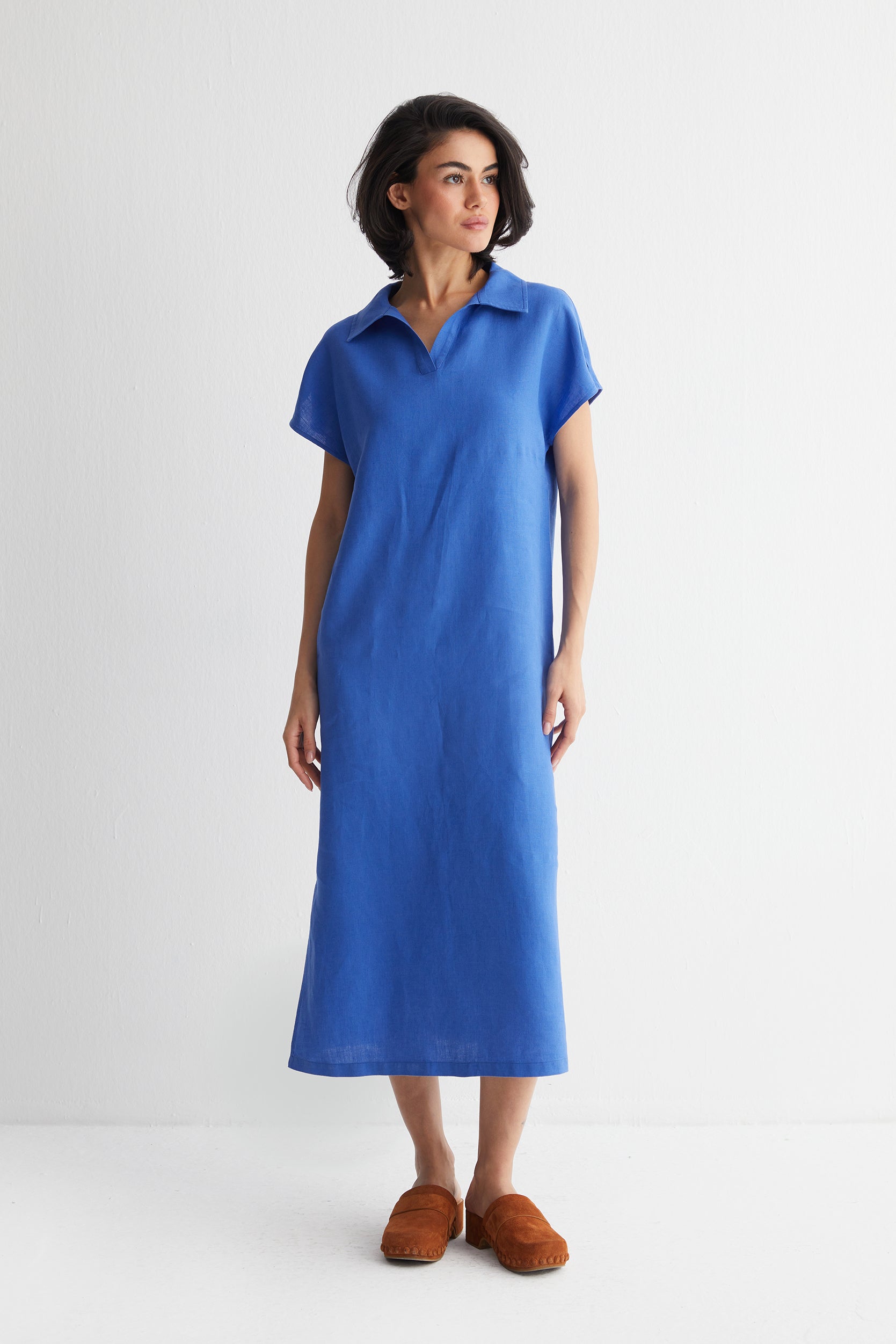 Doğadan gelen saf ketenin nefes alabilen yapısı, Kate elbisenin akıcı ve konforlu duruşuyla buluşuyor. Parlak ve berrak mavi tonu, yaz mevsiminin enerjisini taşırken, yalın çizgilerle dingin bir tarz sunuyor. Hafifliği ve zahmetsiz tarzı ile her anınıza eşlik etmeye aday bir parça.