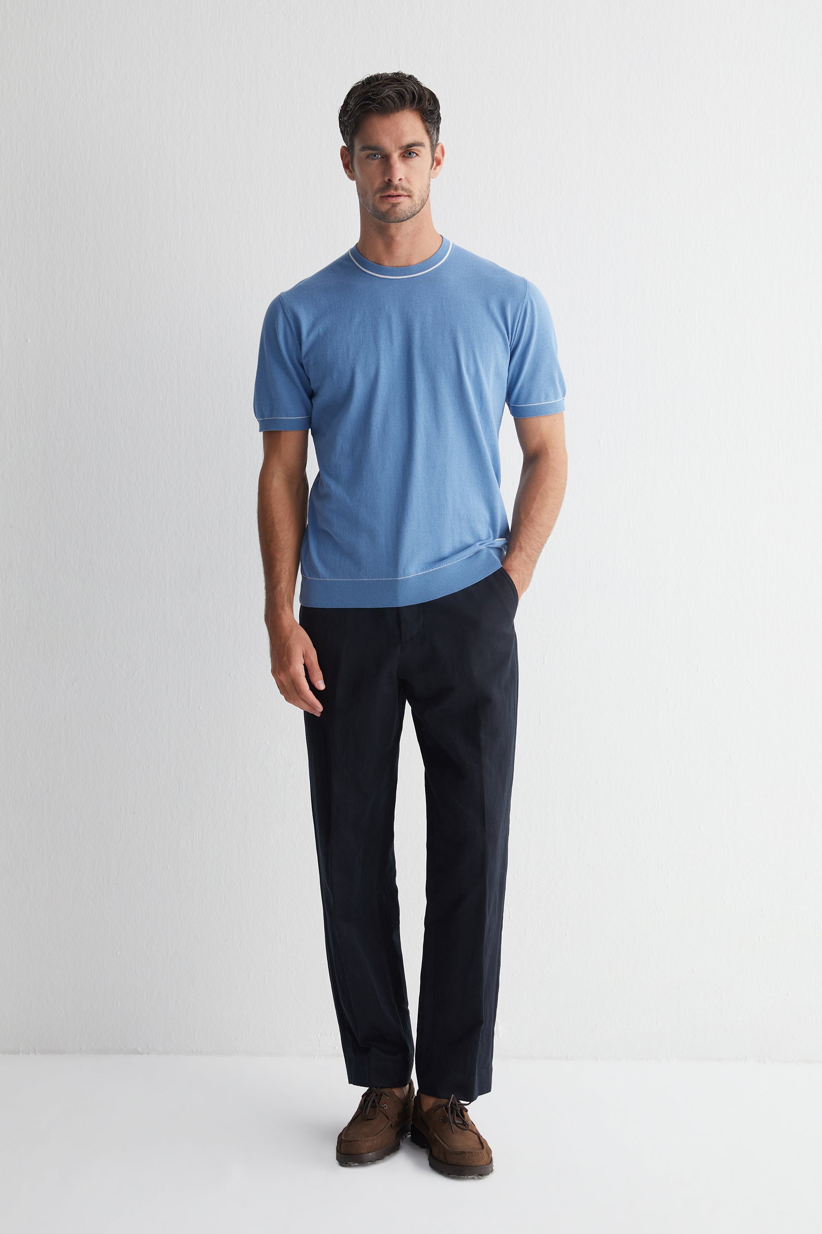 Modern sadelik ve maksimum konfor arayanlar için tasarlanan Mavi Kevin kısa kollu triko, serin yaz akşamlarında daima tarz kalmak isteyenler için zamansız bir alternatif sunuyor. Bisiklet yakası ve kol detaylarındaki kontrast beyaz çizgiler, sade tasarıma sofistike bir hareket katıyor. Hafif ve nefes alabilir yapısıyla gün boyu serinlik ve rahatlık sağlar.