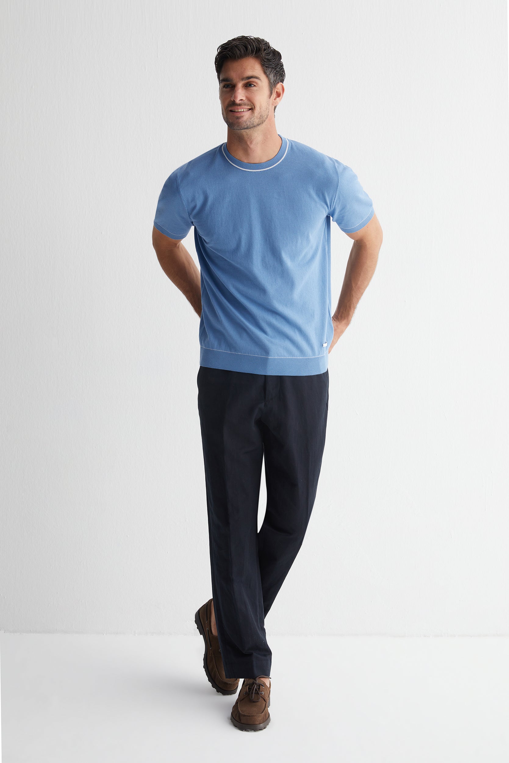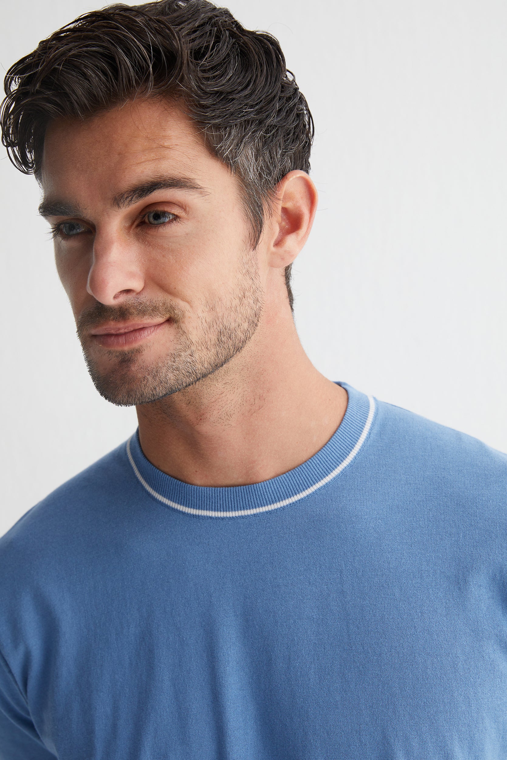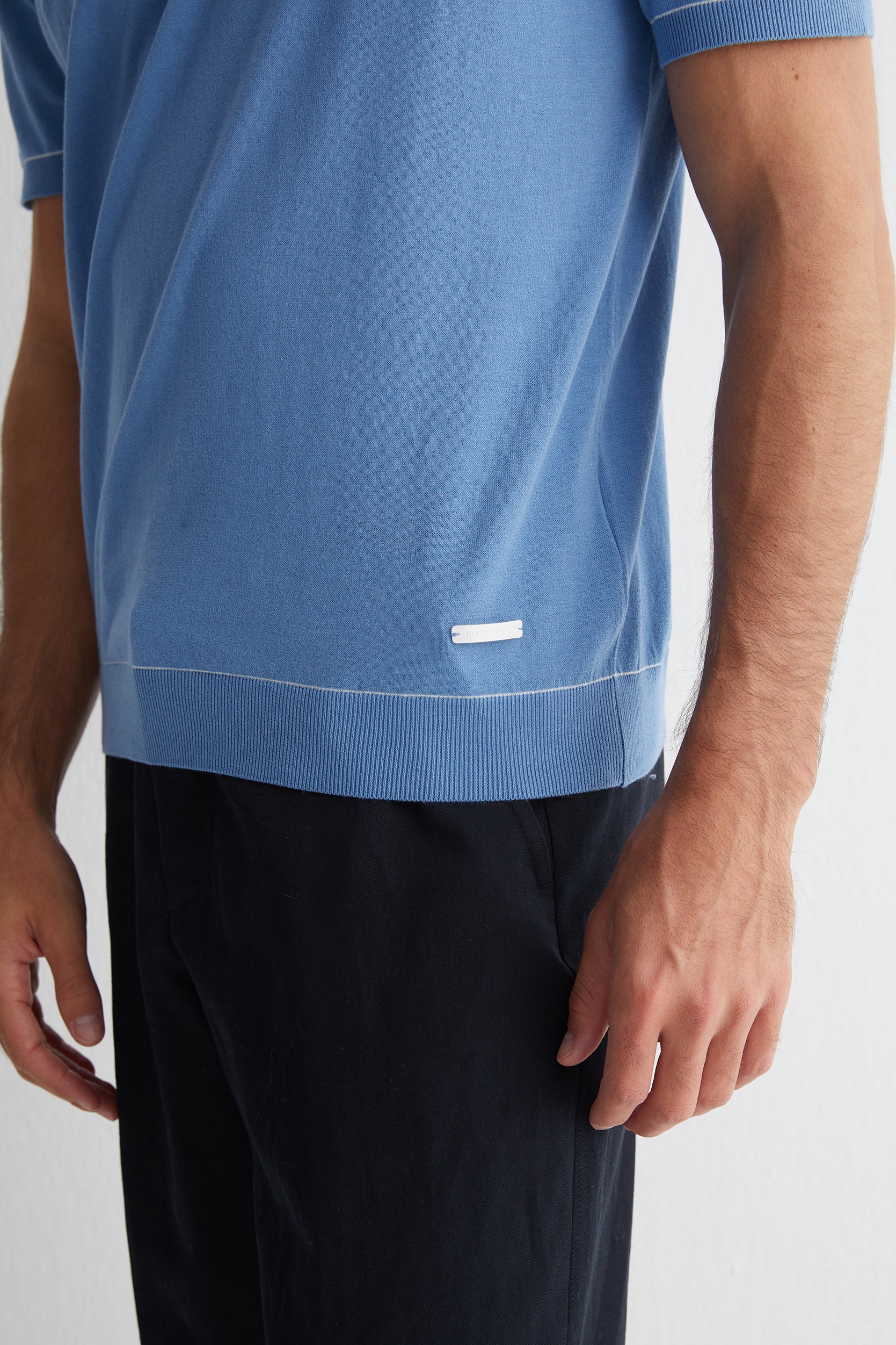 Mavi Kevin Bisiklet Yaka Kısa Kollu Triko