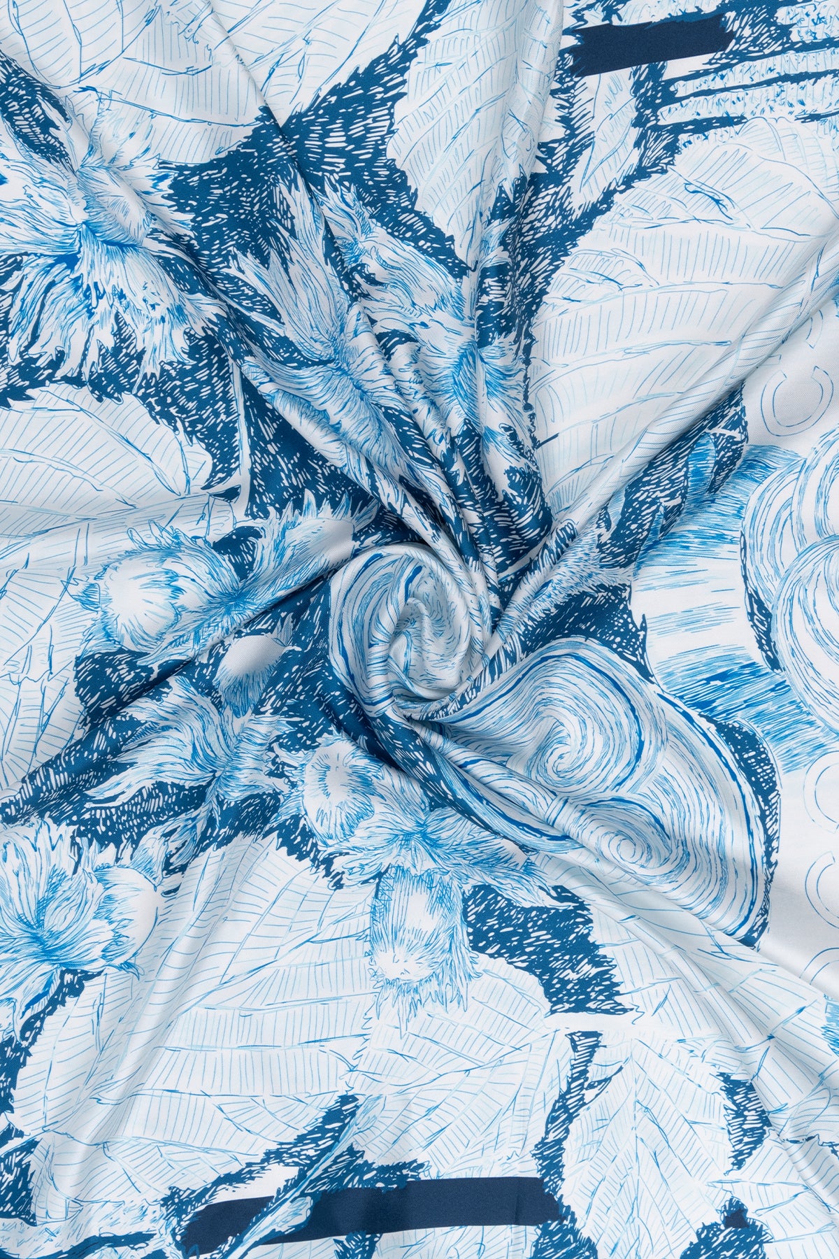 Mavi Lara İpek Desenli Kare Eşarp 90x90