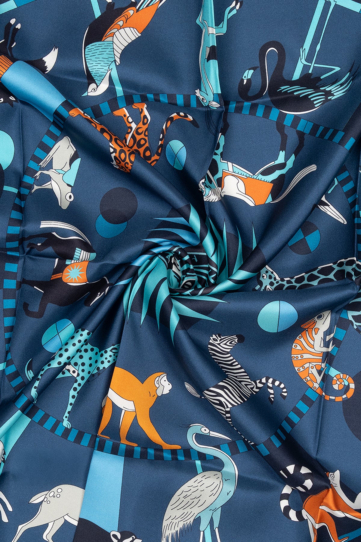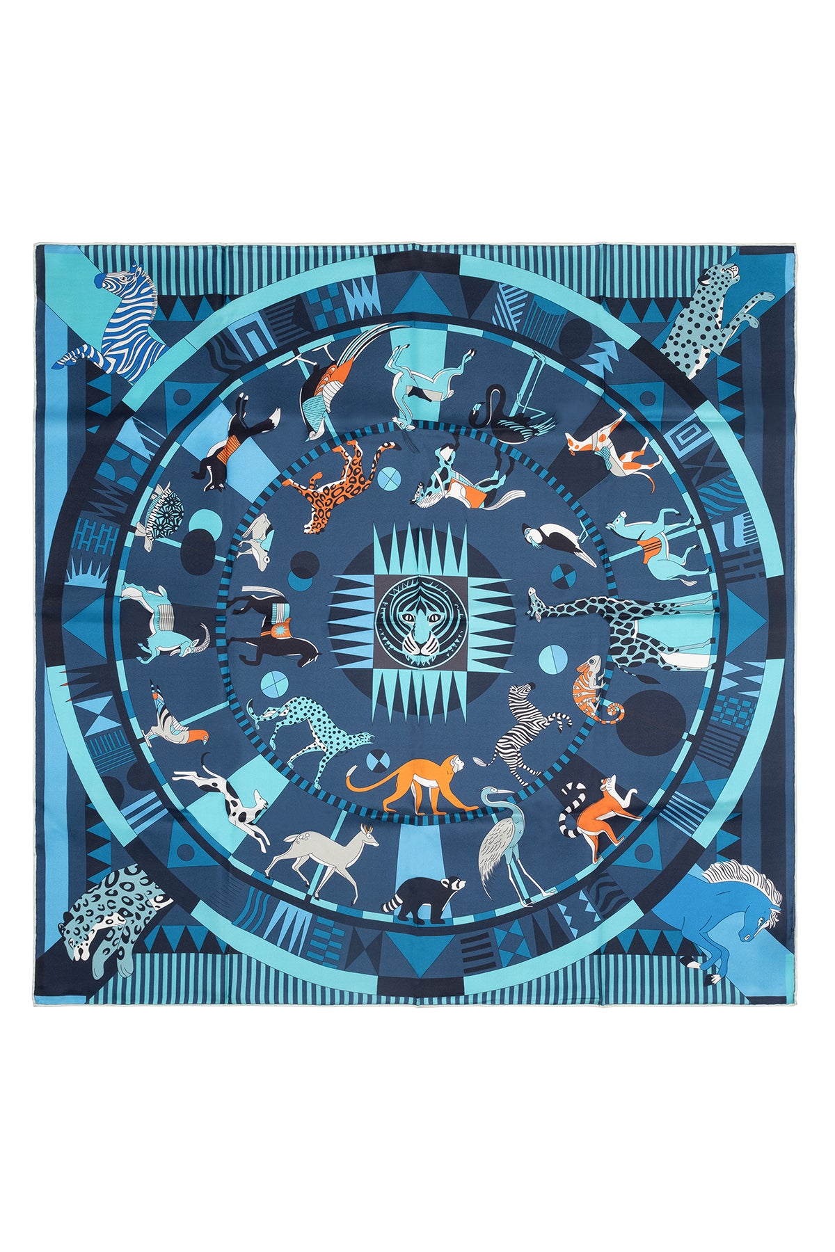 Mavi Lara Saf İpek Desenli Kare Eşarp 90x90 cm