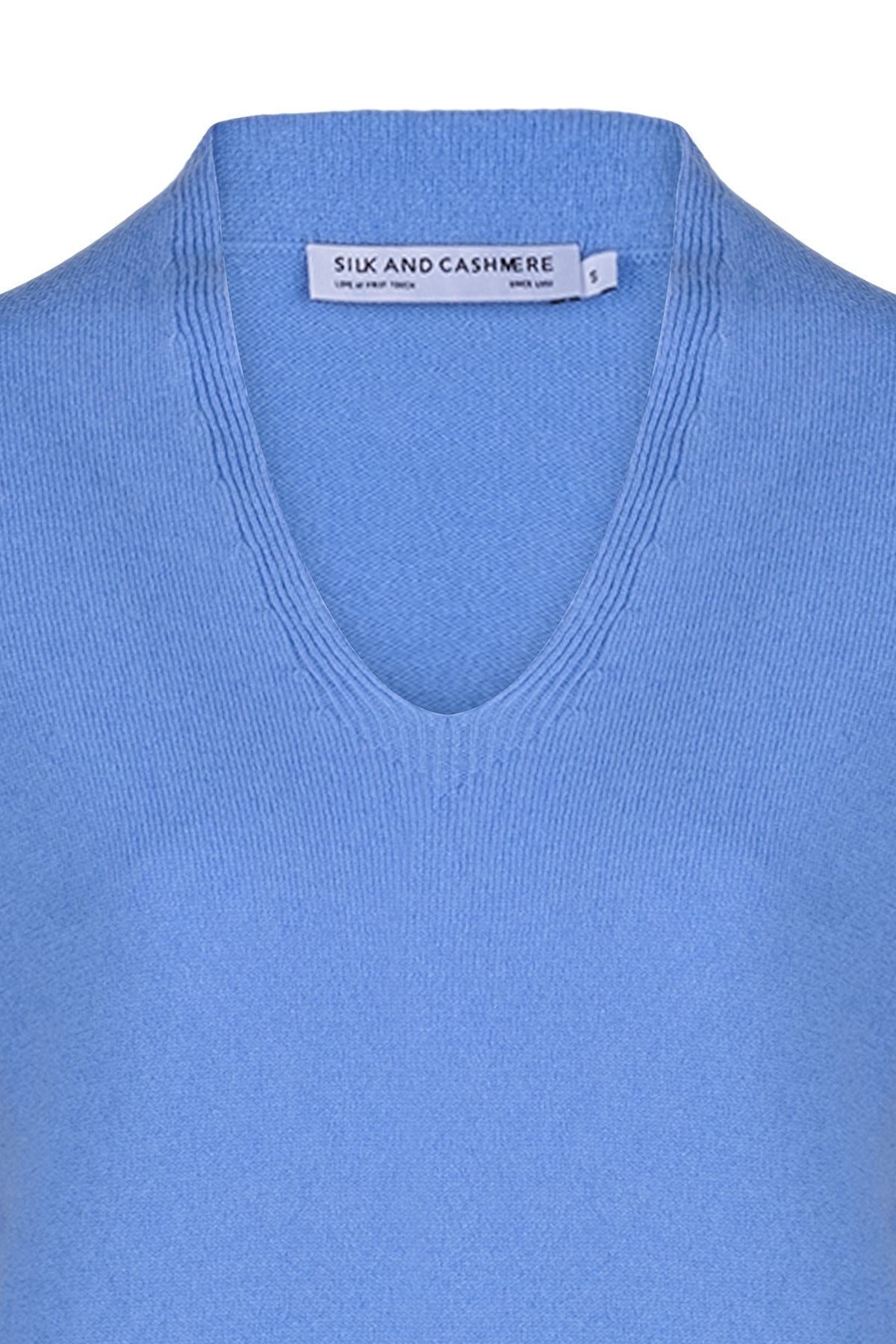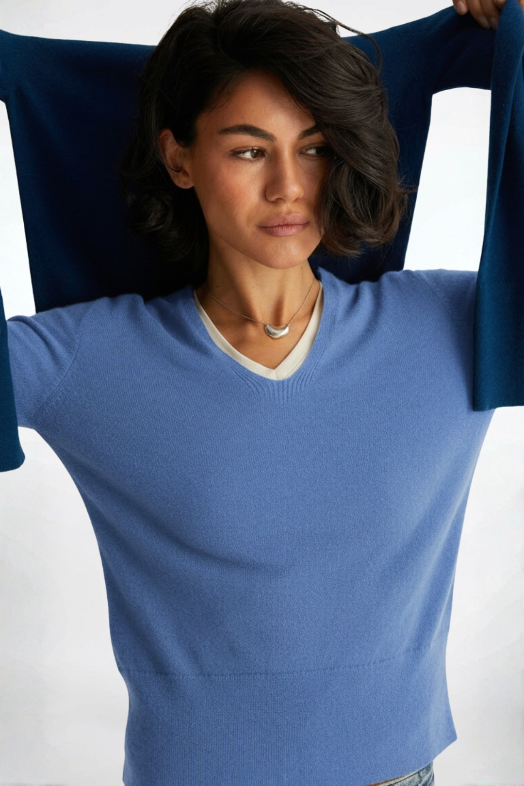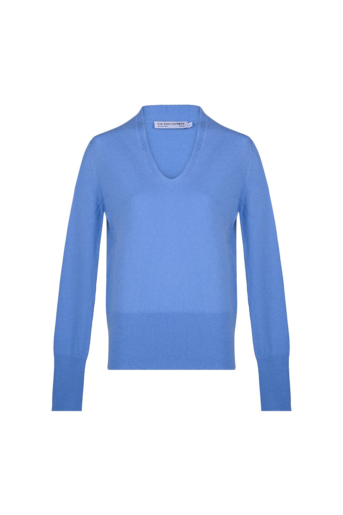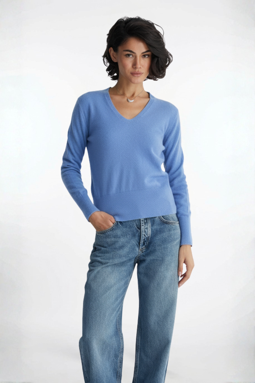 Mavi Lilly Saf Kaşmir Derin V Yaka Kazak