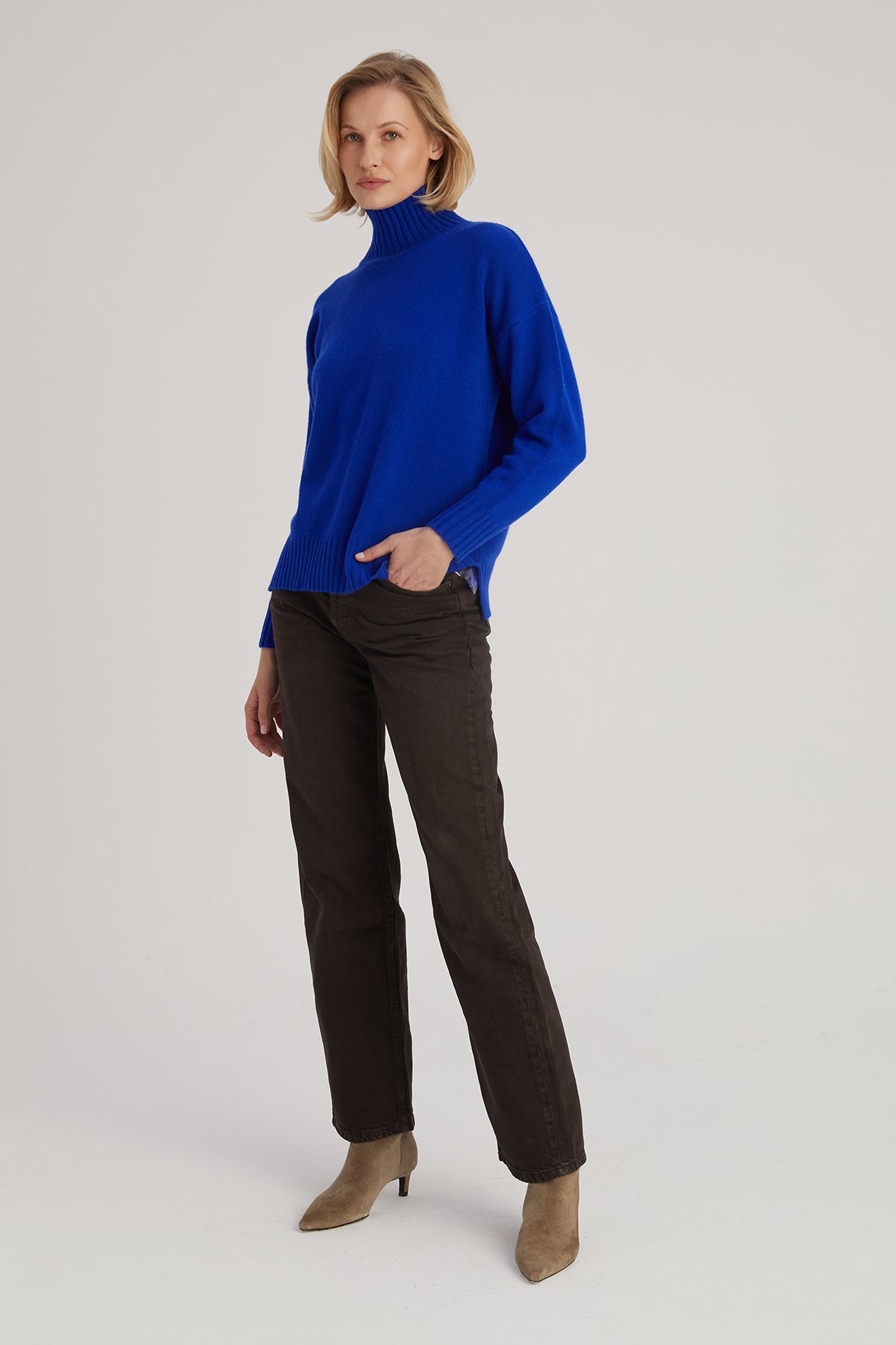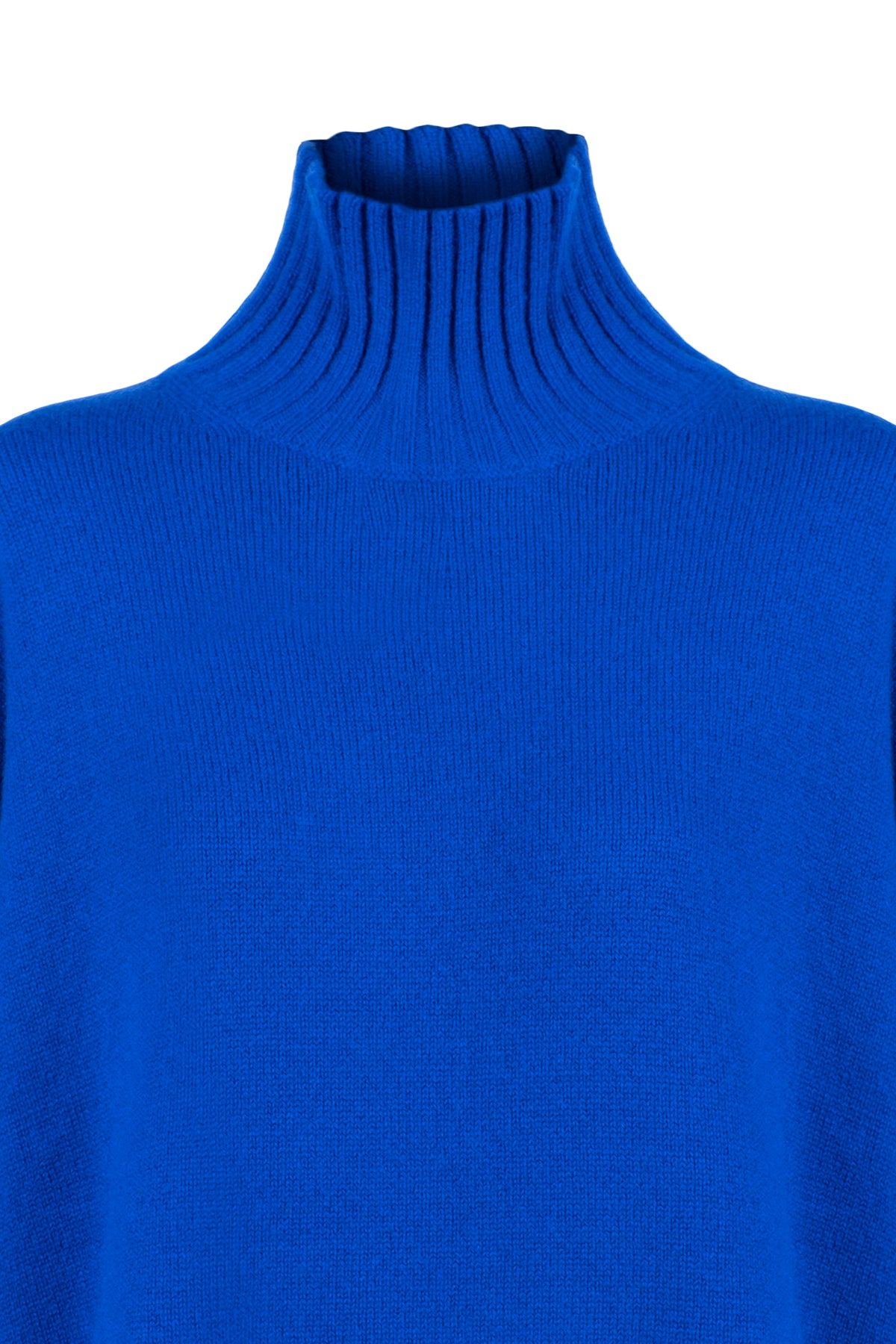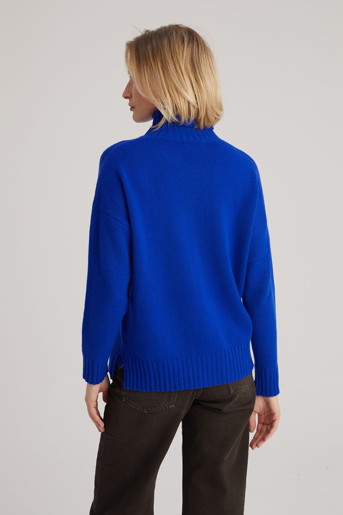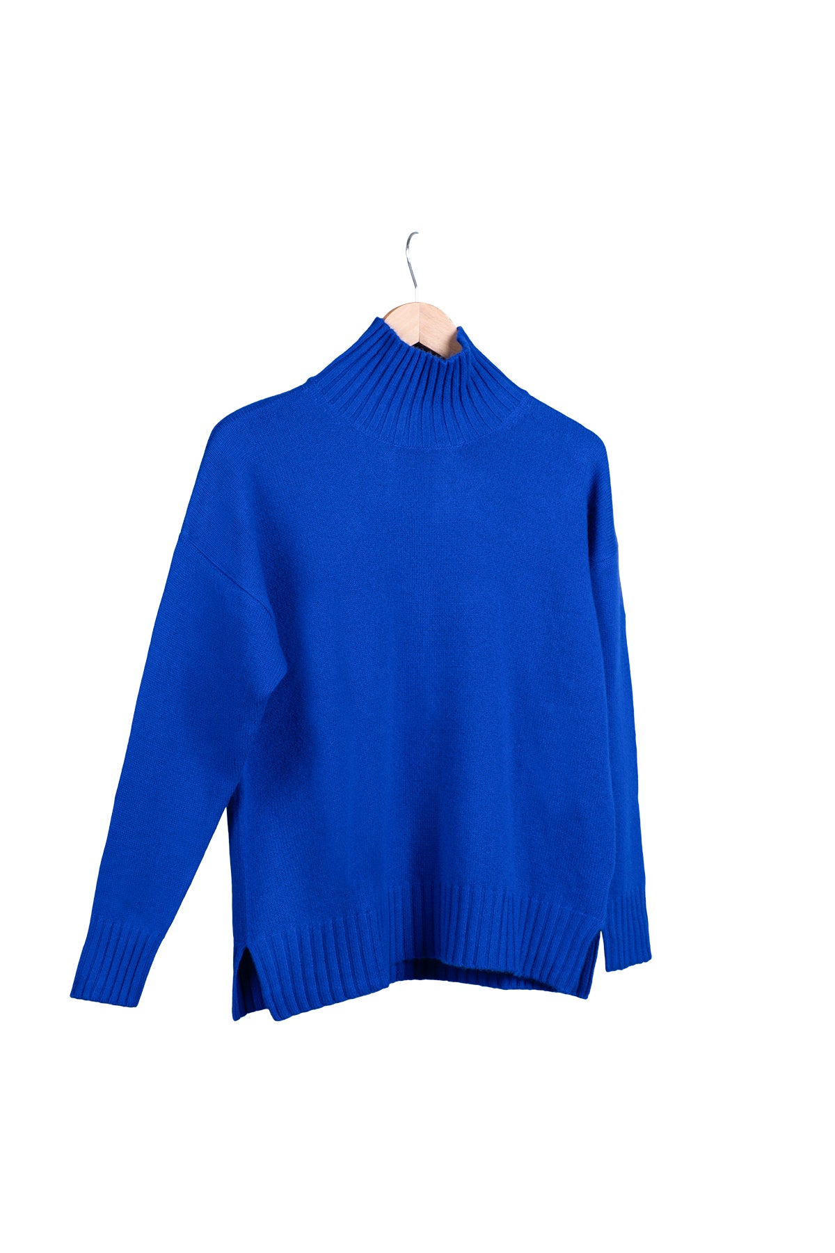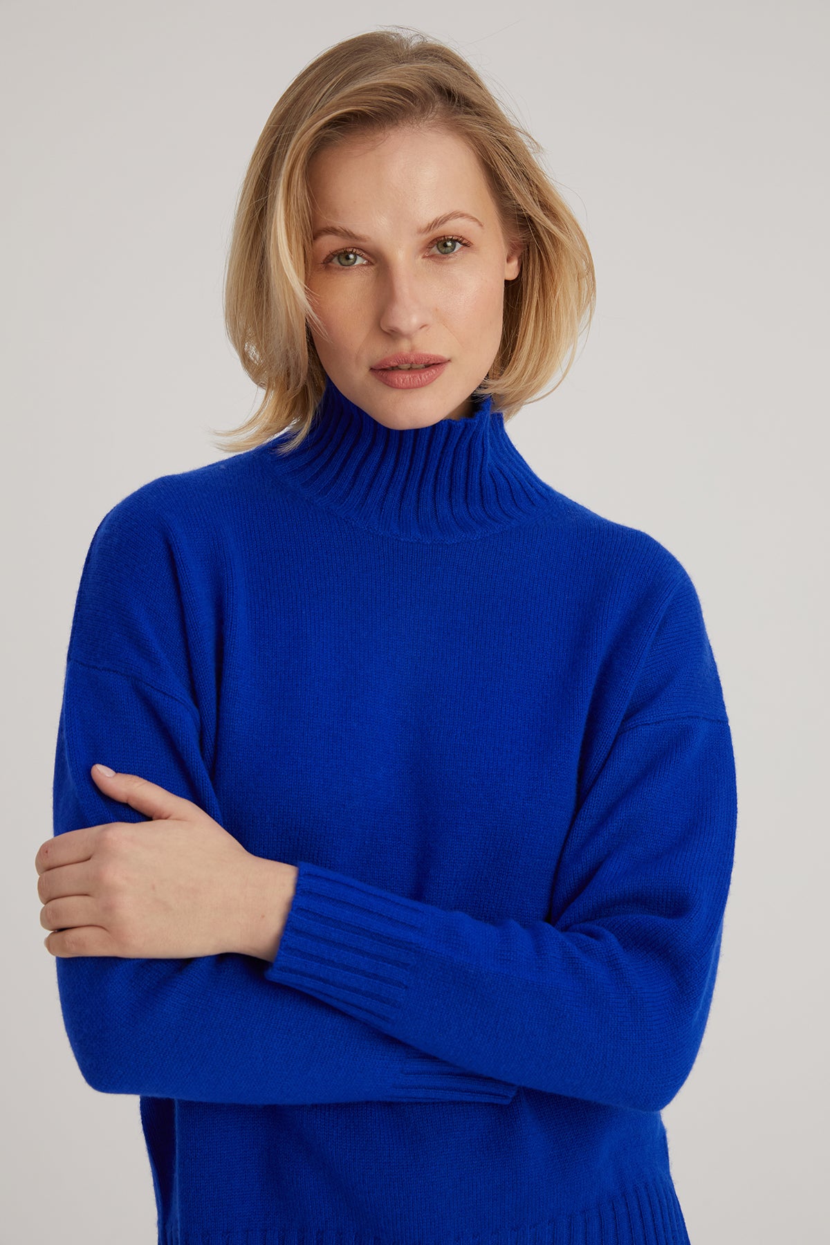 Mavi tonuyla dikkat çeken bu kazak, %70 yün ve %30 kaşmir karışımı ile soğuk günlerde hem sıcaklık hem de konfor sunar. Balıkçı yaka tasarımı boyun kısmını nazikçe sararken, dökümlü ve rahat kesimi hareket özgürlüğü sağlar. Günlük kullanımdan iş kombinlerine kadar çok yönlü bir seçenek sunar.