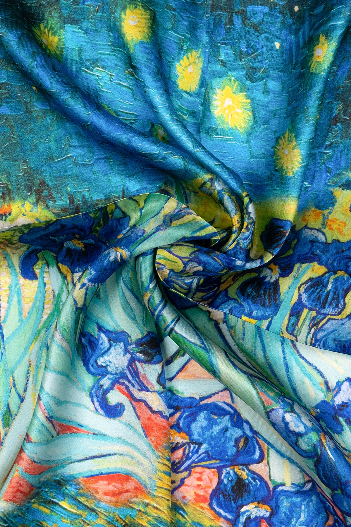 Mavi Sarı Laila Saf İpek Kare Eşarp 50x50 cm