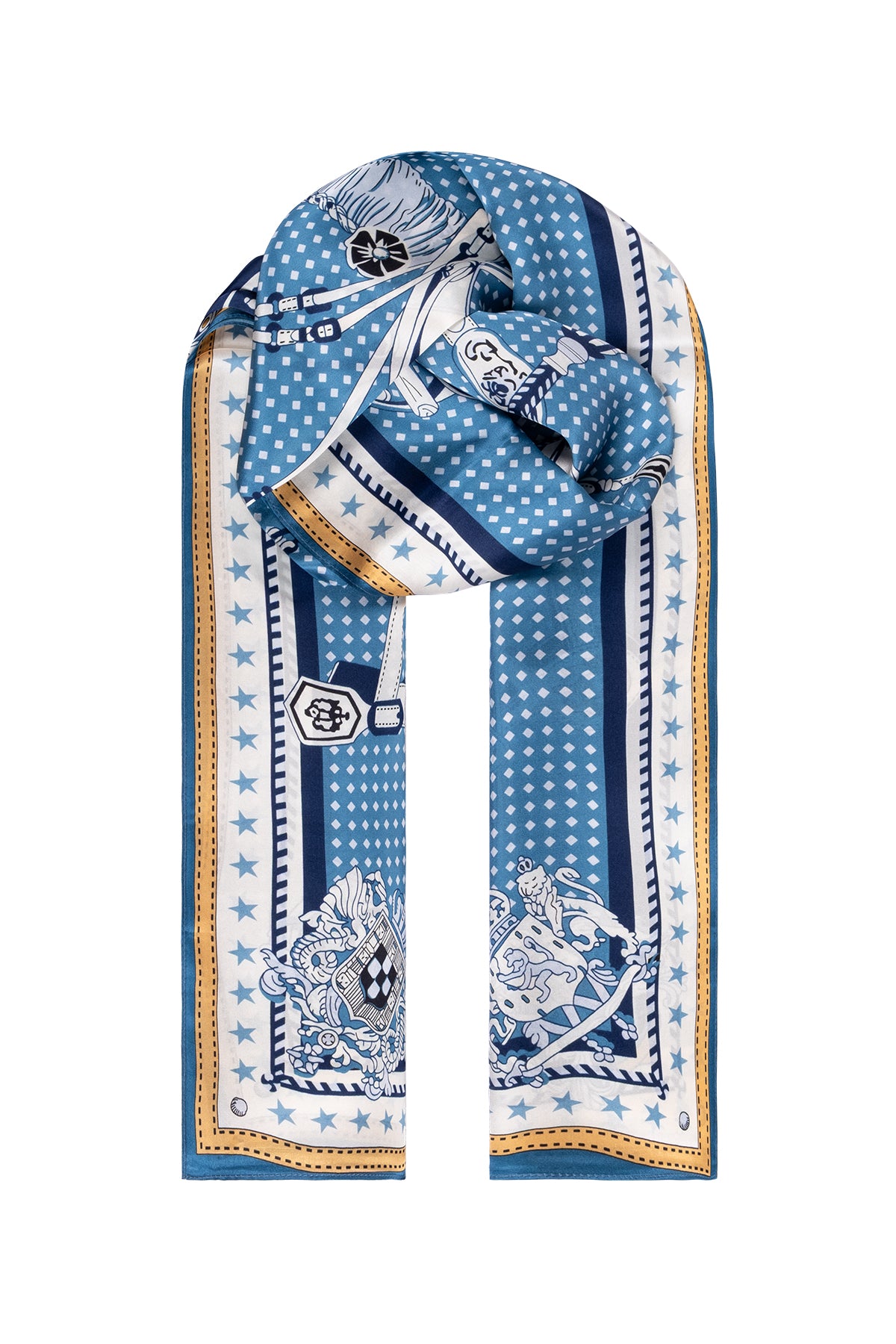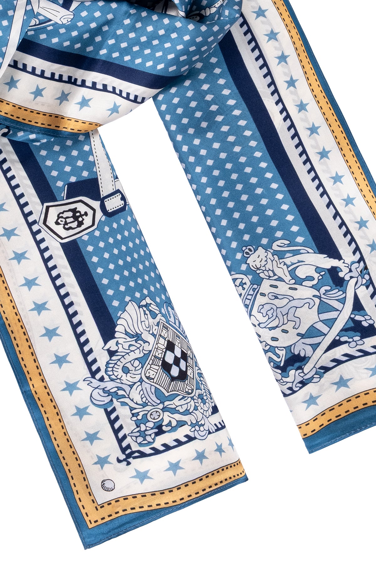 Mavi Sarı Luciana İpek Desenli Fular 55x170 cm