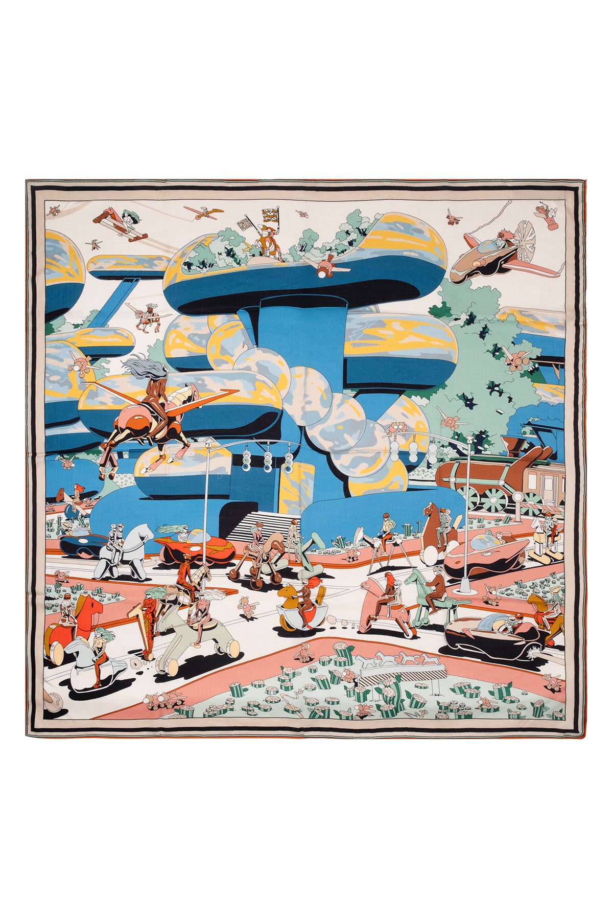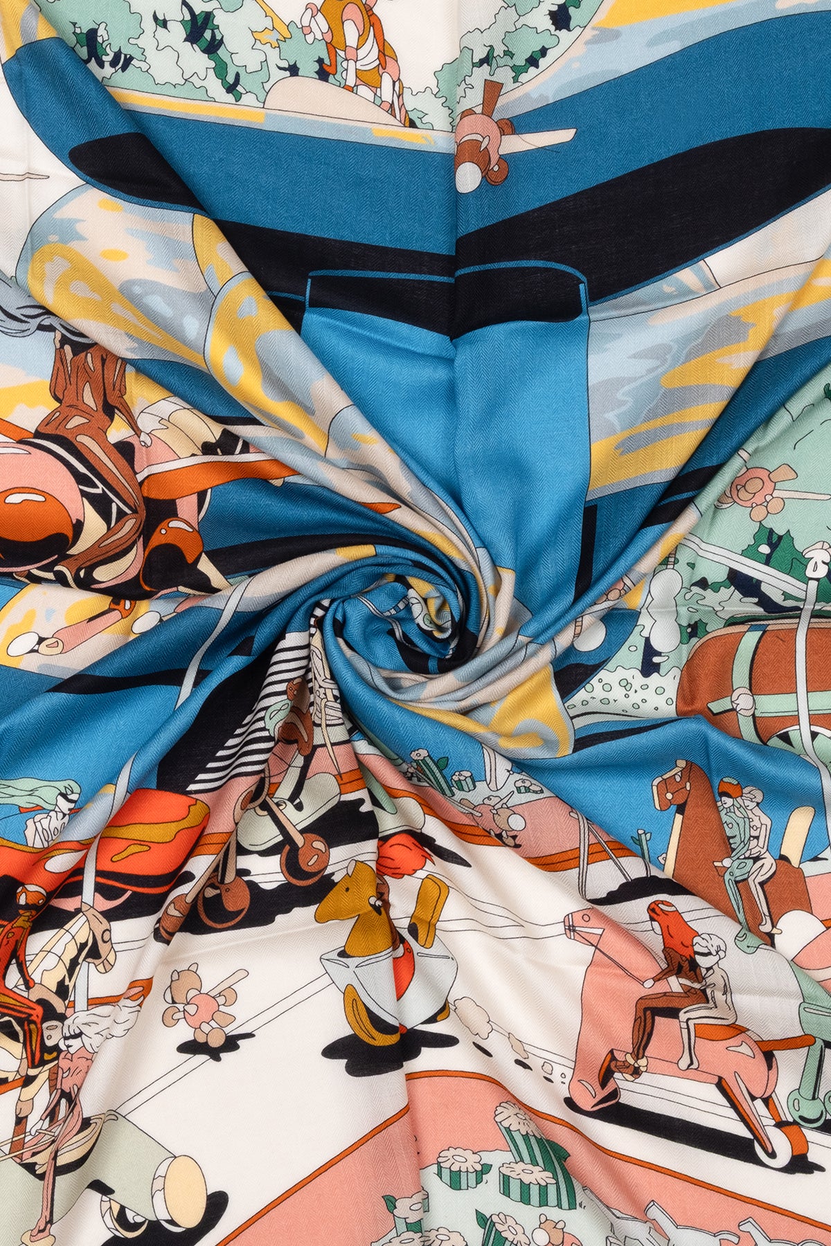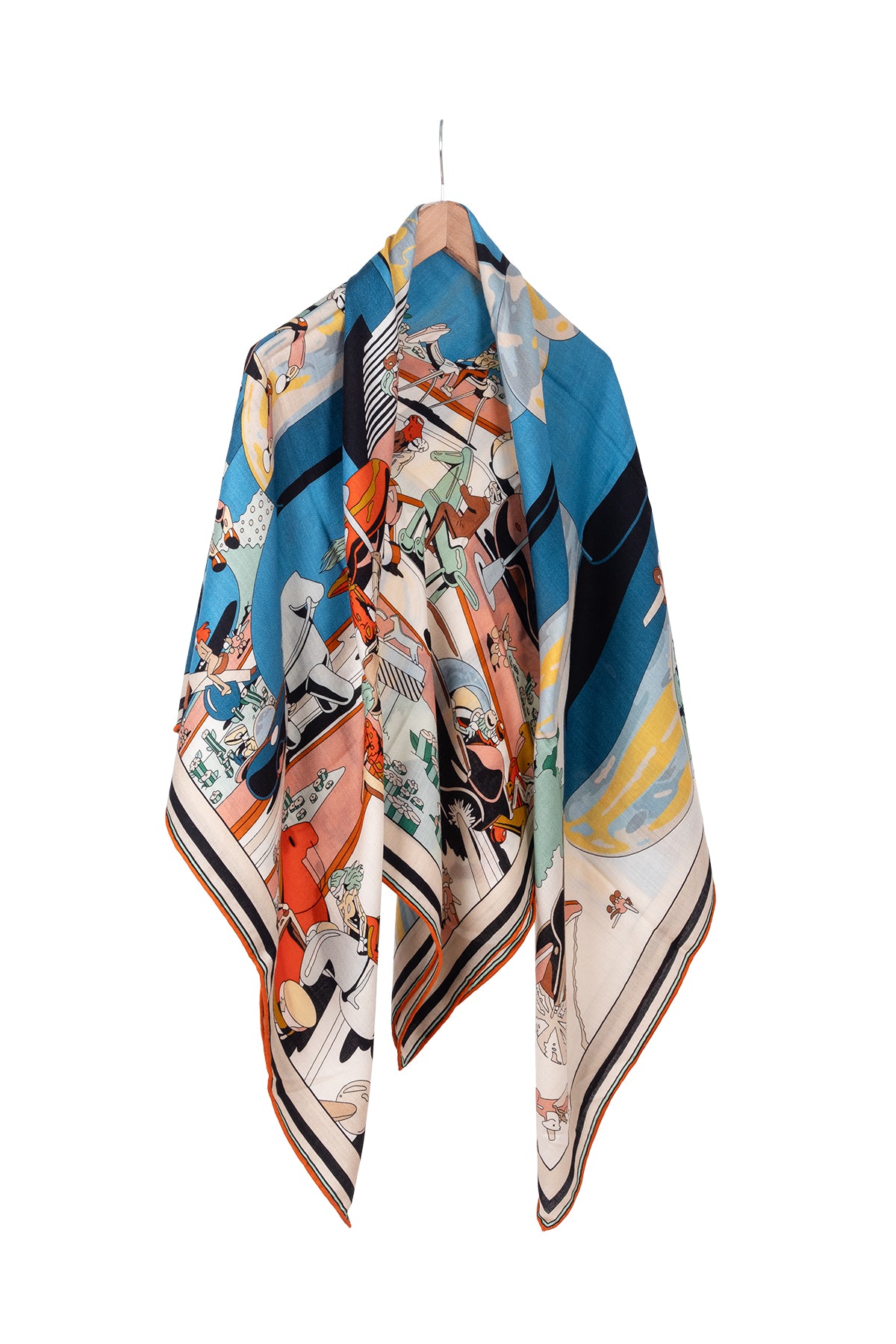 Mavi Turuncu Linda Saf Kaşmir Baskılı Eşarp 140x140 cm