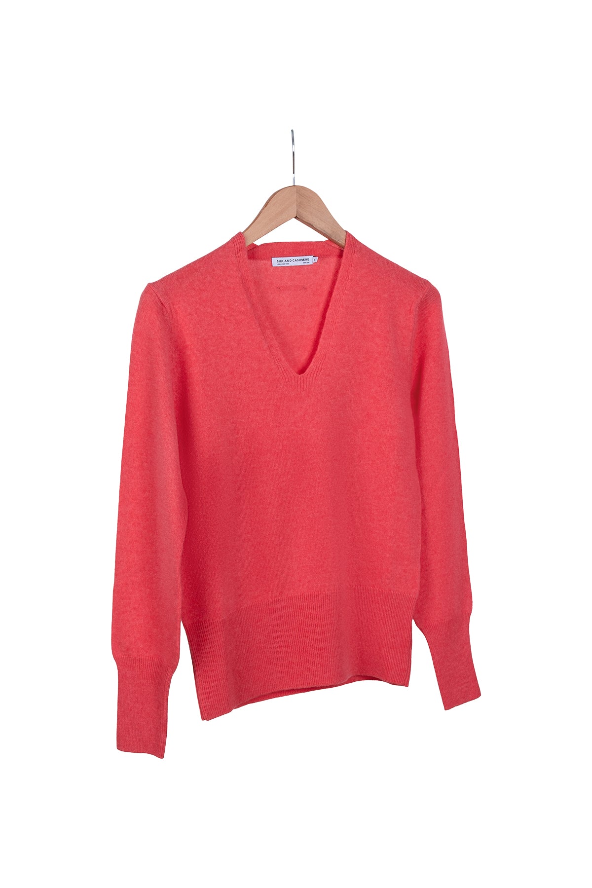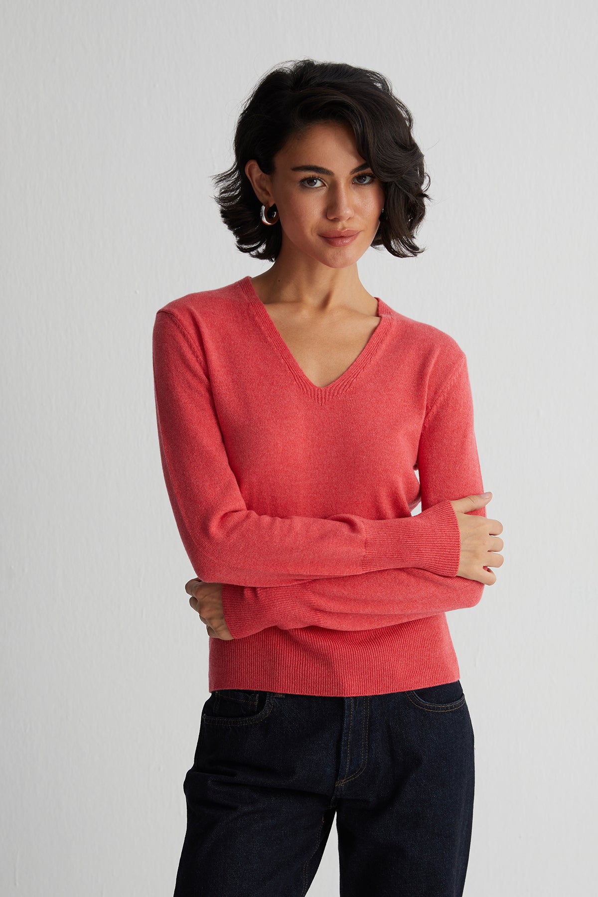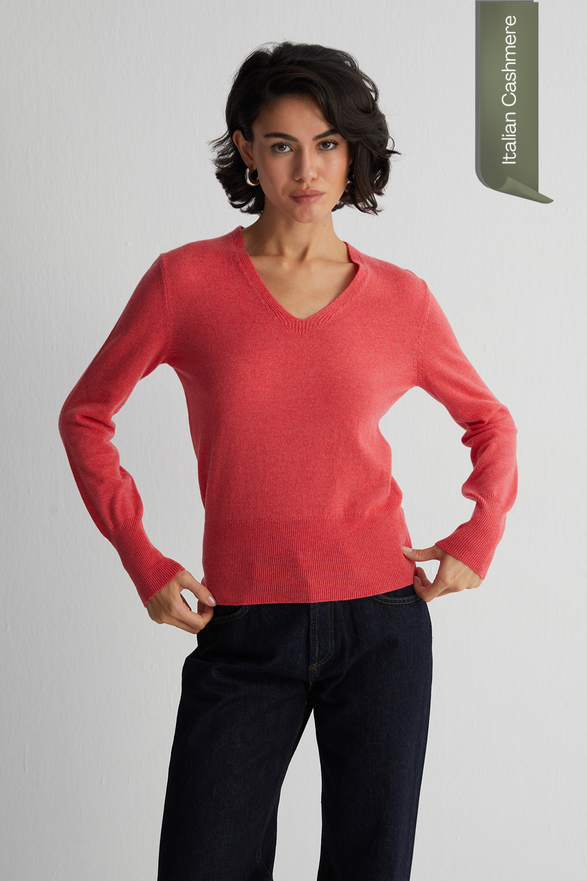 Mercan Franca Saf Kaşmir Derin V Yaka Kazak