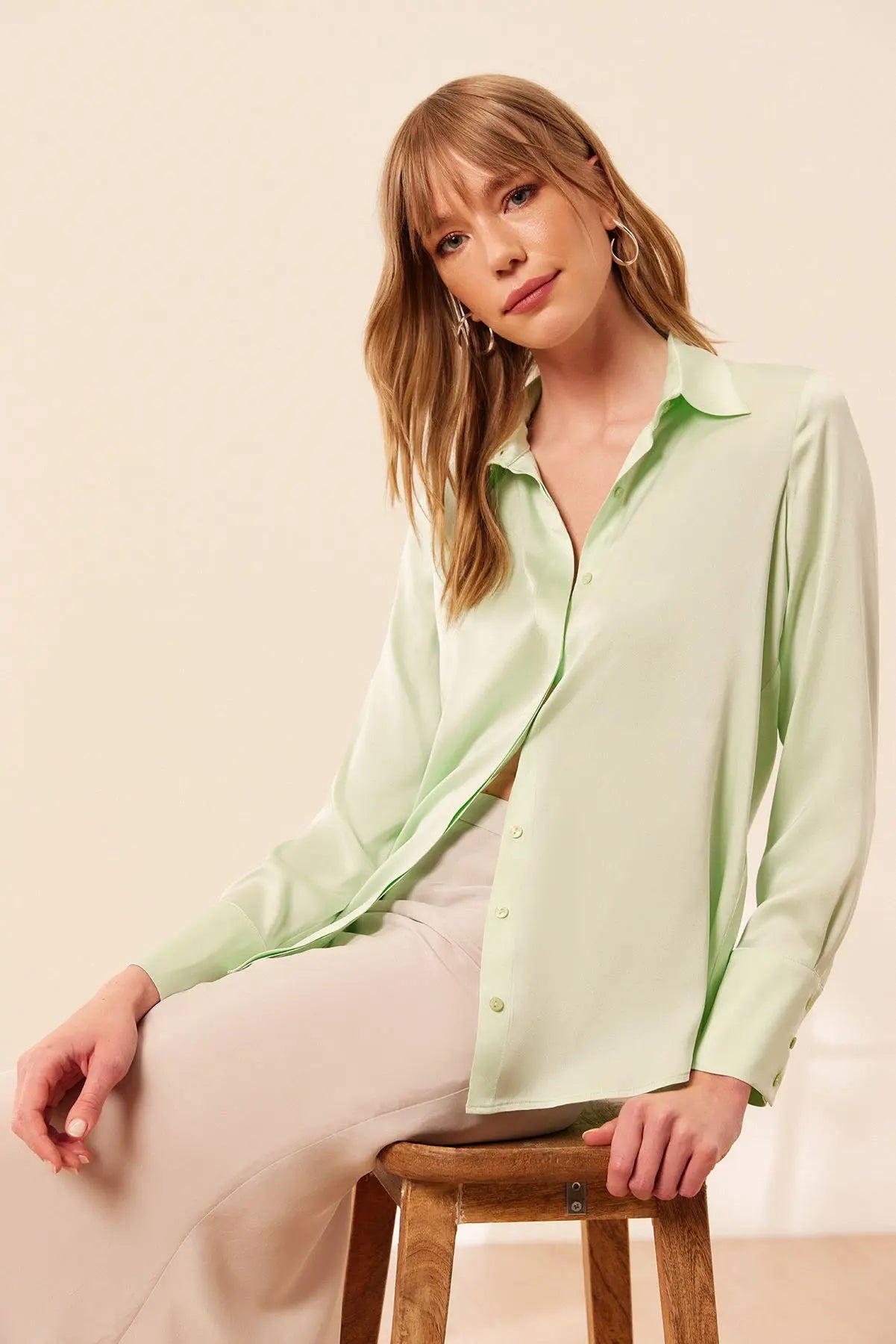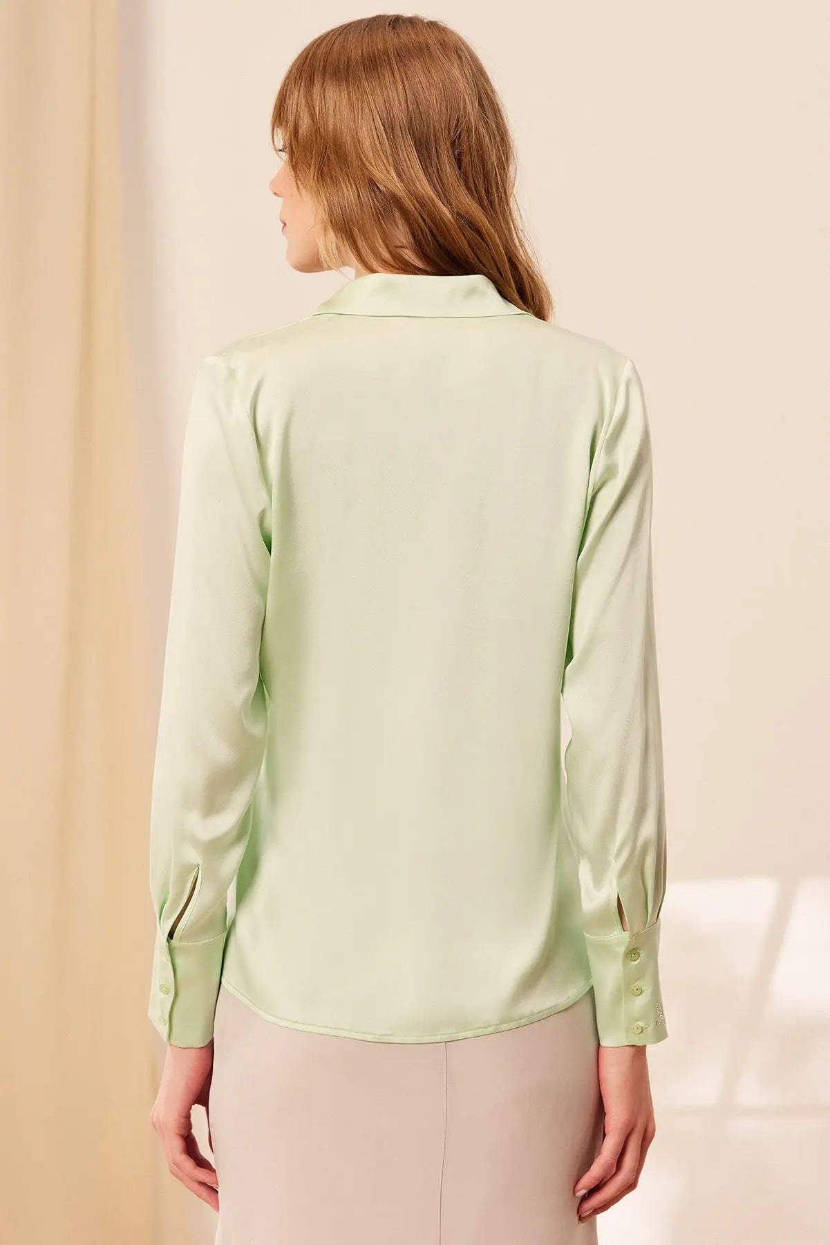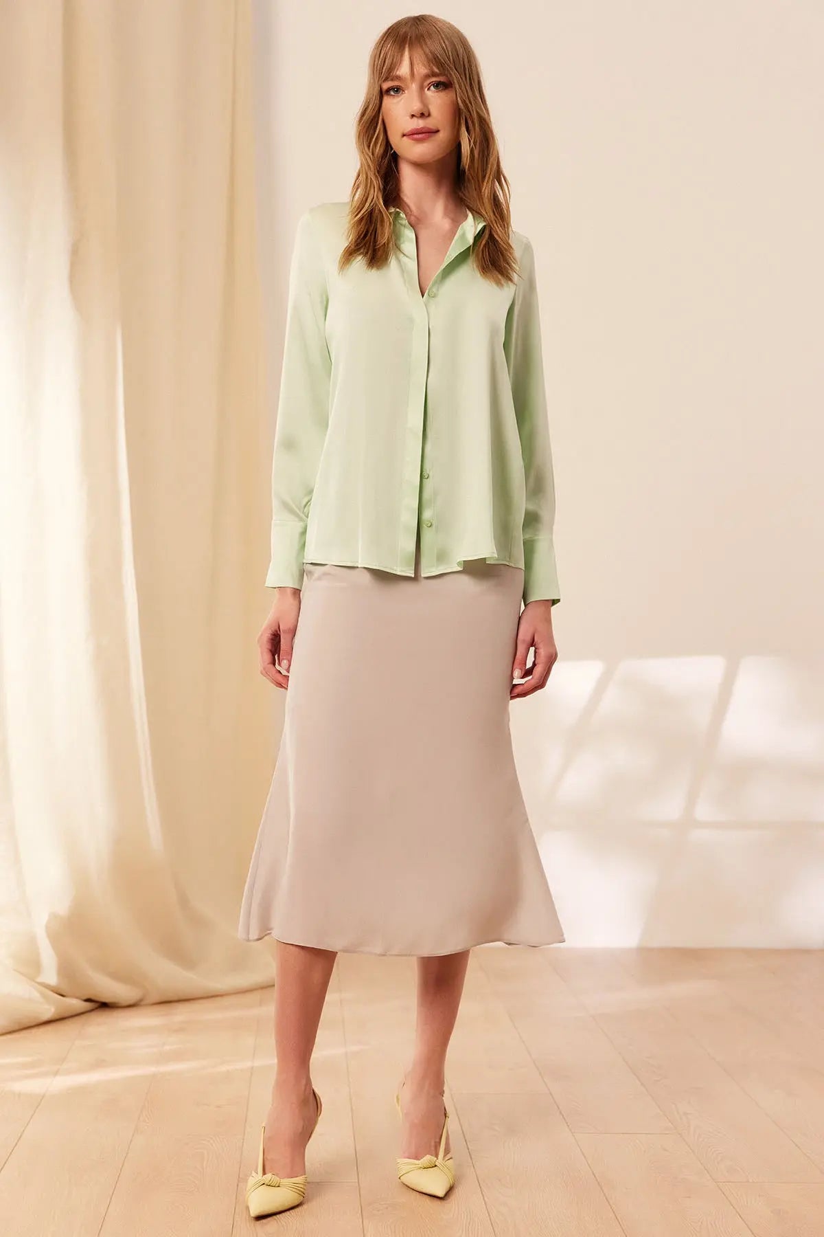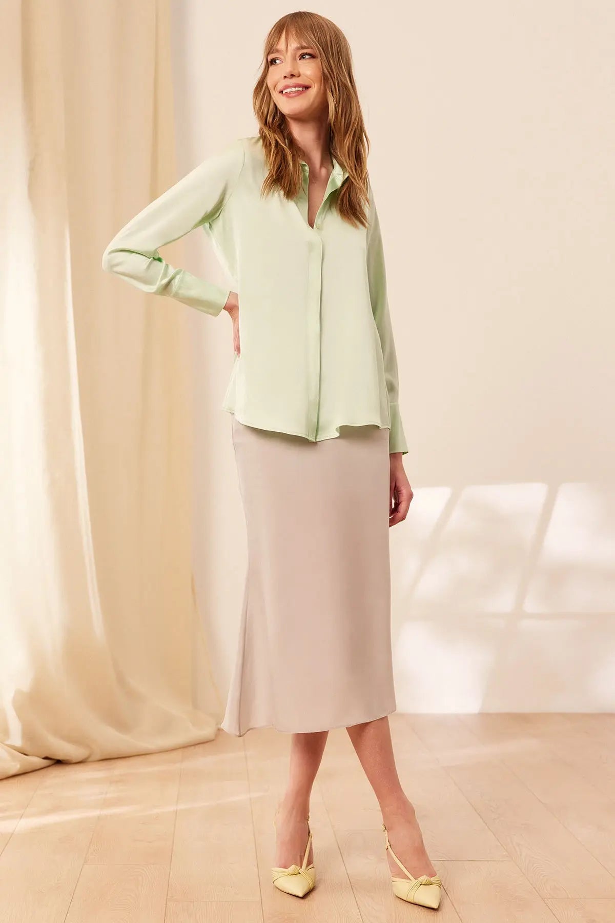 Mint Saf İpek Audrey Uzun Kollu Gömlek