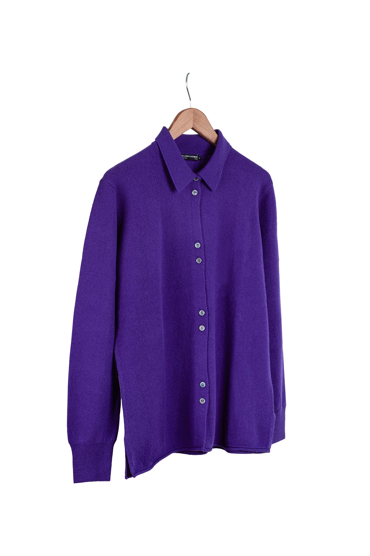 Agata saf kaşmir triko gömlek, klasik gömlek formunu yumuşak kaşmirle buluşturarak eşsiz bir konfor sunar. Derin mor rengiyle zarafetin ötesine geçen bu tasarım, zamansız bir görünüm ve benzersiz bir his arayanlara hitap eder.