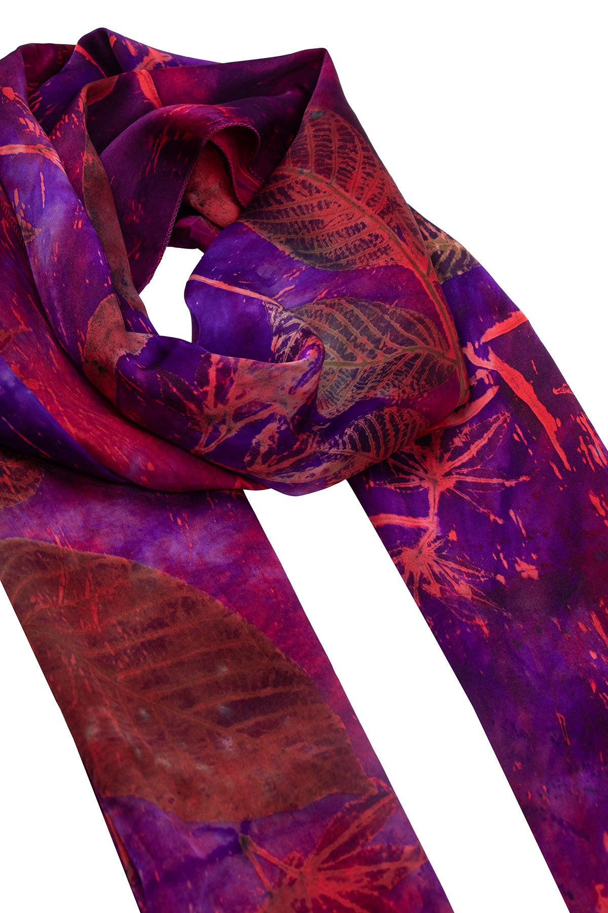 Bu şal, doğanın eşsiz renklerini ve zarafetini gardırobunuza taşıyor. Mor ve fuşyanın büyüleyici uyumuyla dikkat çeken bu el baskısı şal, %100 saf ipekten üretilmiştir ve cildinize ipeksi bir dokunuş sağlar. Ekolojik ve sürdürülebilir üretim yöntemleriyle üretilen bu şal, hem şıklığınızı tamamlar hem de doğaya olan duyarlılığınızı gösterir.