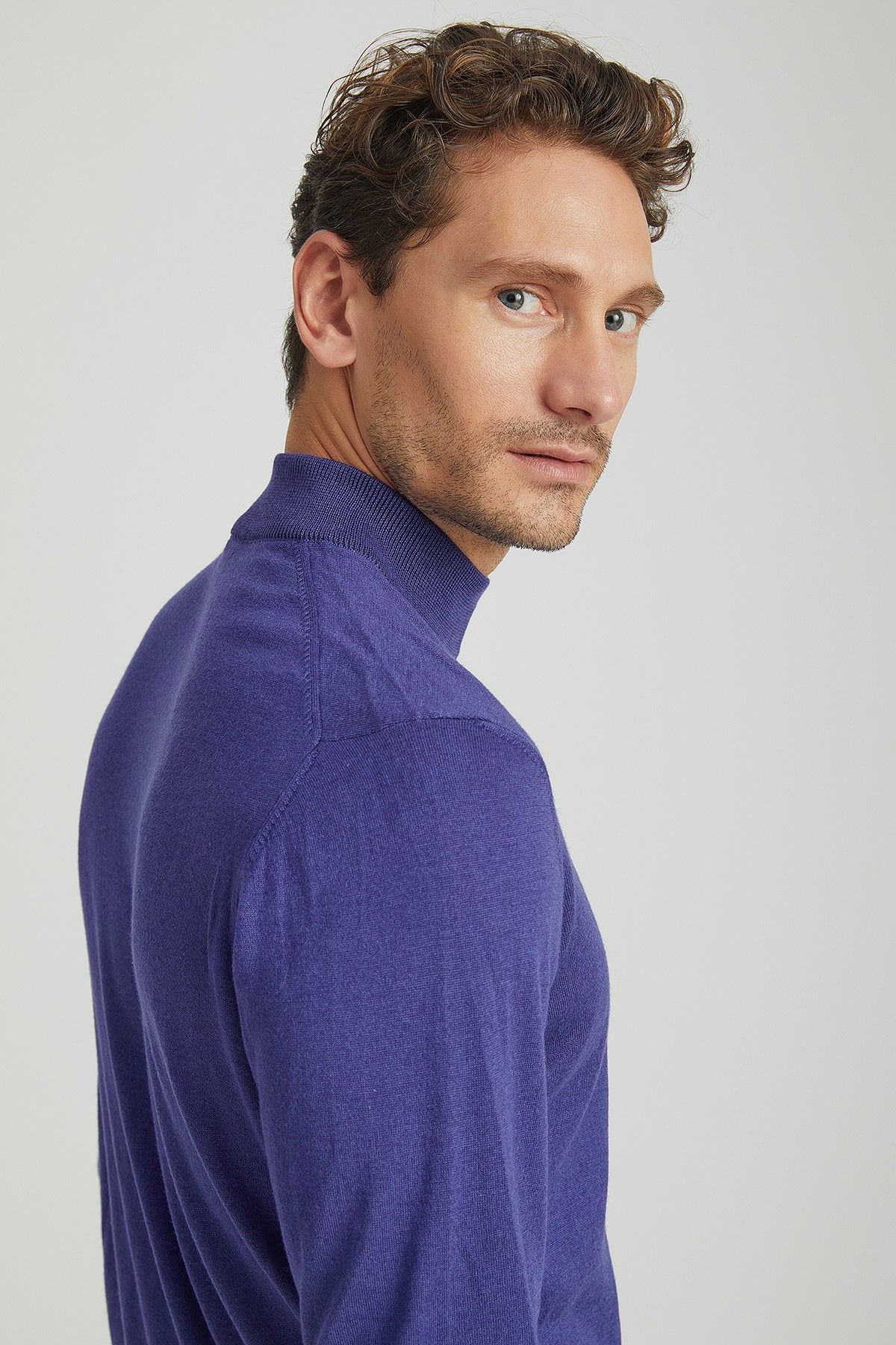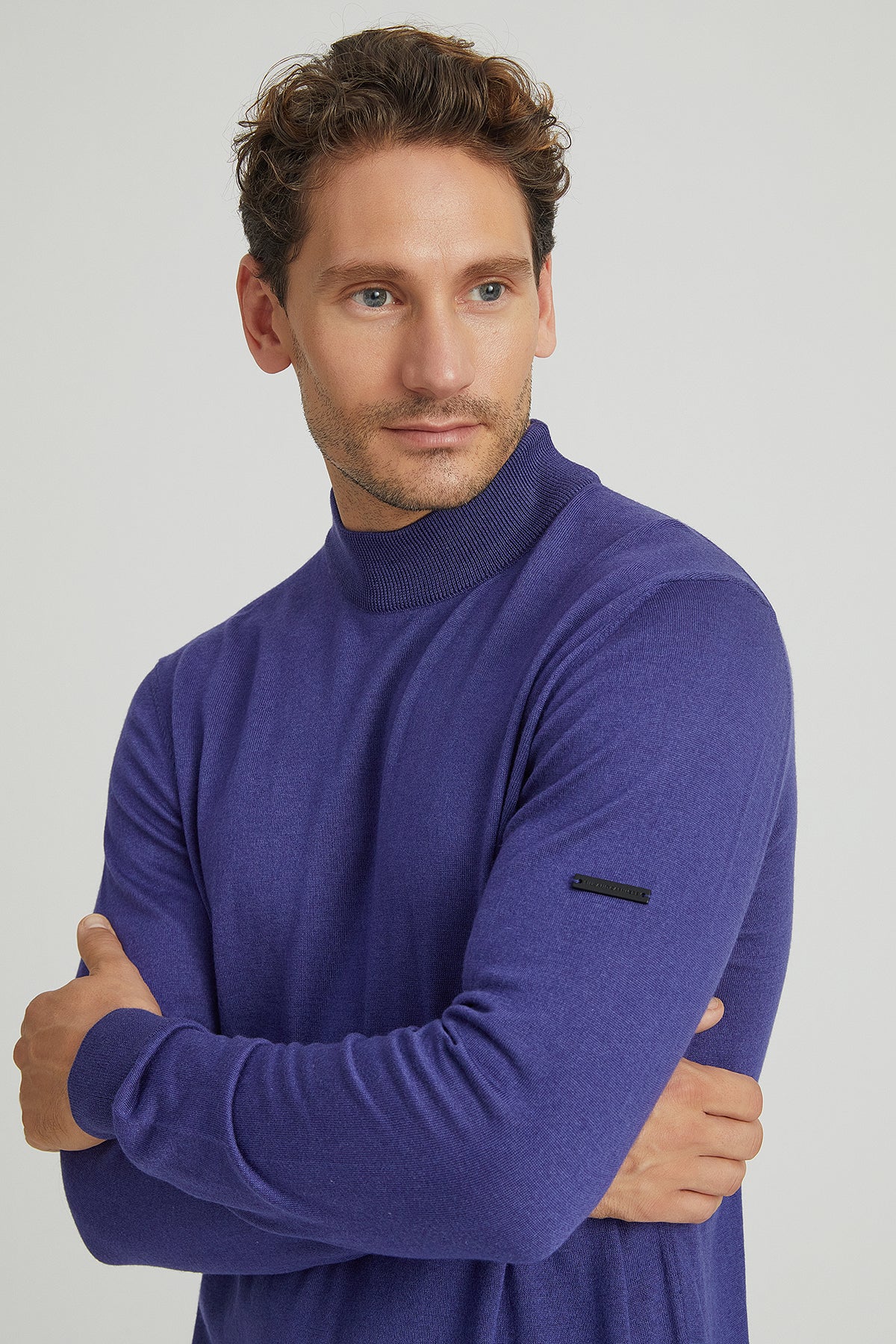 Mor İpek ve Kaşmir Yarım Balıkçı Yaka Uzun Kol Utku Erkek Triko
