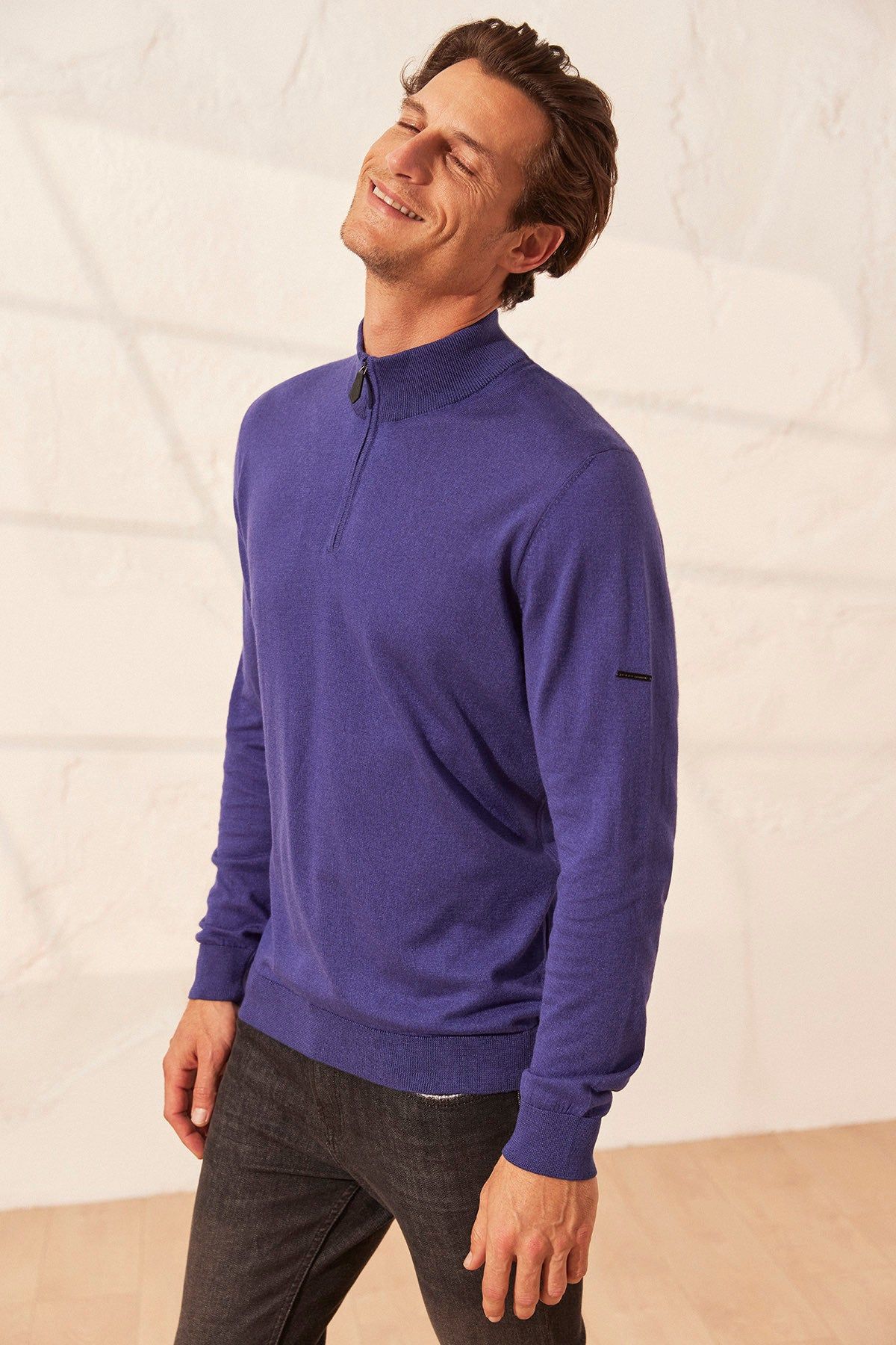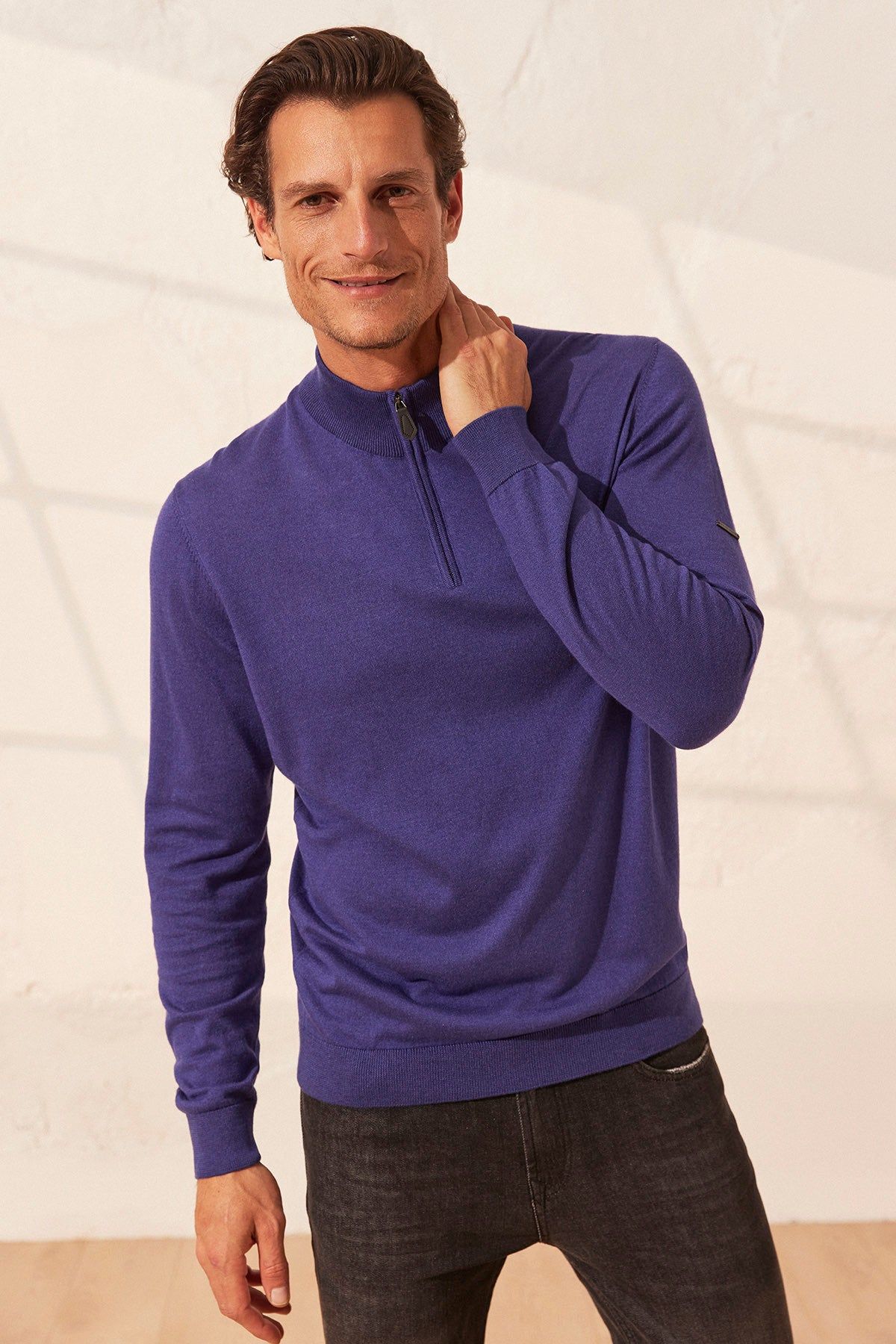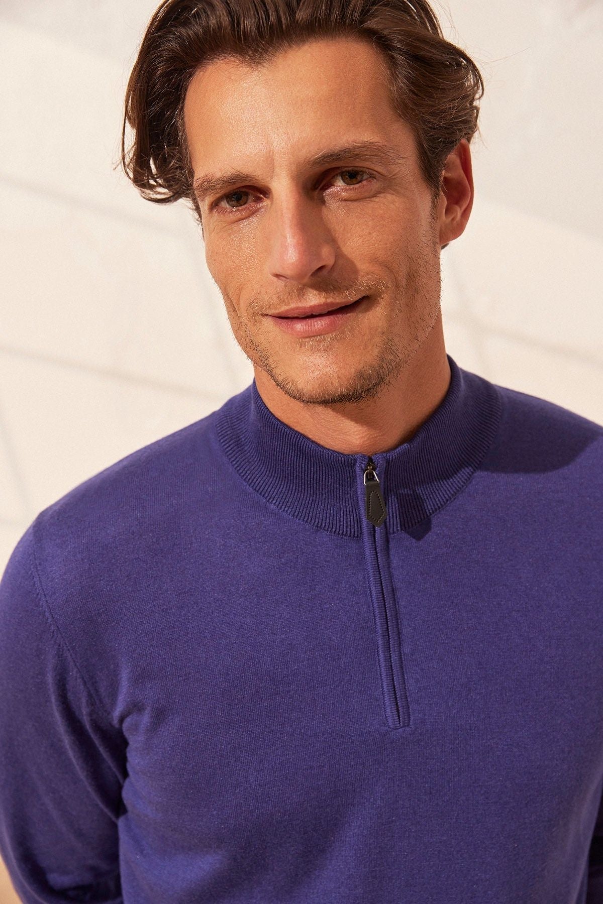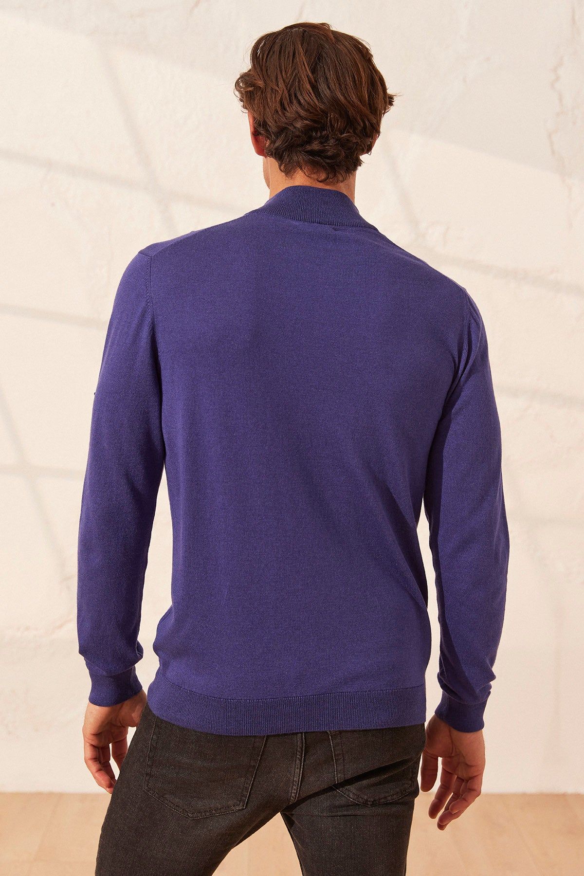 Mor İpek ve Kaşmir Yarım Balıkçı Yaka Uzun Kollu Utku Erkek Triko