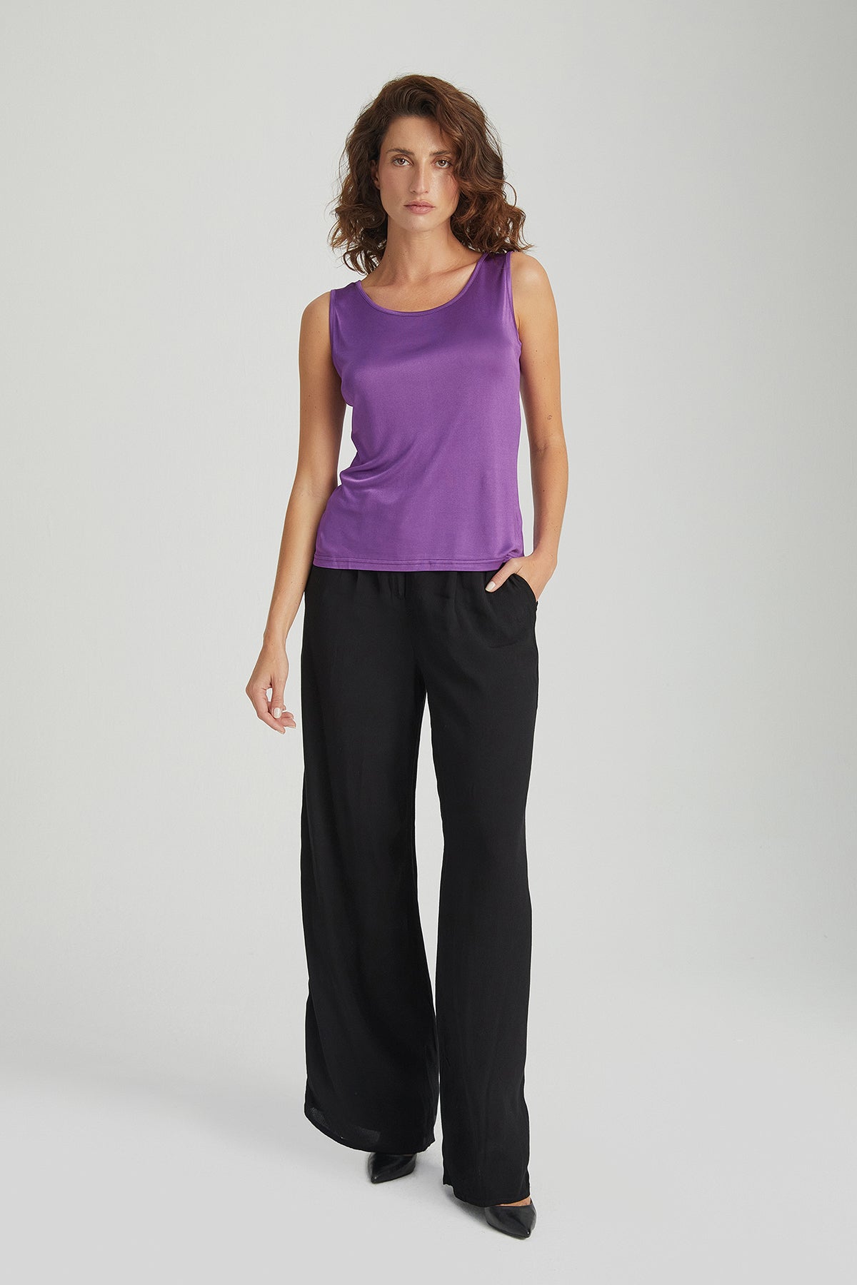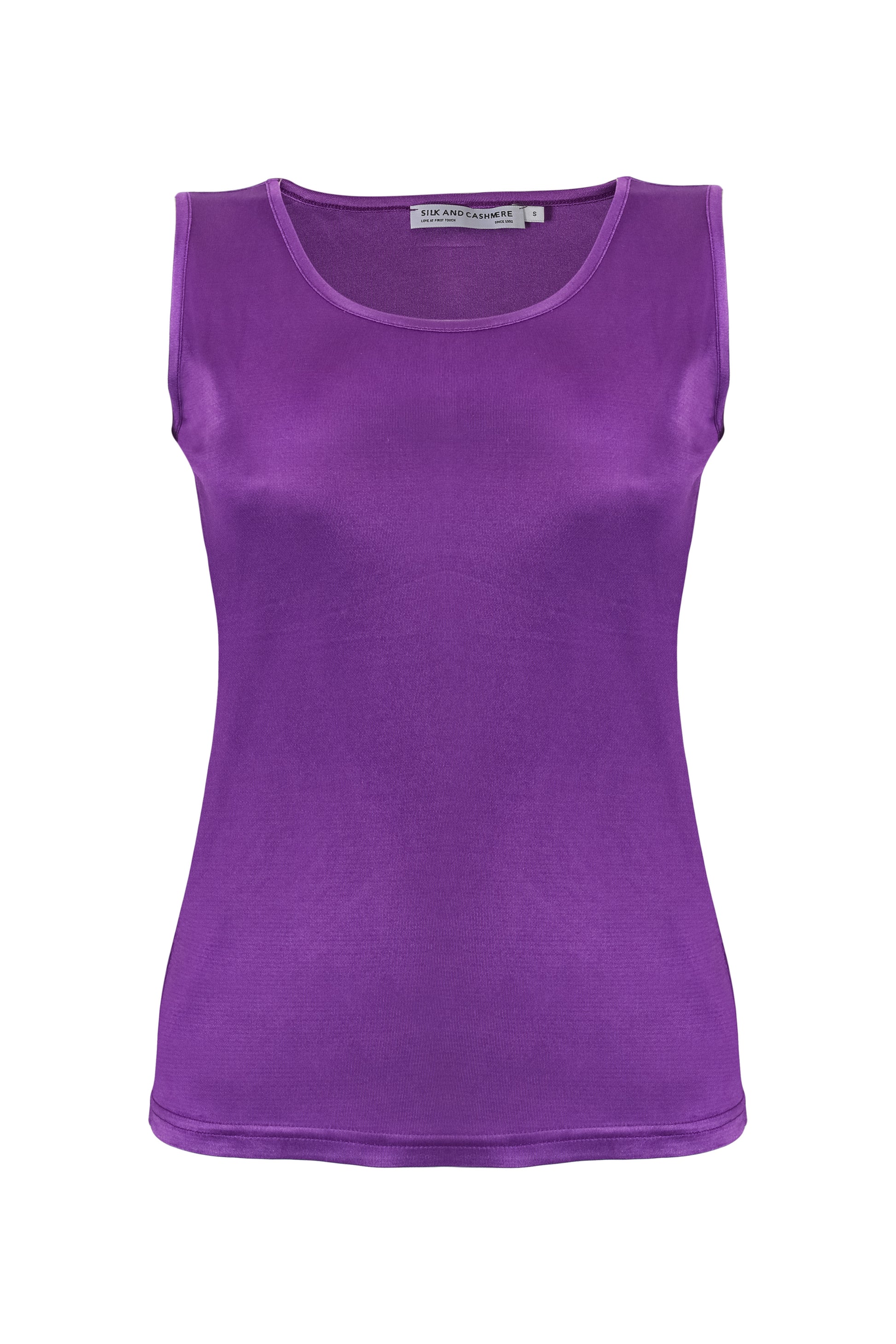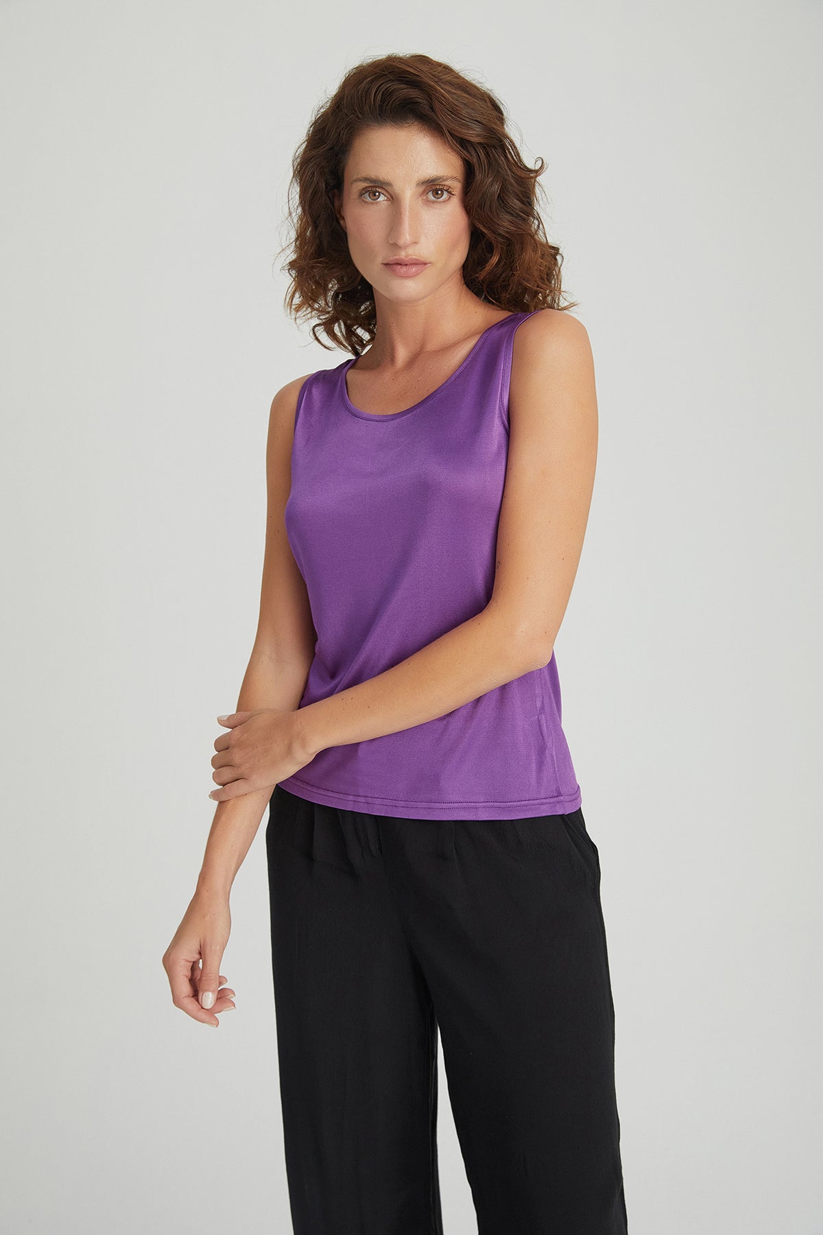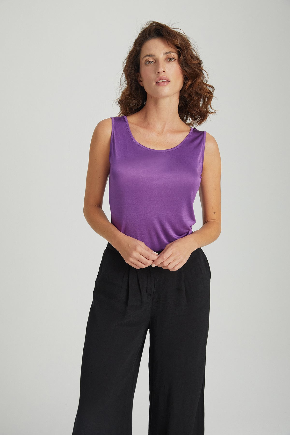 Mor Marina İpekli Yuvarlak Yaka Kolsuz T-Shirt