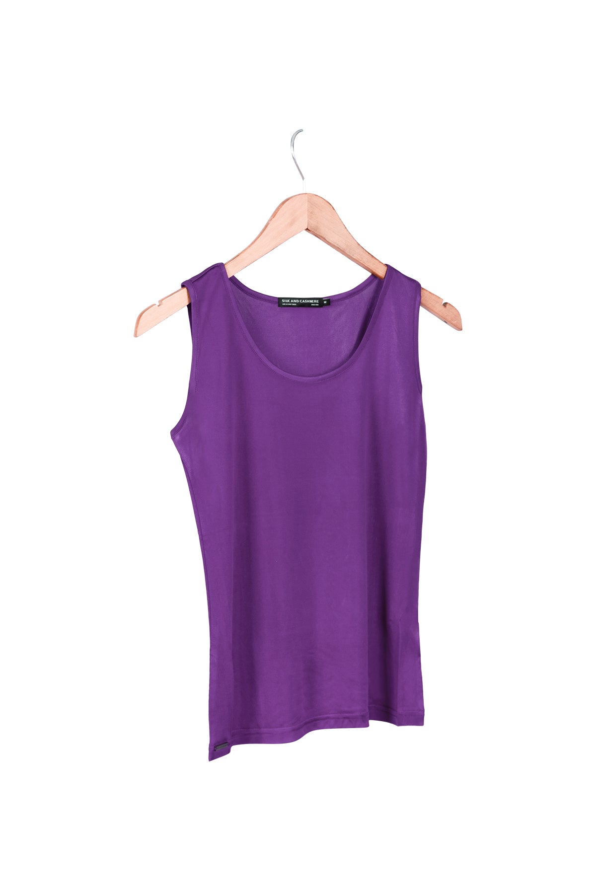 Mor Marina İpekli Yuvarlak Yaka Kolsuz T-Shirt