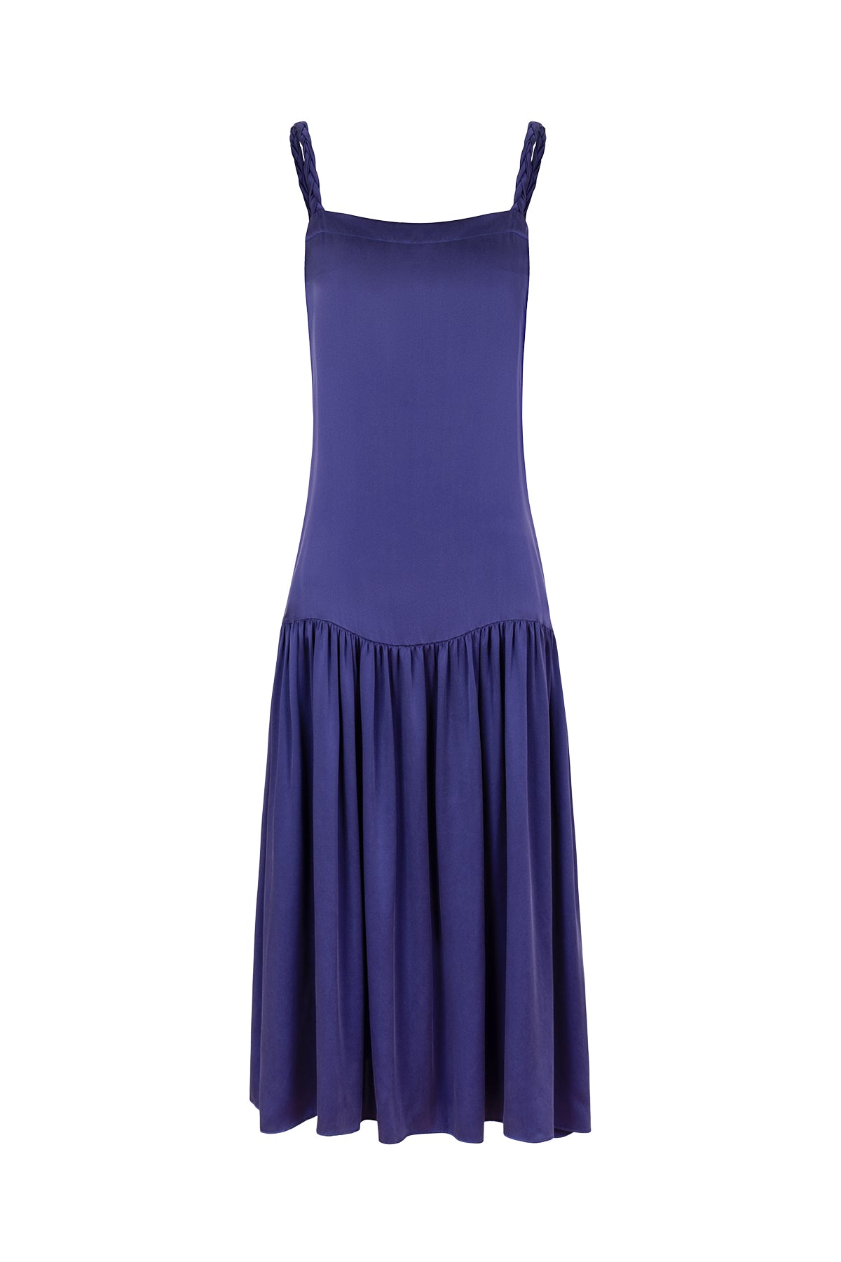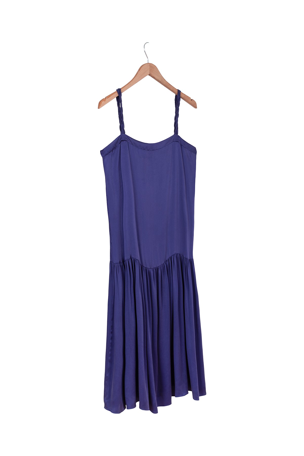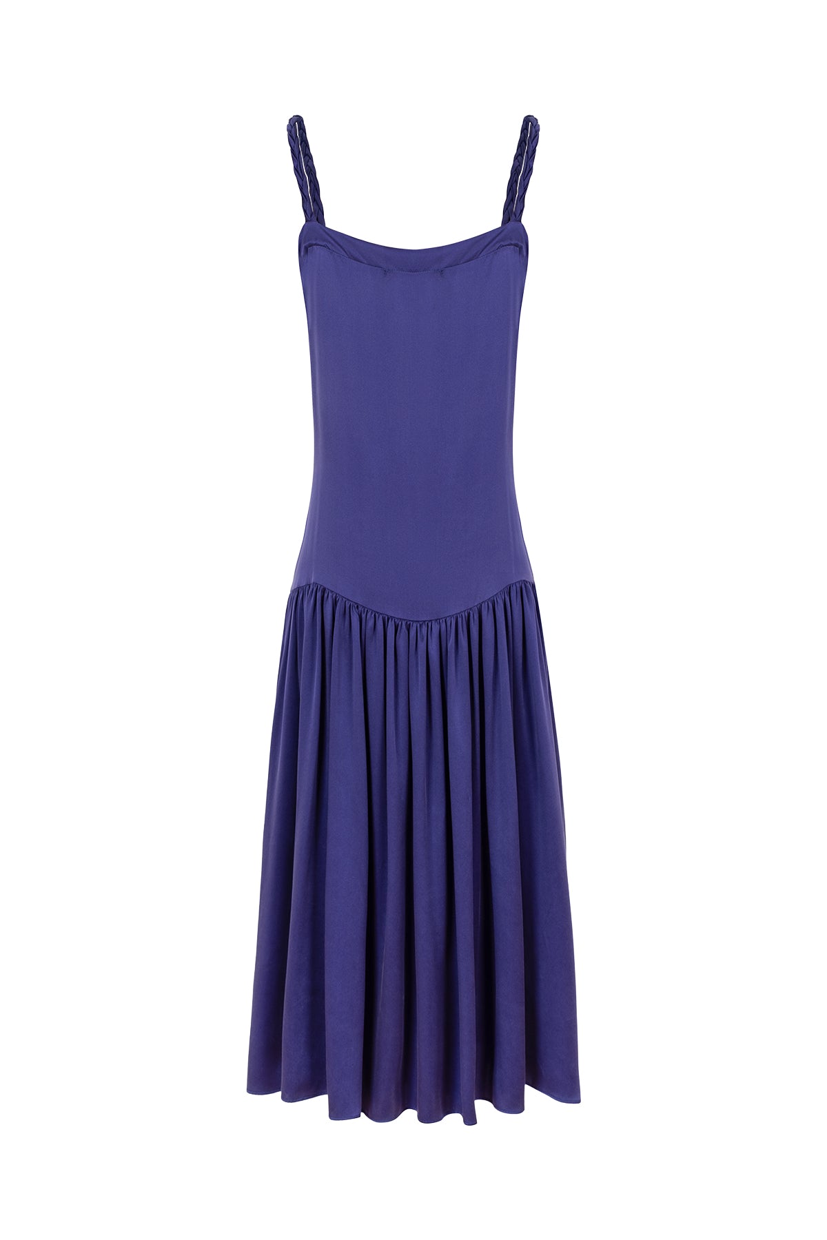 Saf ipeğin zarif dokunuşunu morun asil tonuyla buluşturan bu elbise, gardırobunuza modern bir zarafet katar. Doğal parlaklığı ve akışkan formu sayesinde hem konforlu hem de dikkat çekici bir duruş sunar. İnce detaylarla işlenmiş askılar ve dökümlü etek, hareketlerinize özgün bir dinamizm katar.