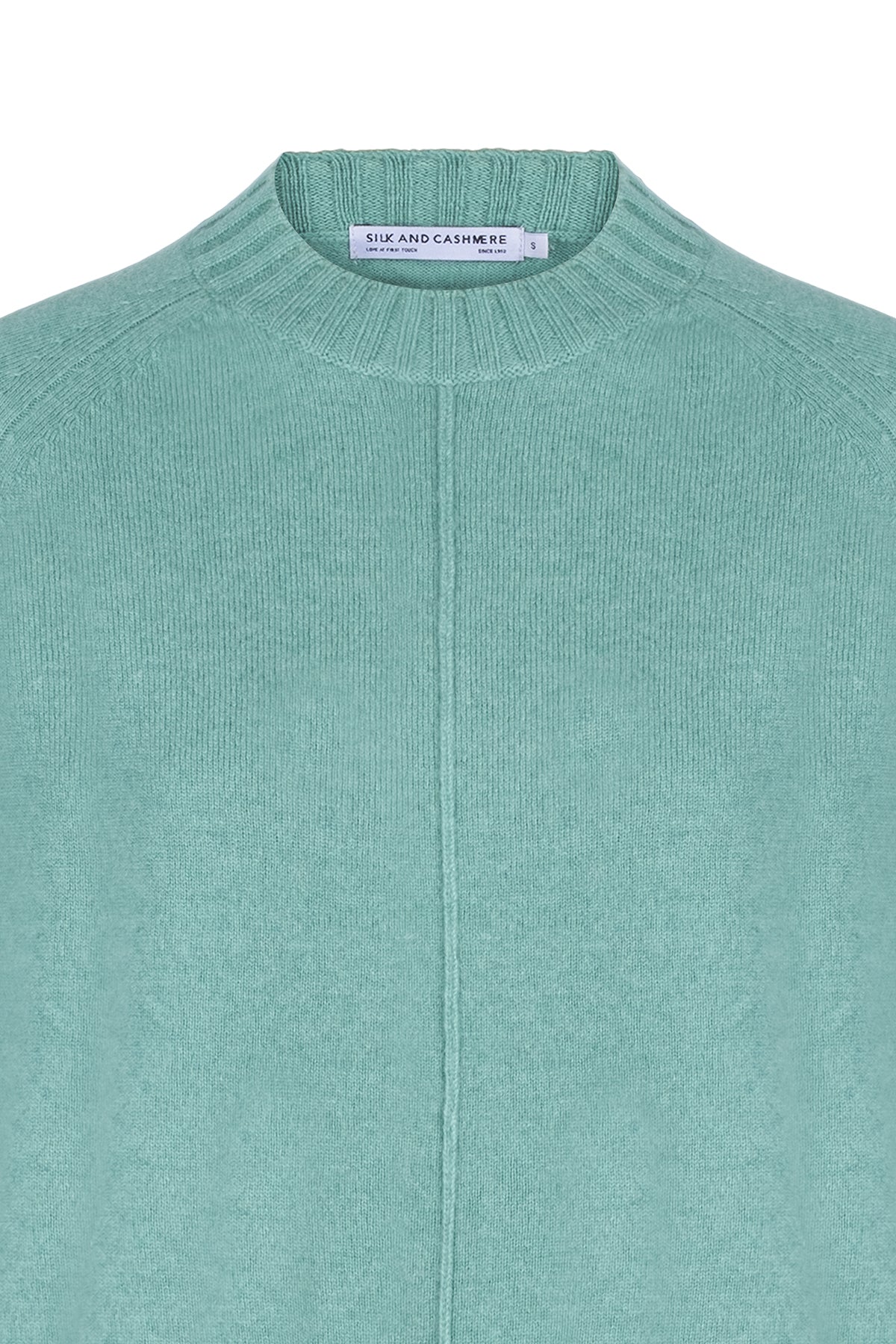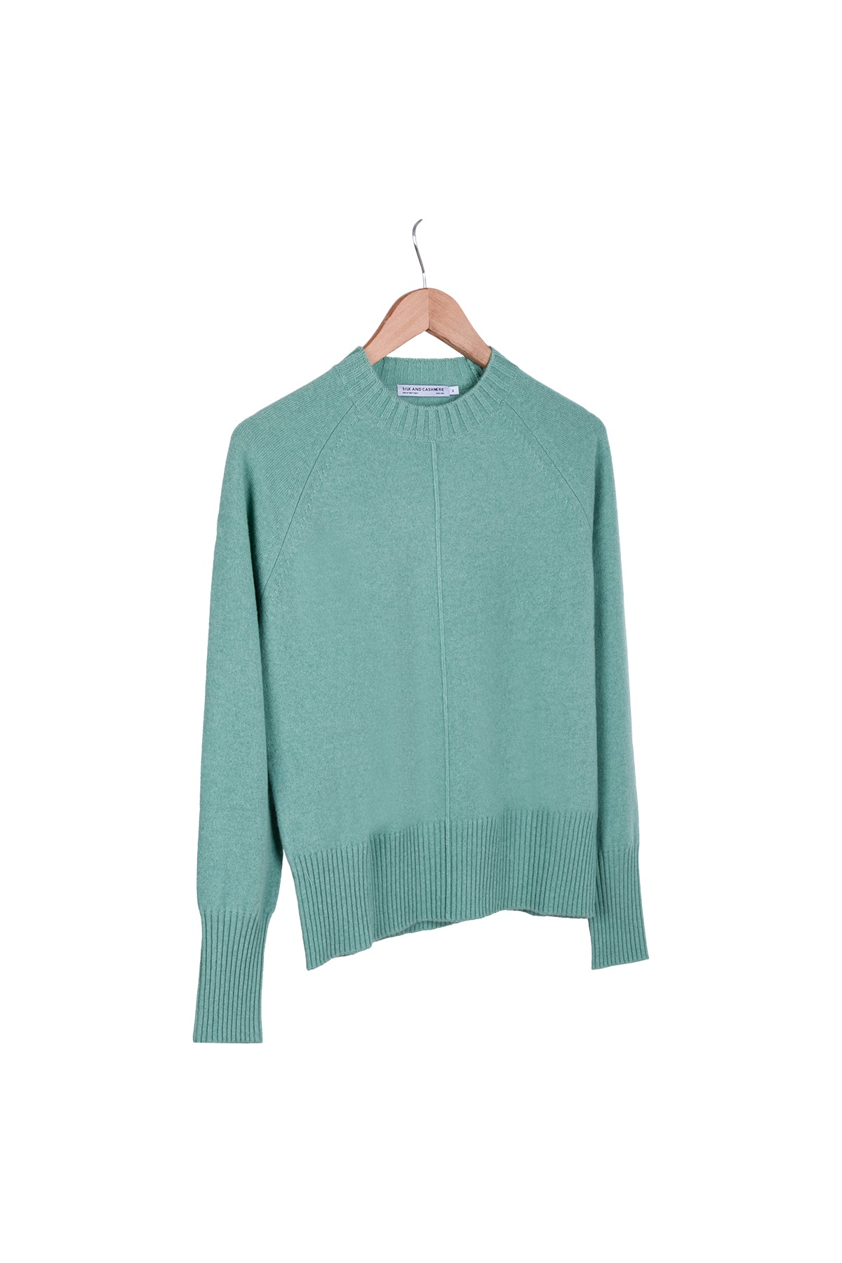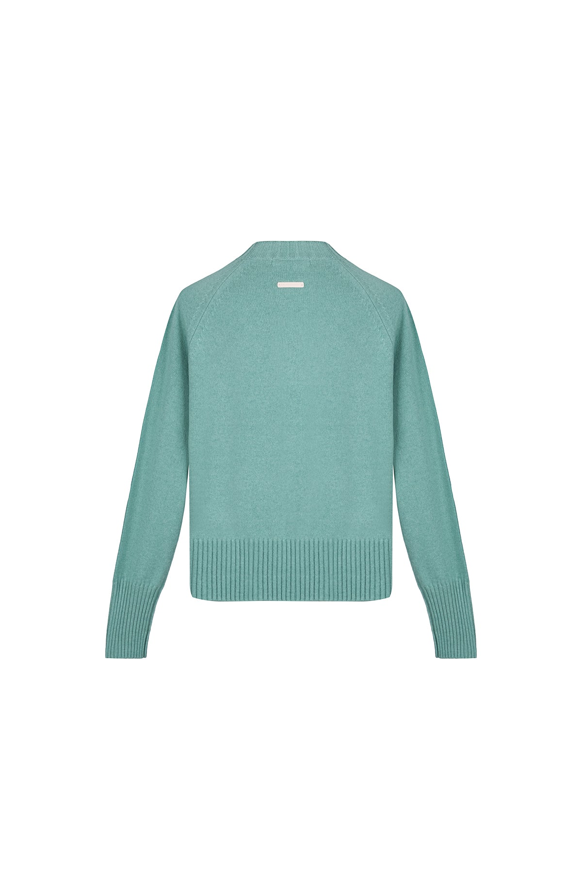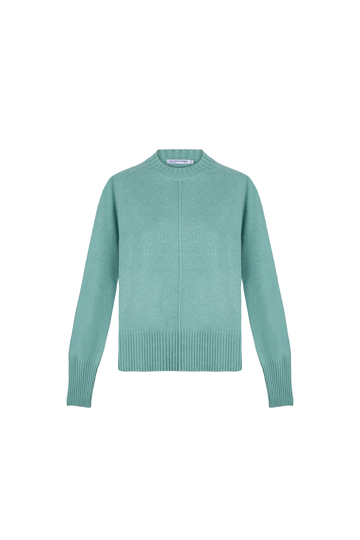 Nil Yeşili Carla Saf Kaşmir Yuvarlak Yaka Kazak