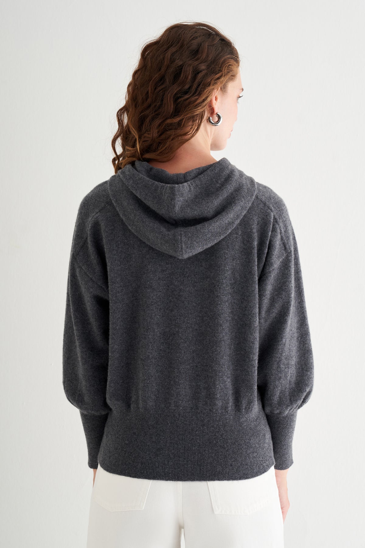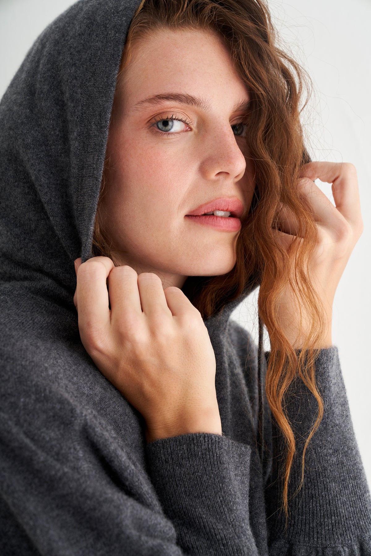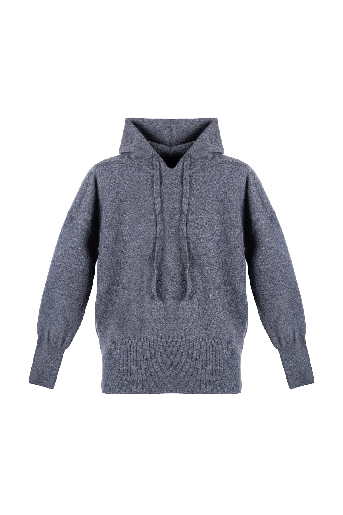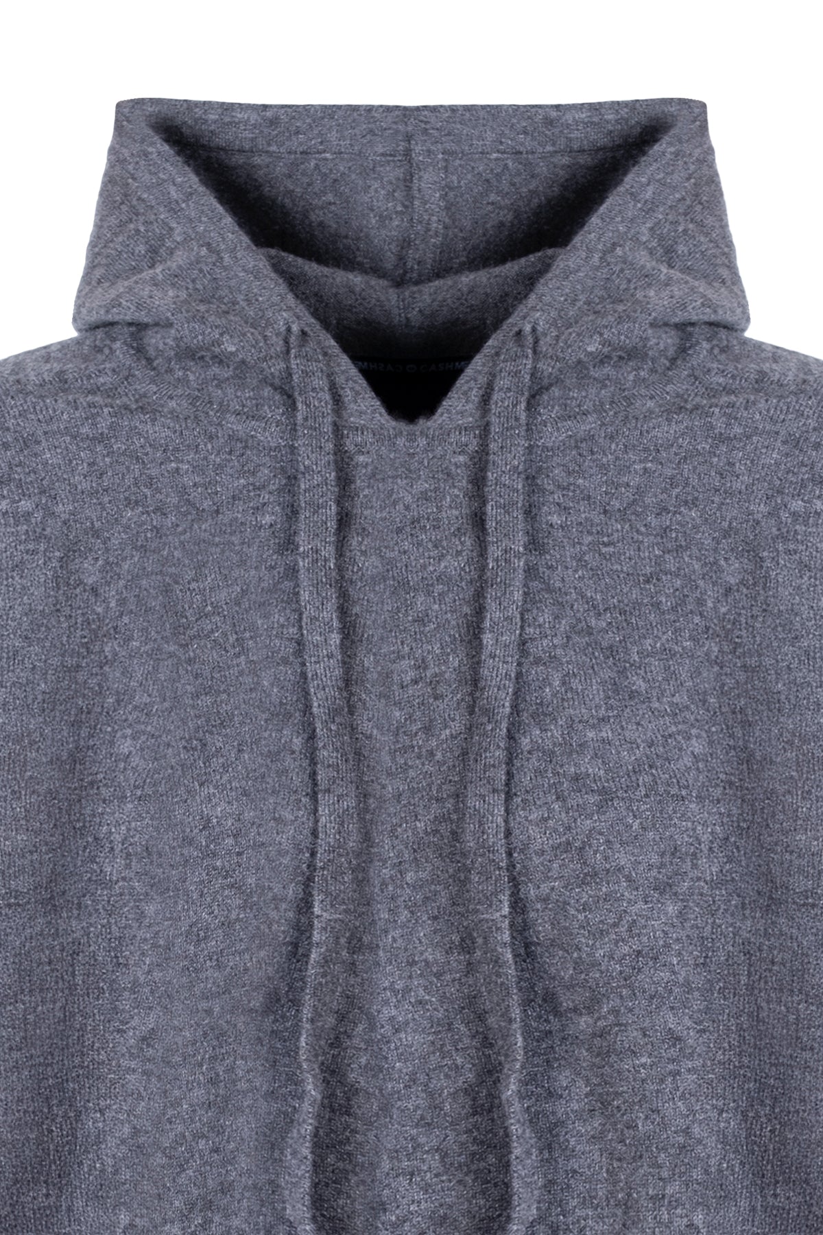 Orta Gri Melanj Agata Saf Kaşmir Kapüşonlu Kazak