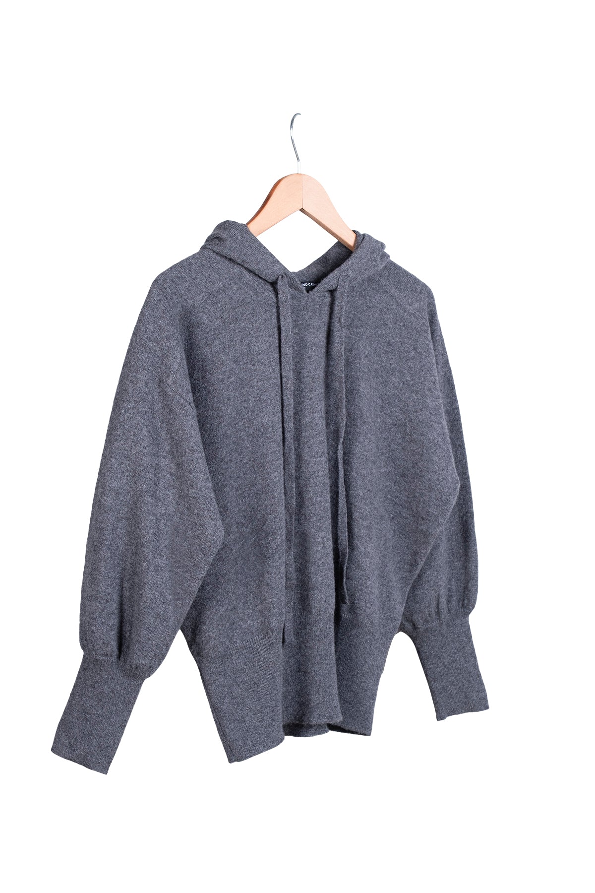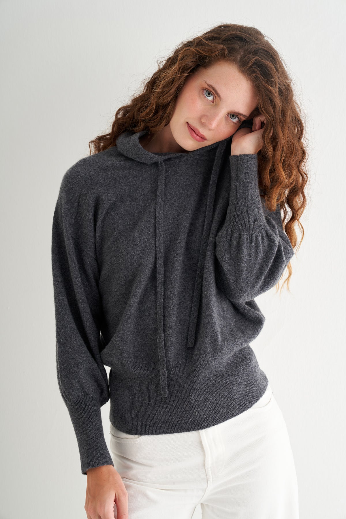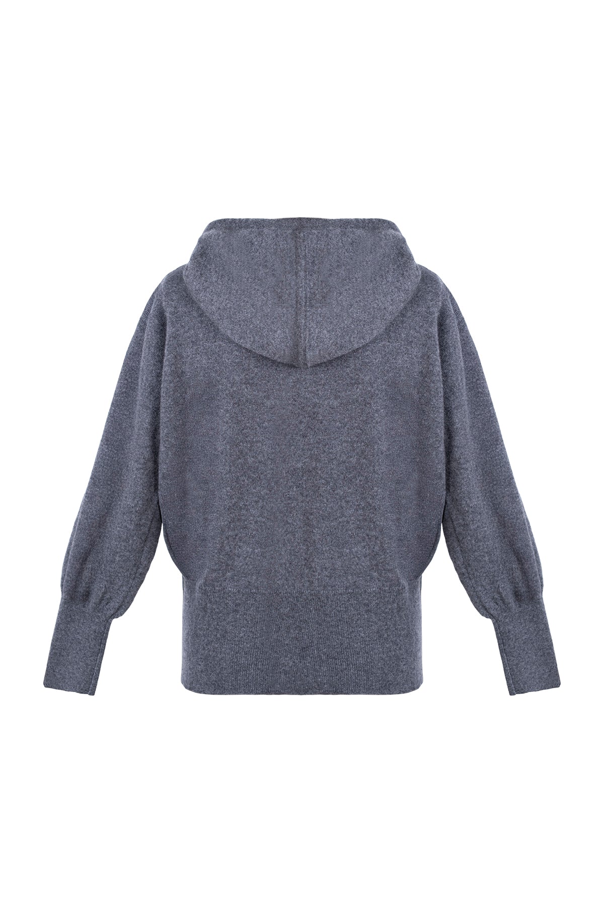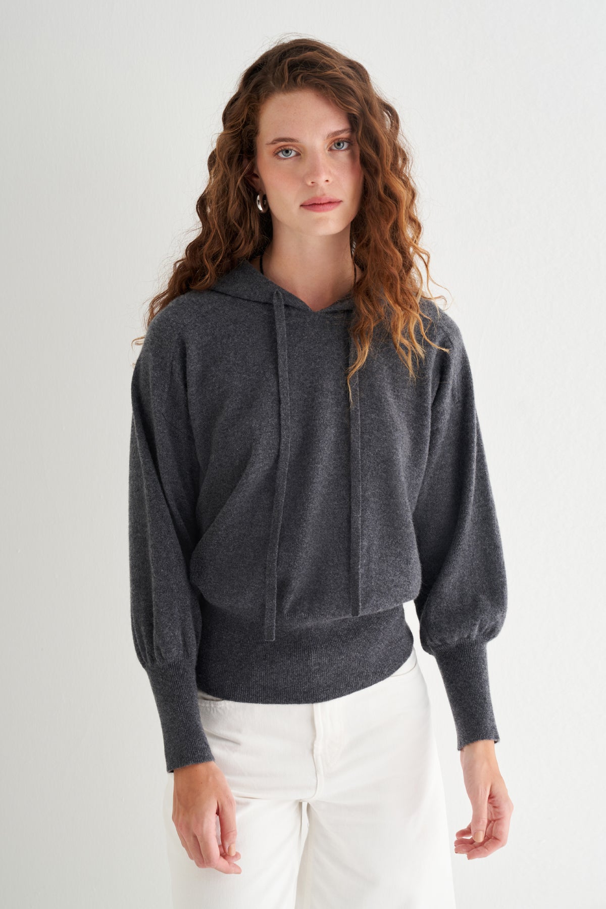 Orta Gri Melanj Agata Saf Kaşmir Kapüşonlu Kazak