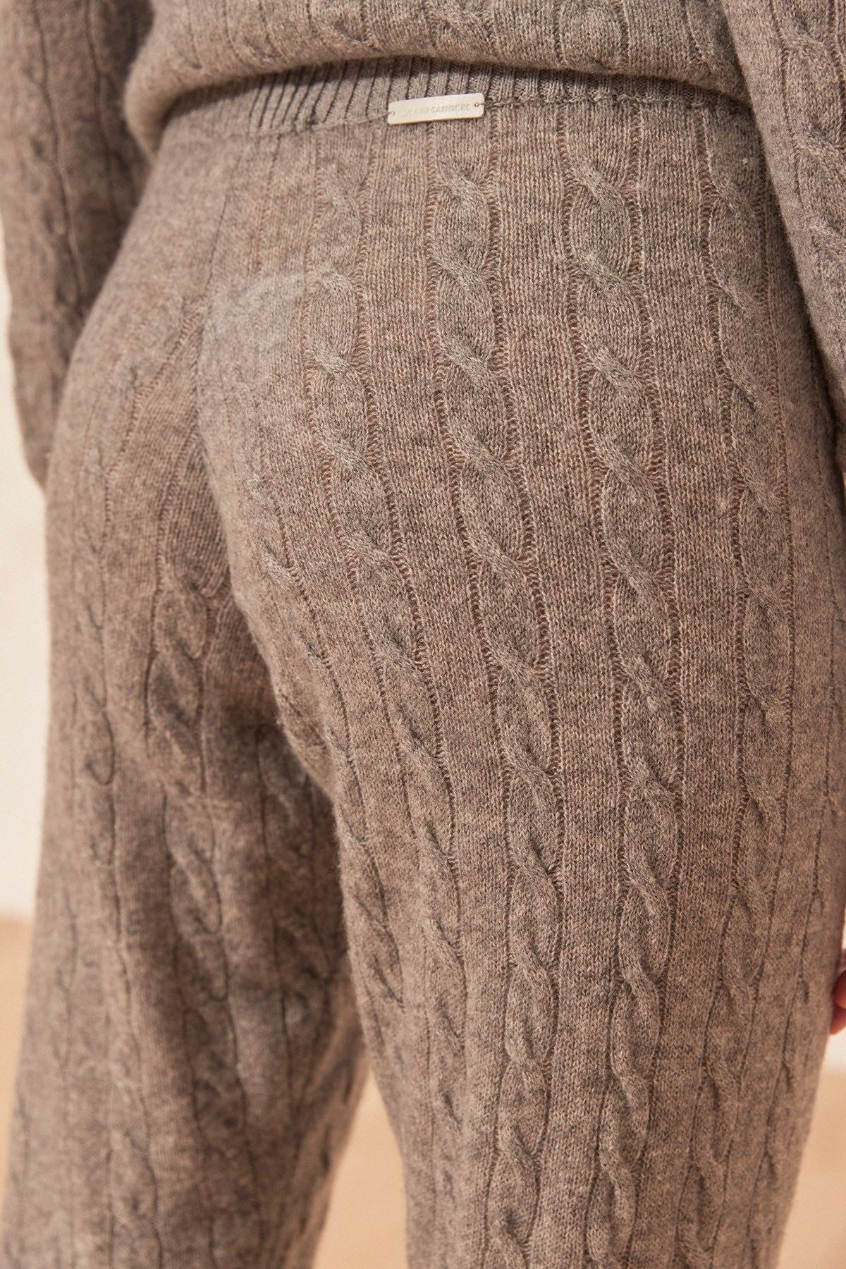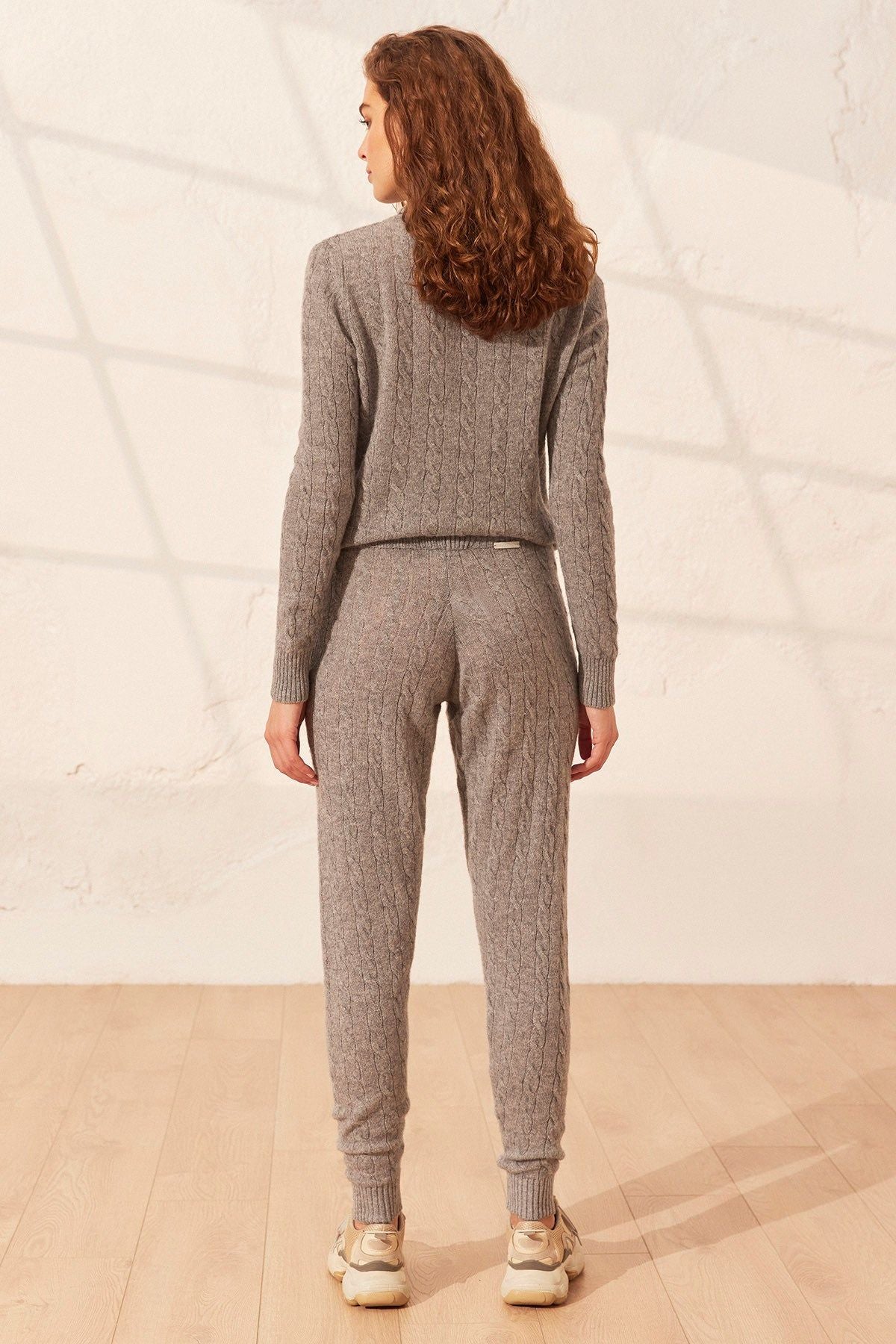 Orta Gri Melanj Amelia Avustralya Yünü Kaşmir Saç Örgülü Kadın Triko Pantolon