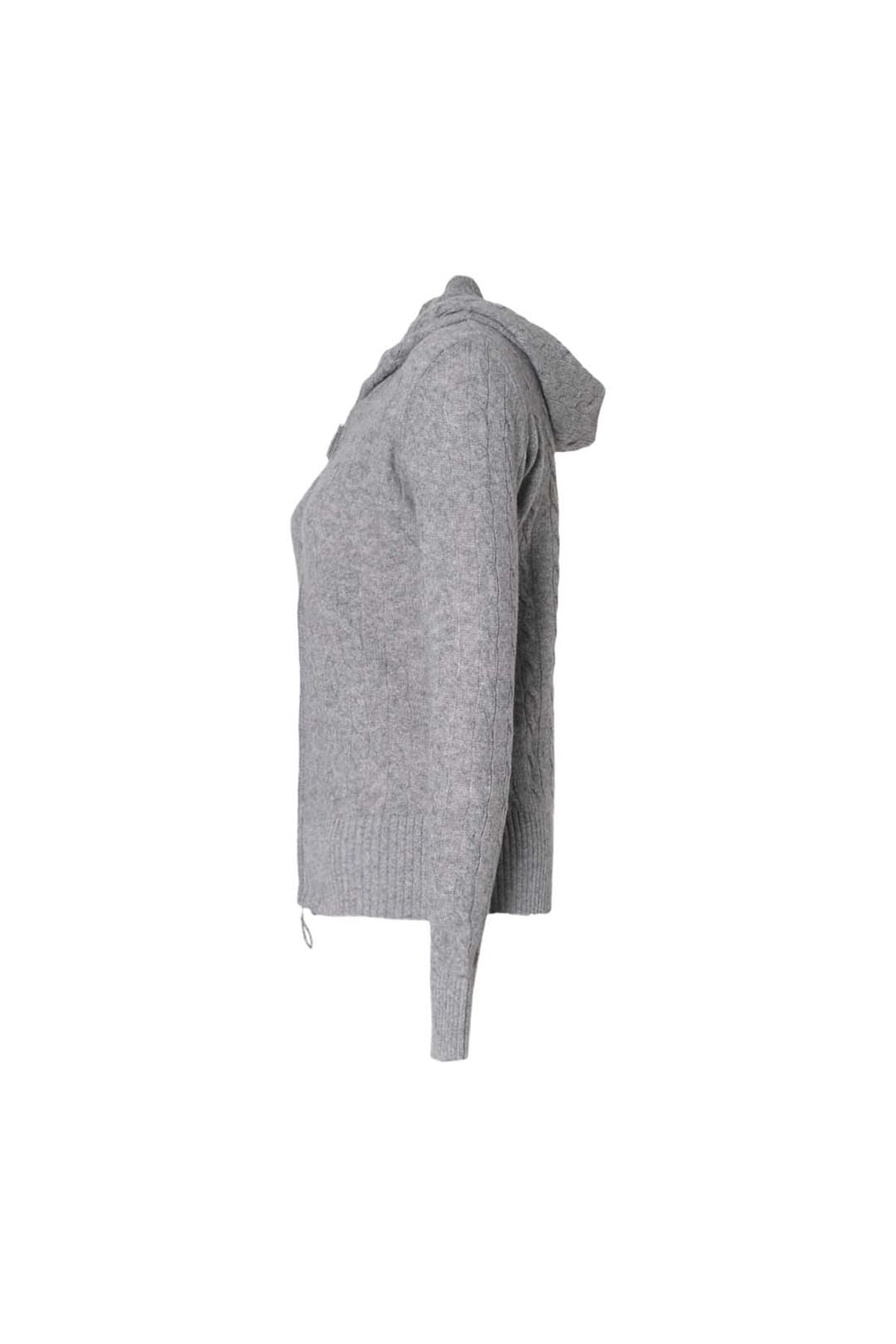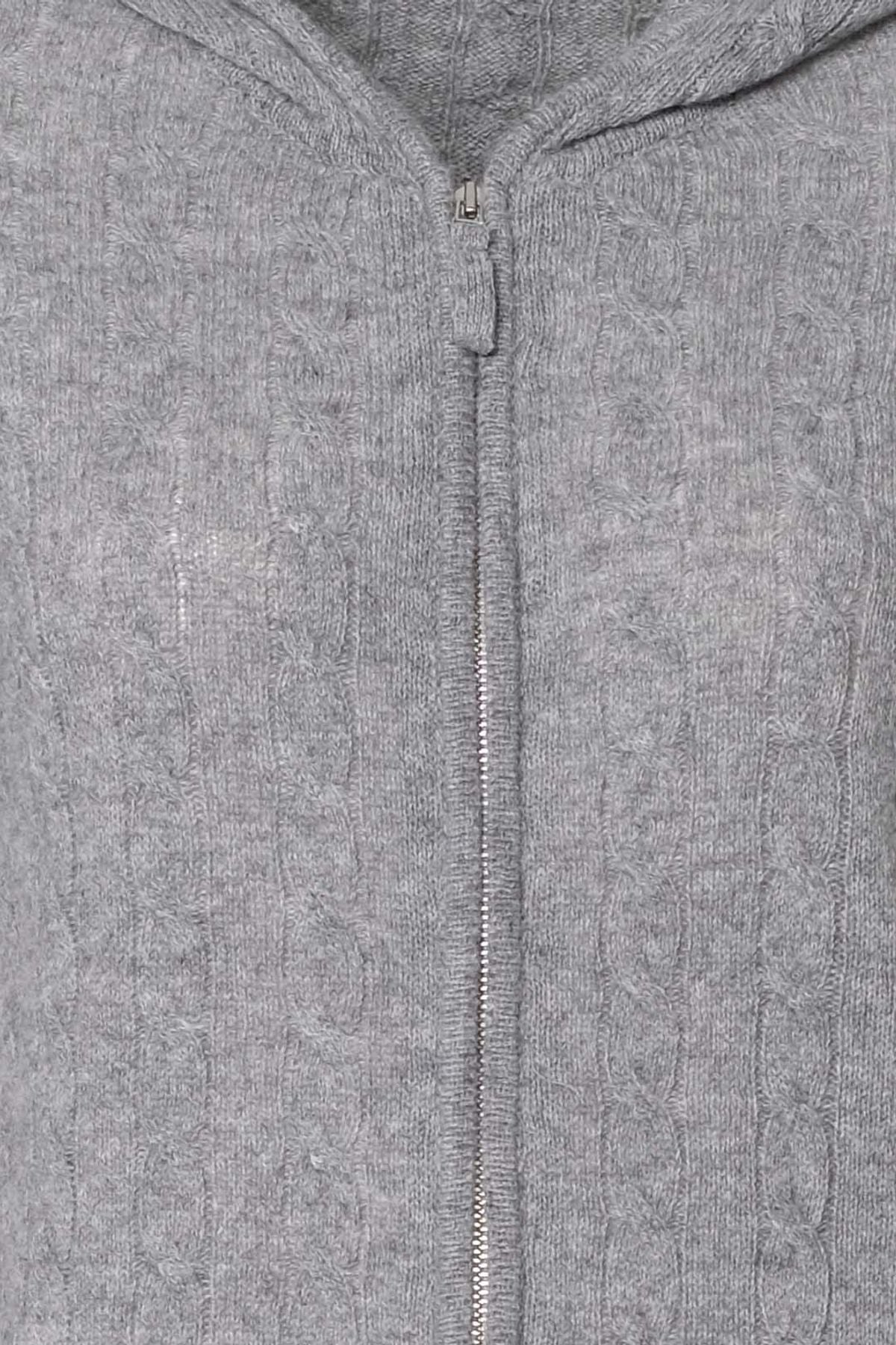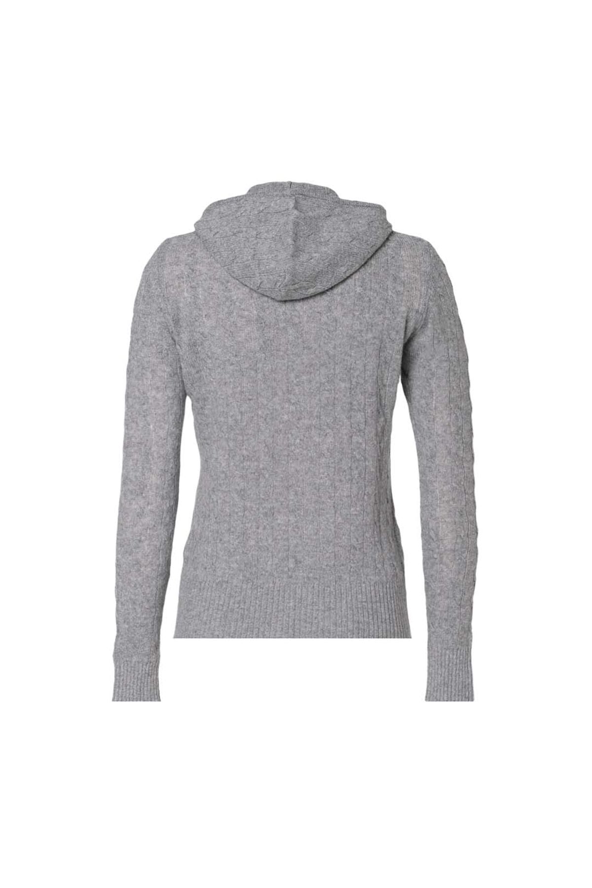 Orta Gri Melanj Amelia Avustralya Yünü Kaşmir Saç Örgülü Uzun Kollu Kadın Kapüşonlu Hırka