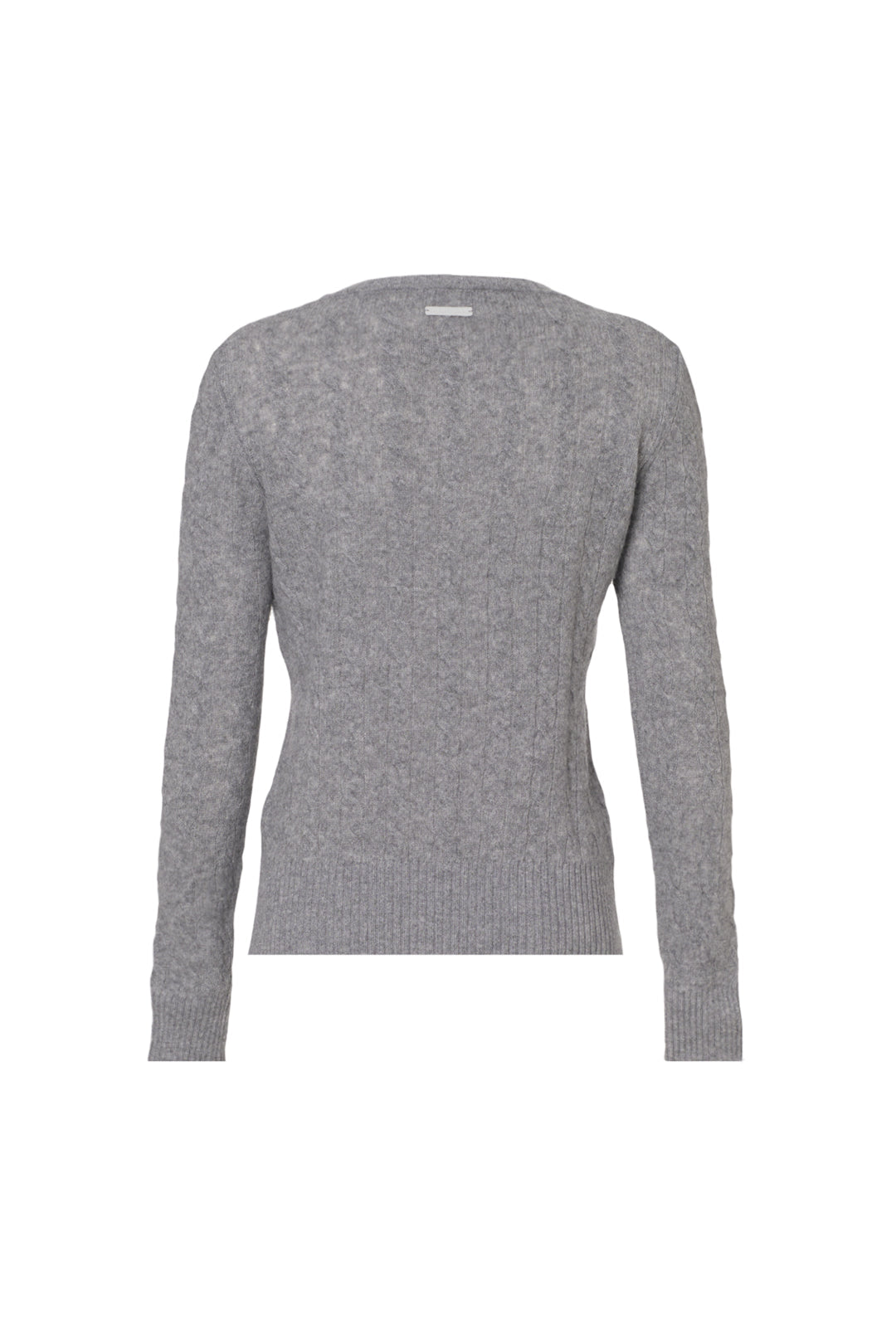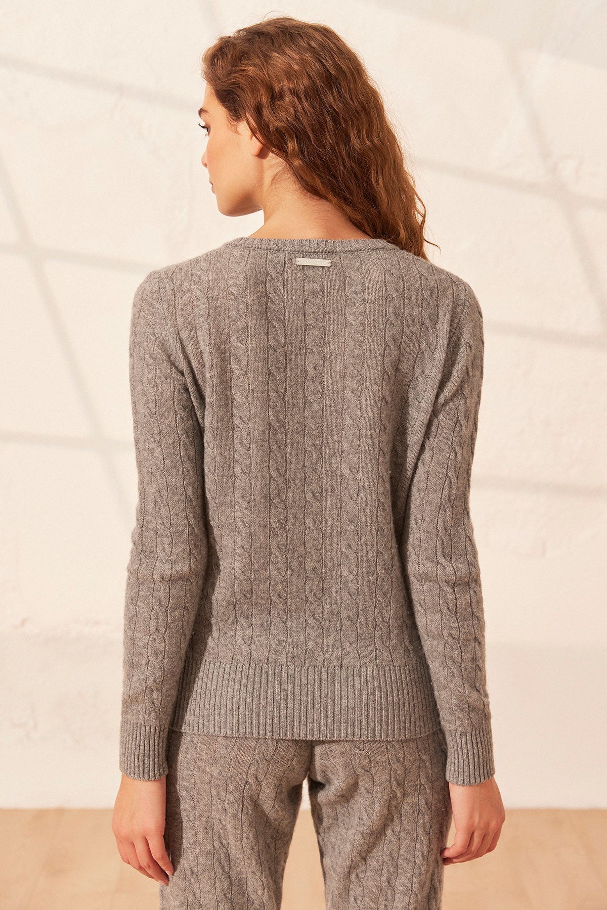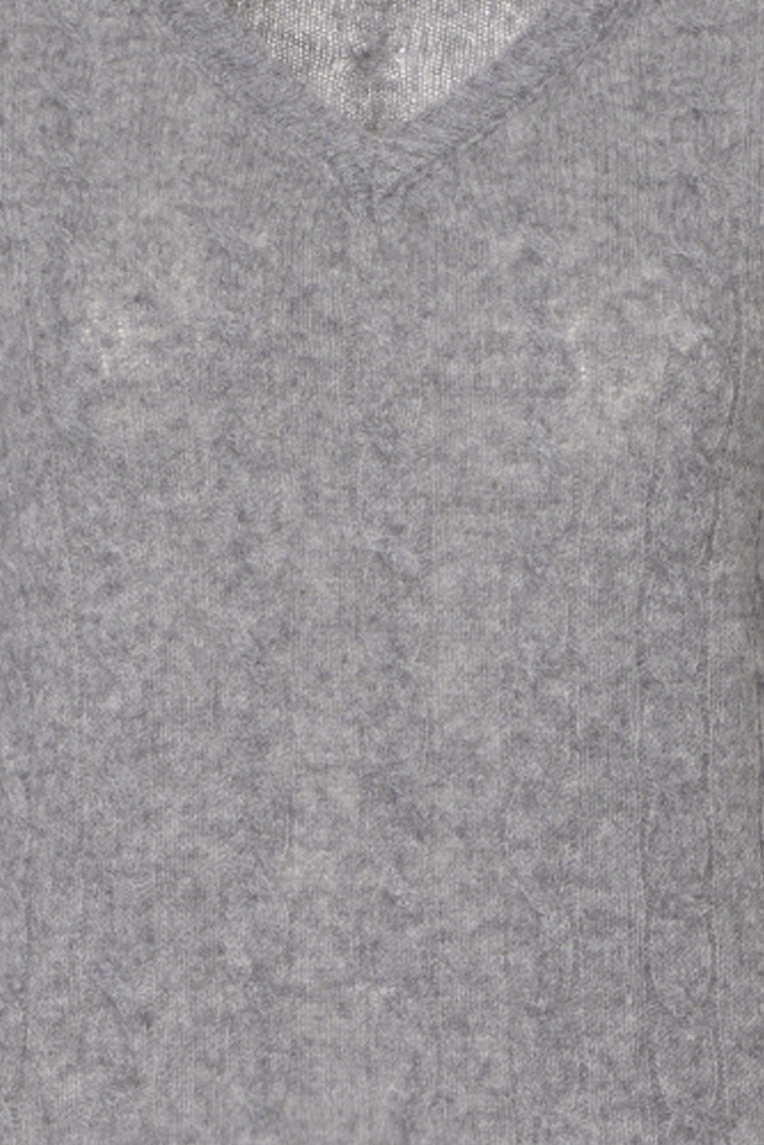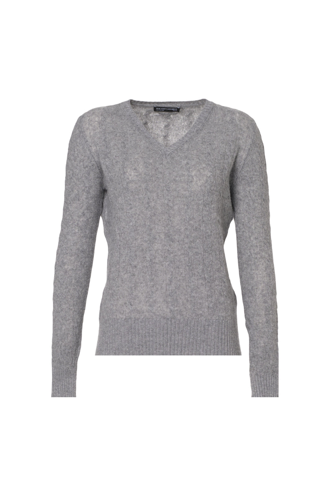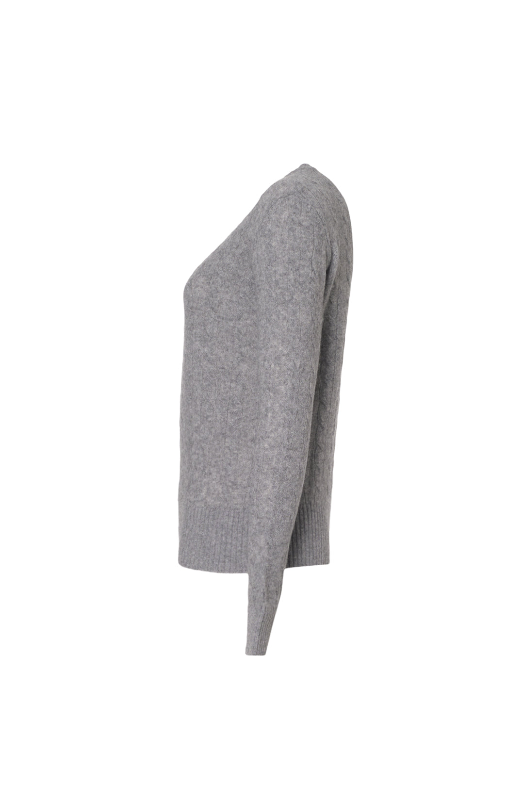 Orta Gri Melanj Amelia Avustralya Yünü Kaşmir Saç Örgülü V Yaka Uzun Kollu Kadın Kazak