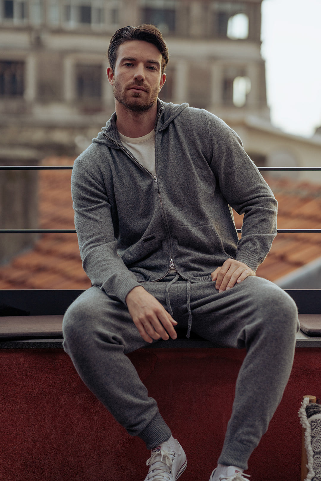 Sürdürülebilir lüksün, zamansız tasarım ile buluştuğu bu kapüşonlu hırka, orta gri melanjın asil tonlarında kusursuz bir zarafet vaad ediyor. Geri dönüştürülmüş kaşmir ve yün karışımı ile doğaya olan saygınızı giyim tarzınızla yansıtın, günlük kullanımınızda konfor ve sofistike bir duruşun keyfini çıkarın.