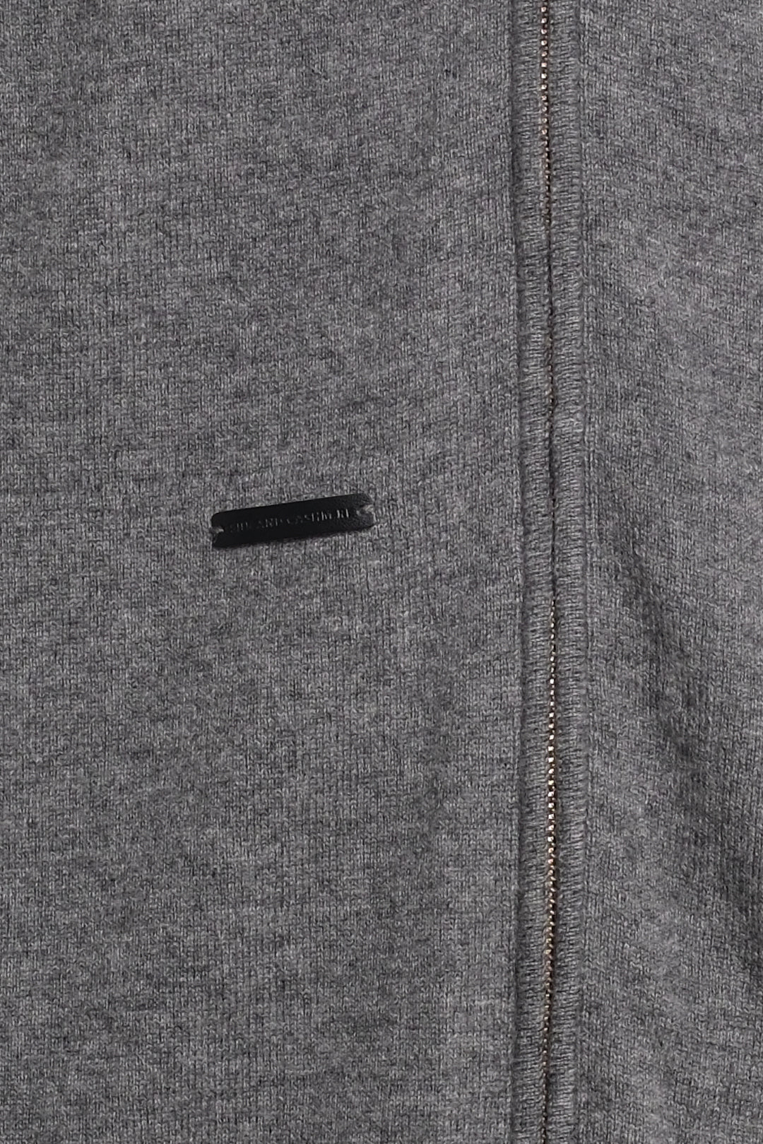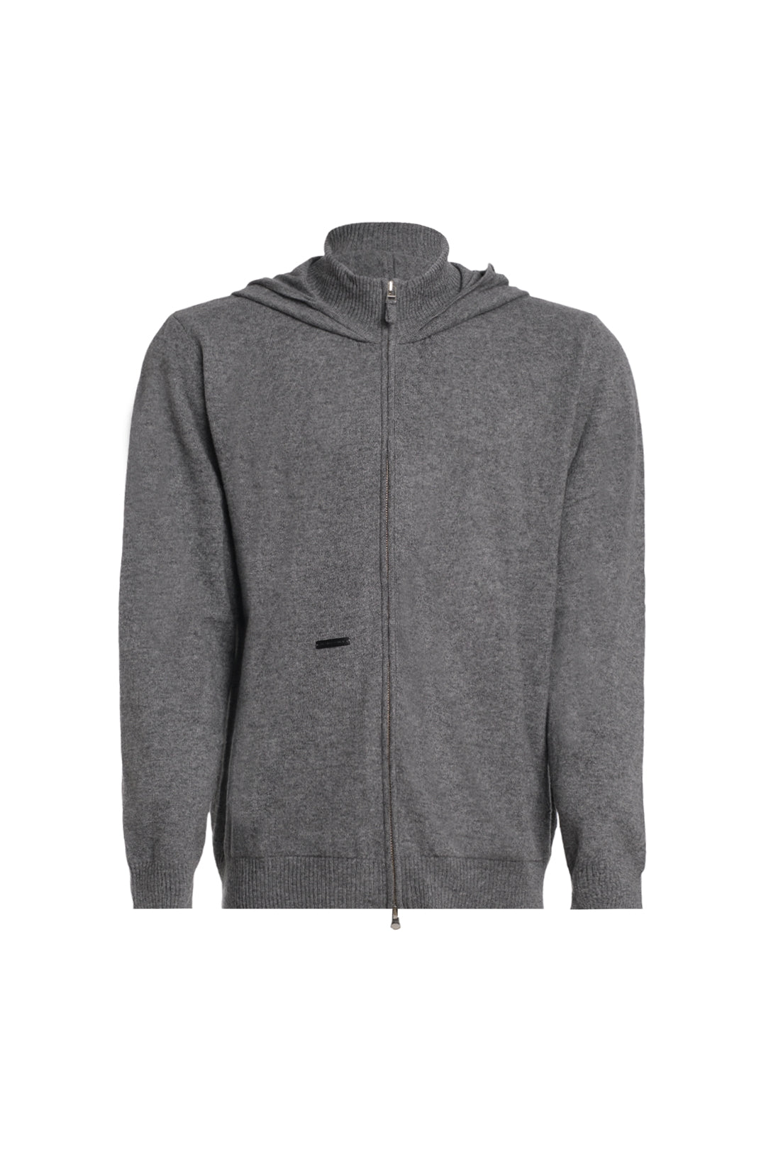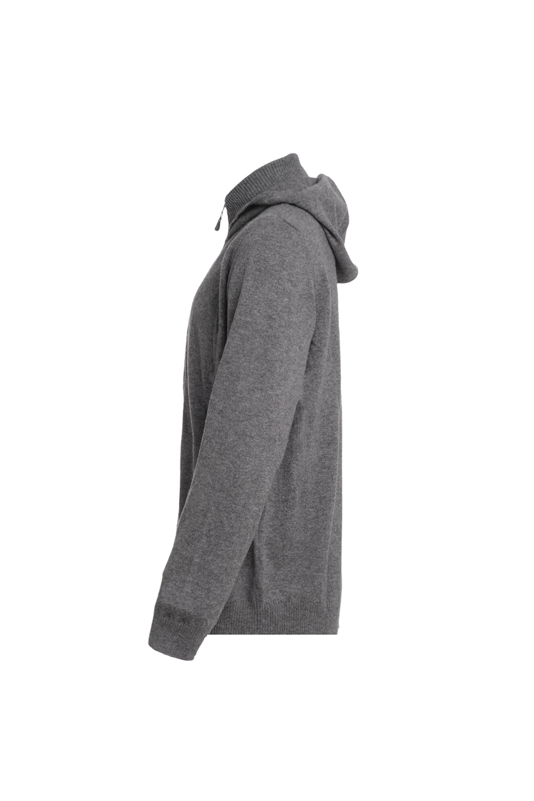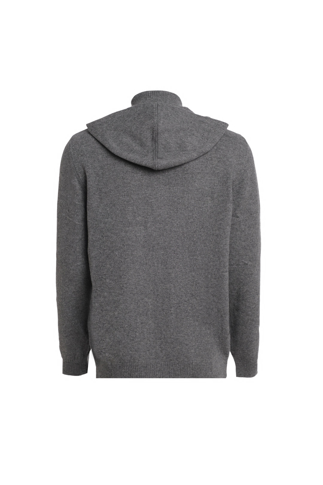 Orta Gri Melanj Kaşmir ve Yün Geri Dönüştürülmüş Reloved Yüksek Yaka Erkek Kapüşonlu Hırka