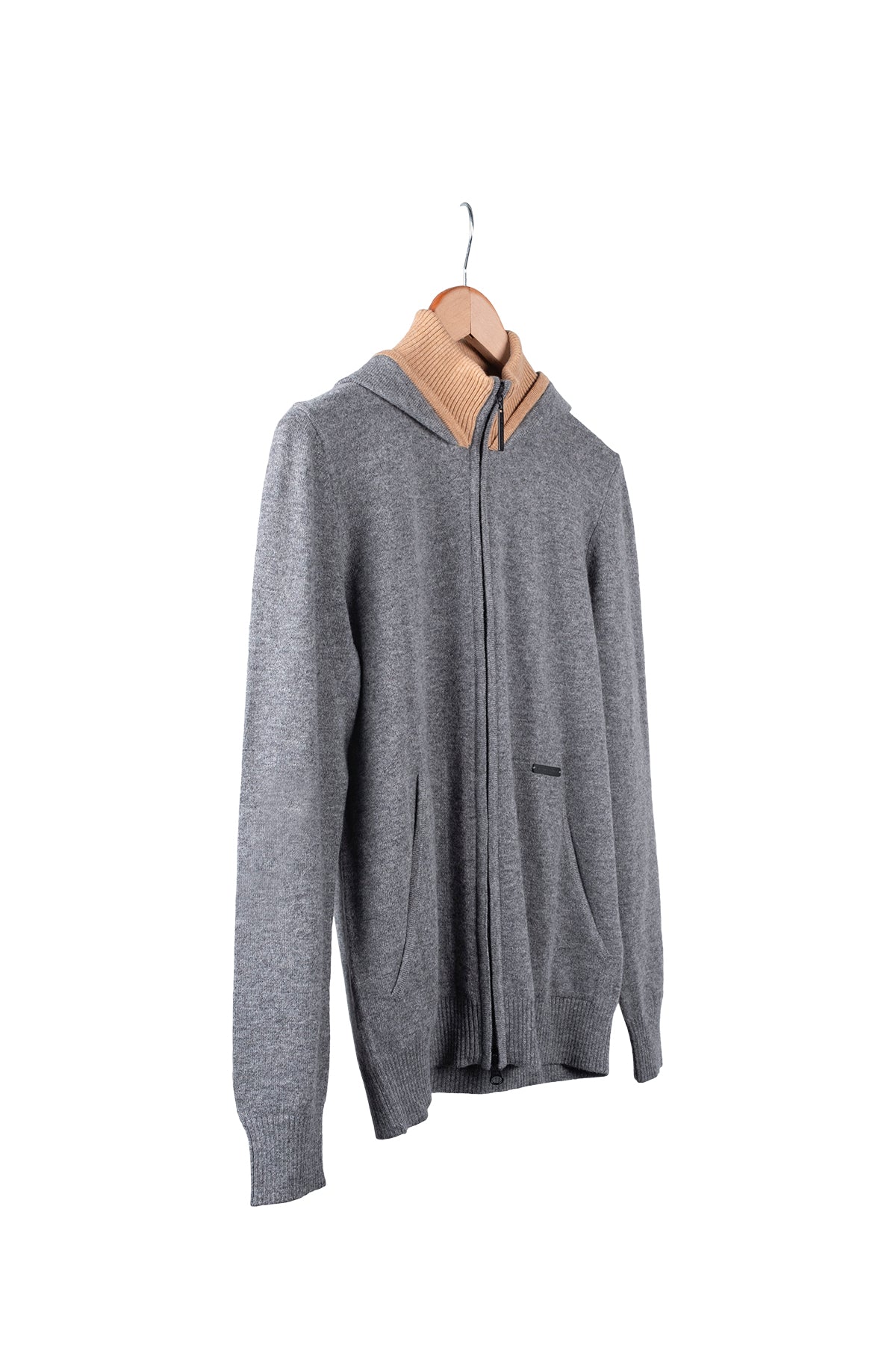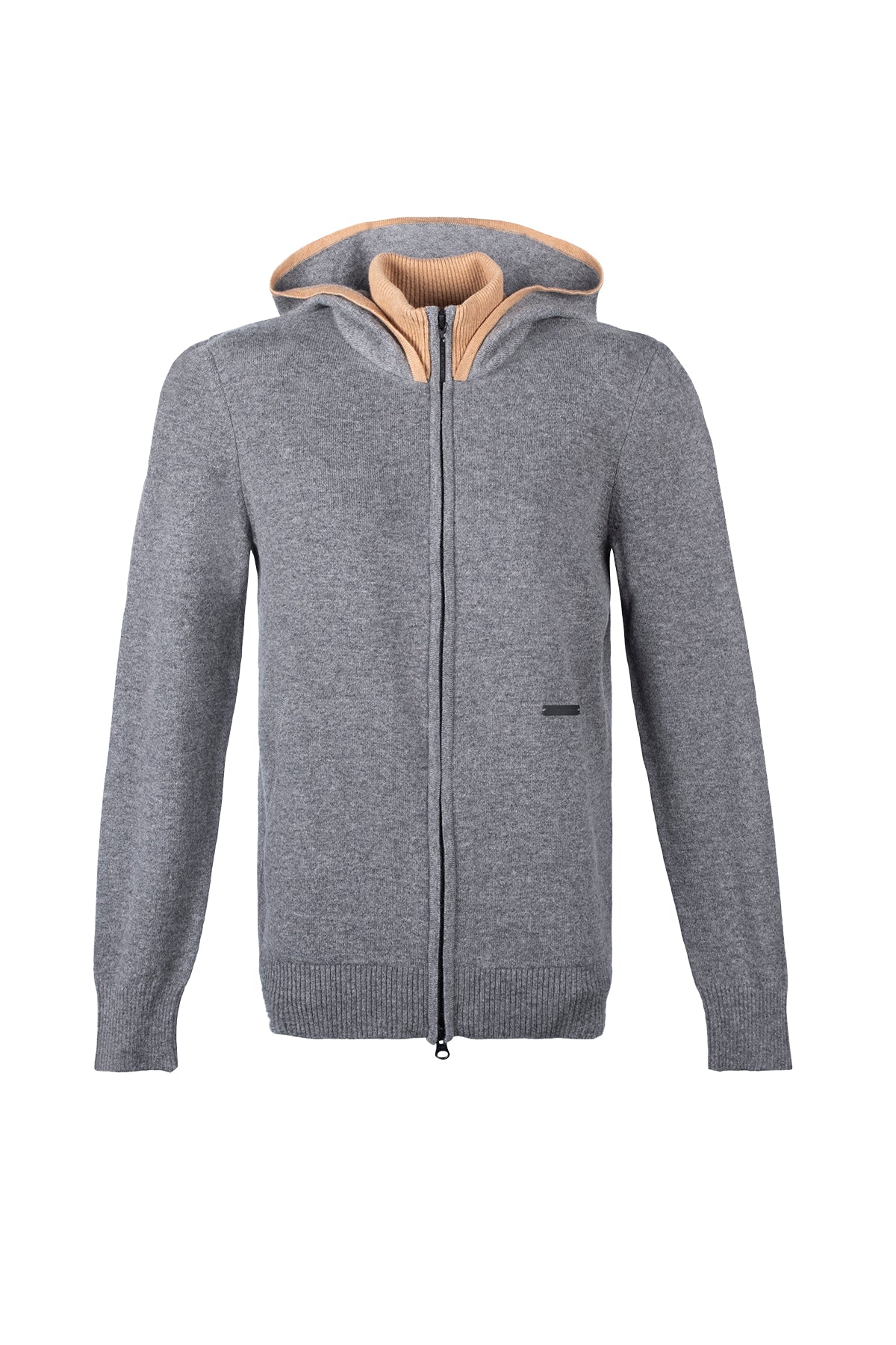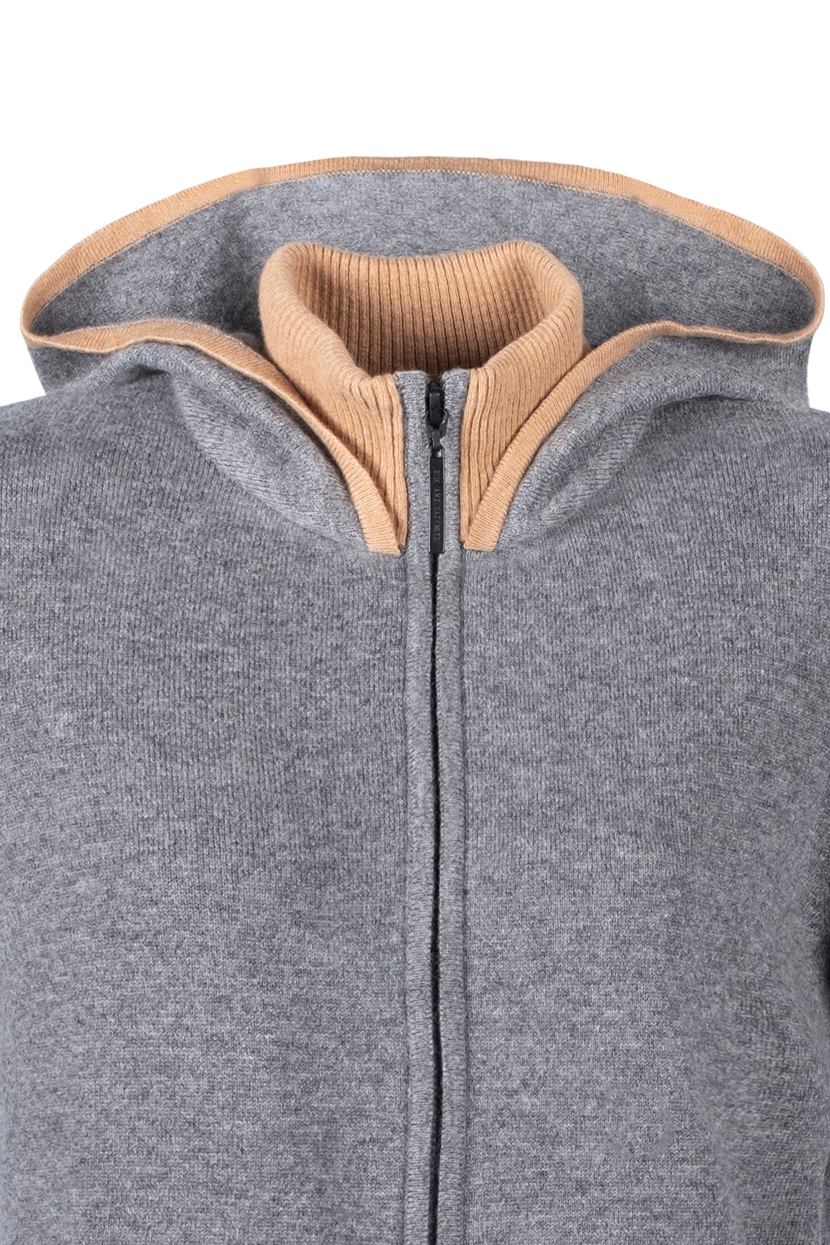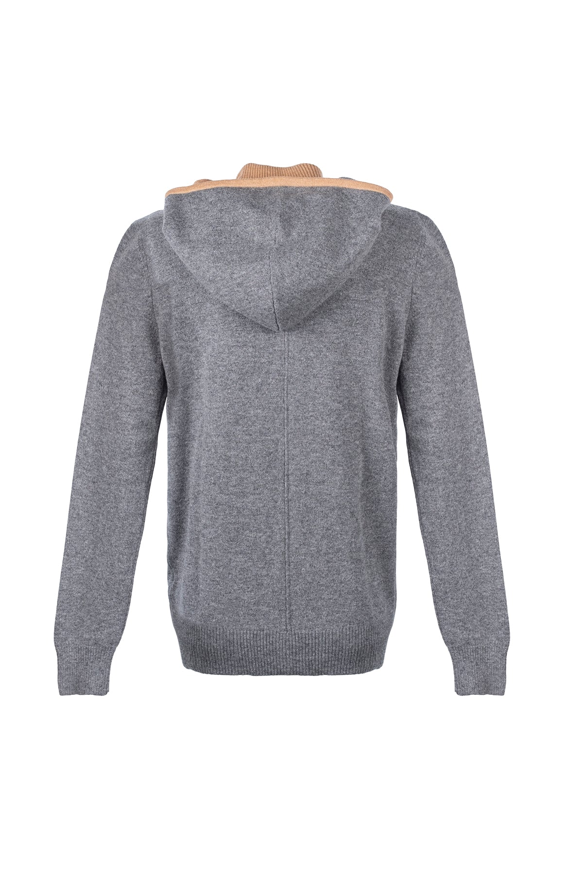 Orta Gri Melanj Laura Yün Kaşmir Yüksek Yaka Kapüşonlu Hırka