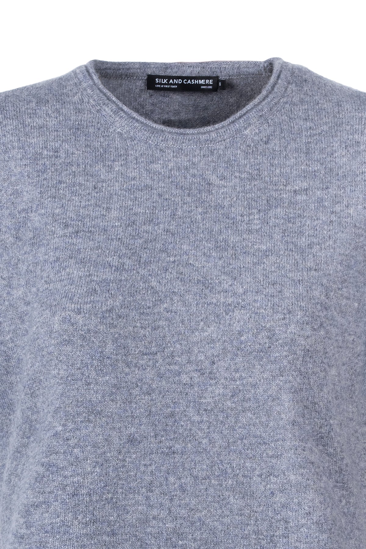 Orta Gri Melanj Lilly Saf Kaşmir Bisiklet Yaka Tişört