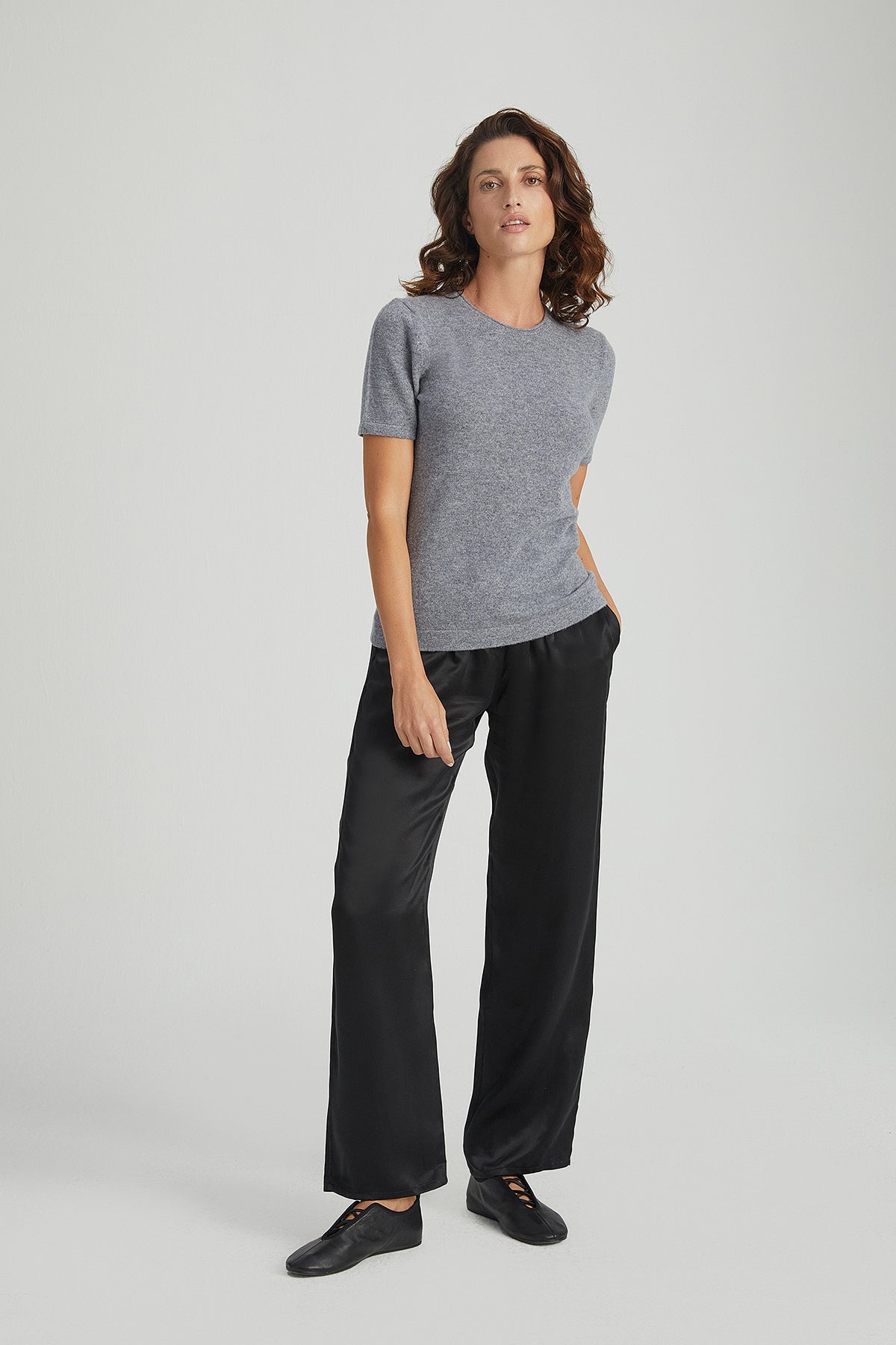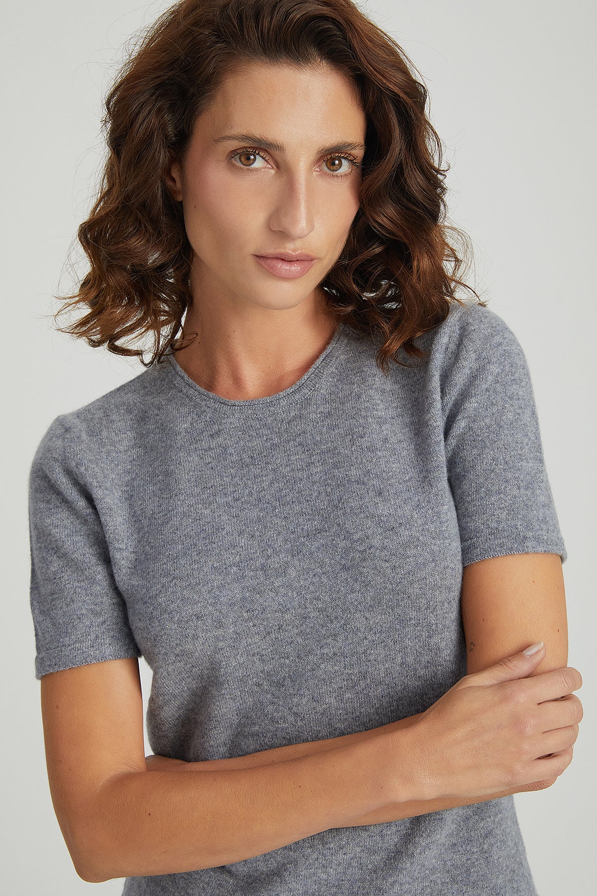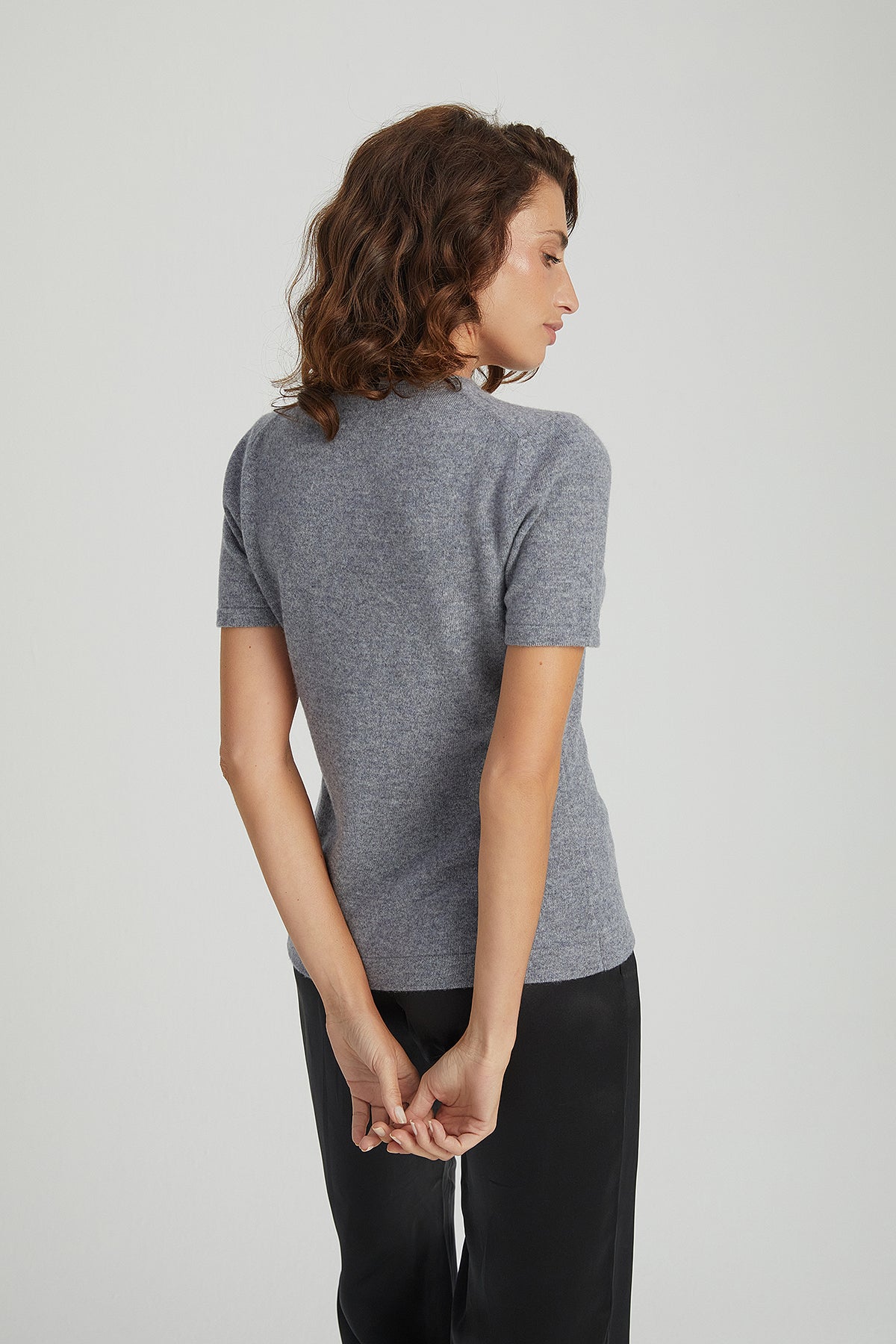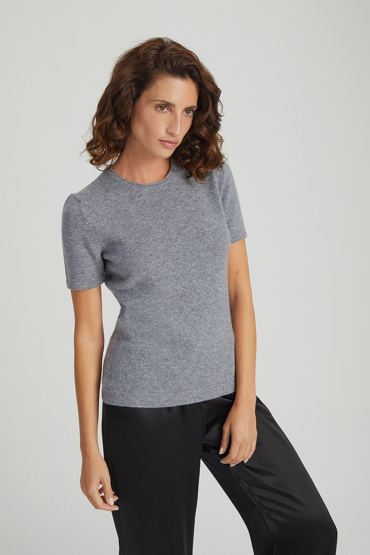 Orta gri melanj tonlarındaki bu saf kaşmir tişört, doğal dokusuyla cildinize yumuşak bir dokunuş kazandırırken, sade tasarımıyla günlük kullanım için ideal bir seçenektir. Bisiklet yaka ve kısa kol yapısı, her mevsime uyum sağlayarak çok yönlü kullanım sunar. Hafifliğiyle rahatlık vadeden bu kaşmir tişört, her gün stil ve konforu bir araya getiriyor.