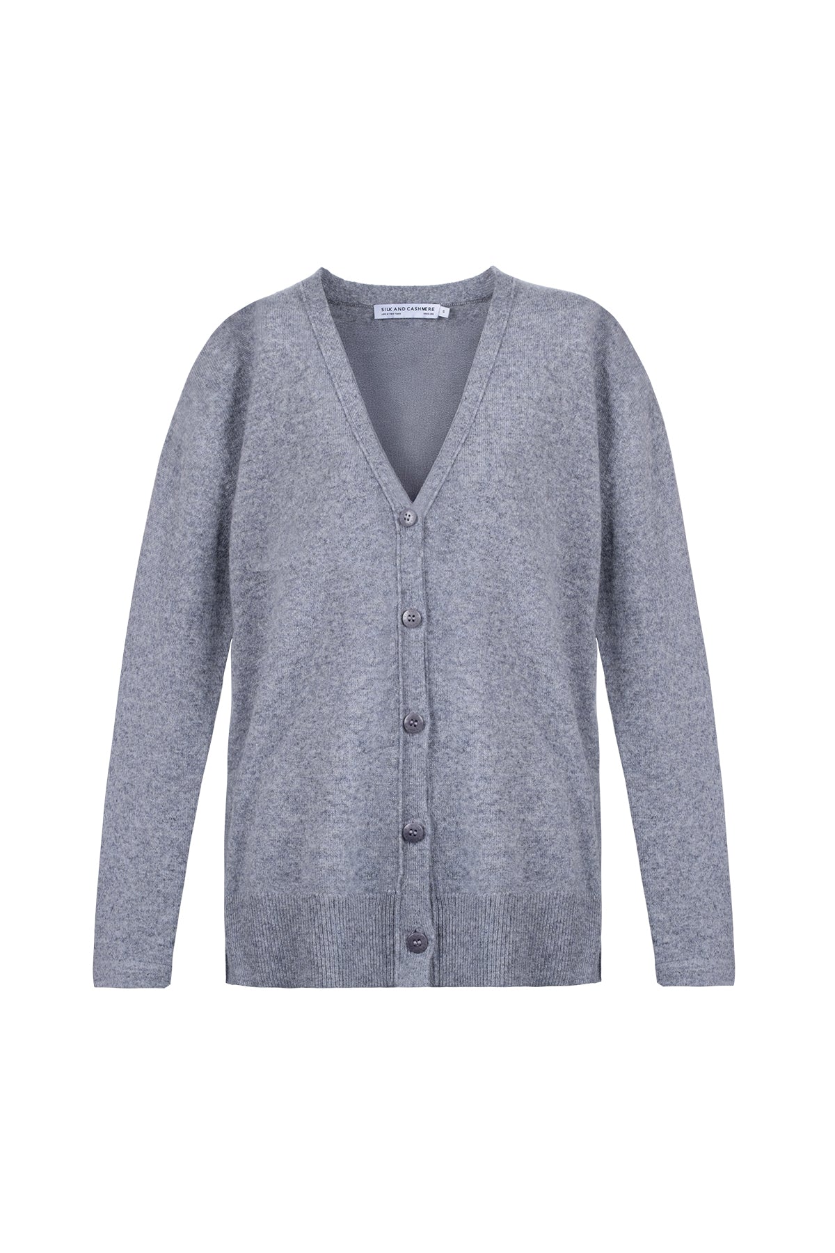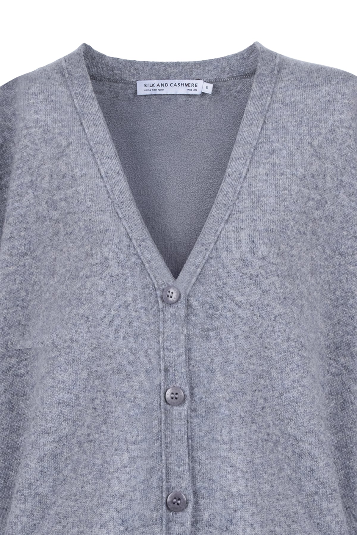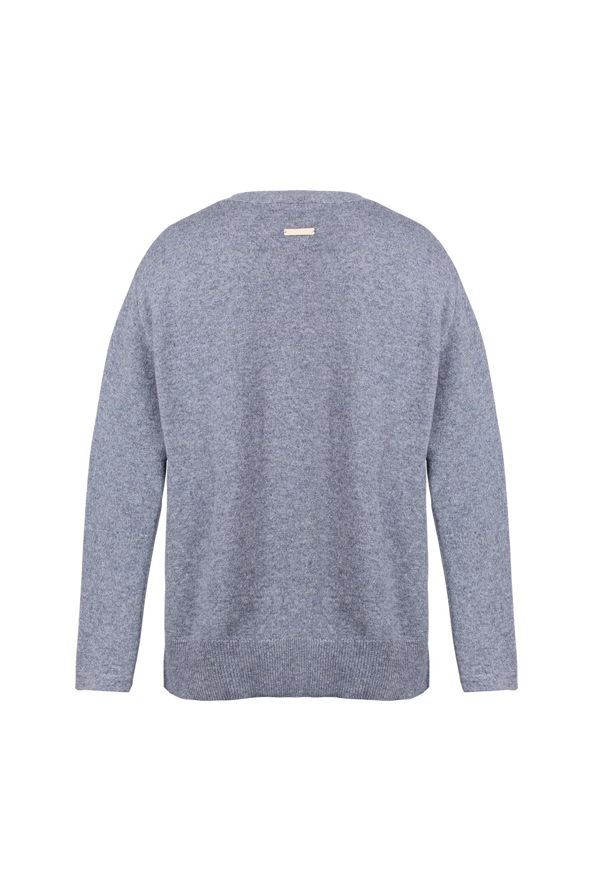 Orta Gri Melanj Lilly Saf Kaşmir V Yaka Hırka