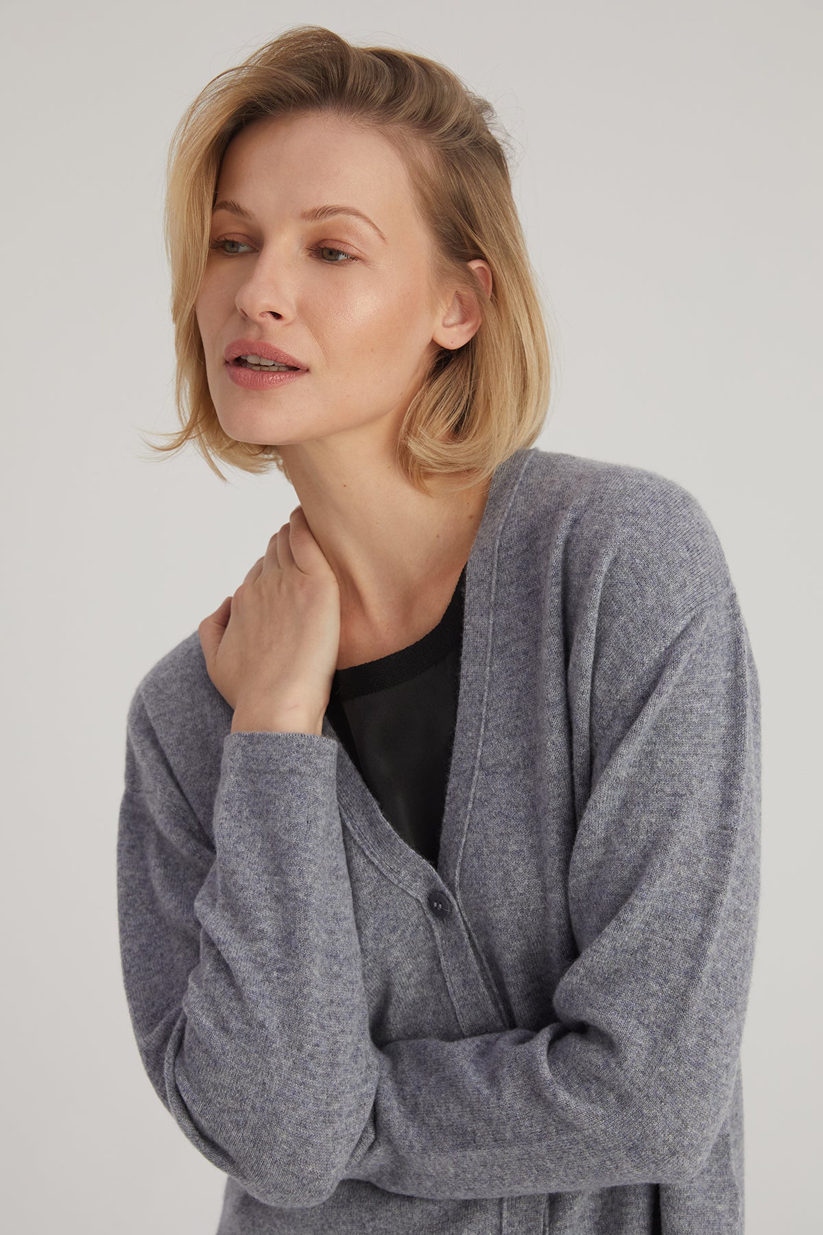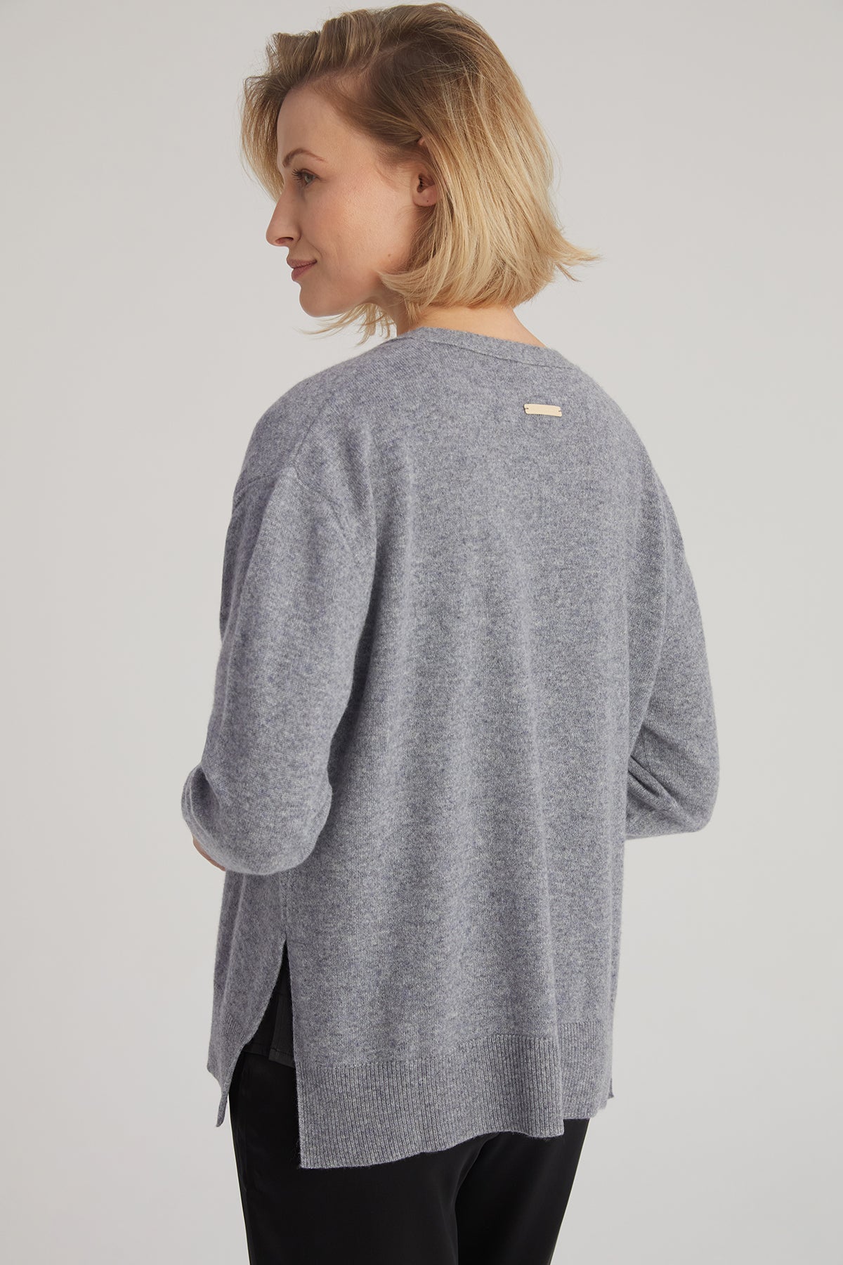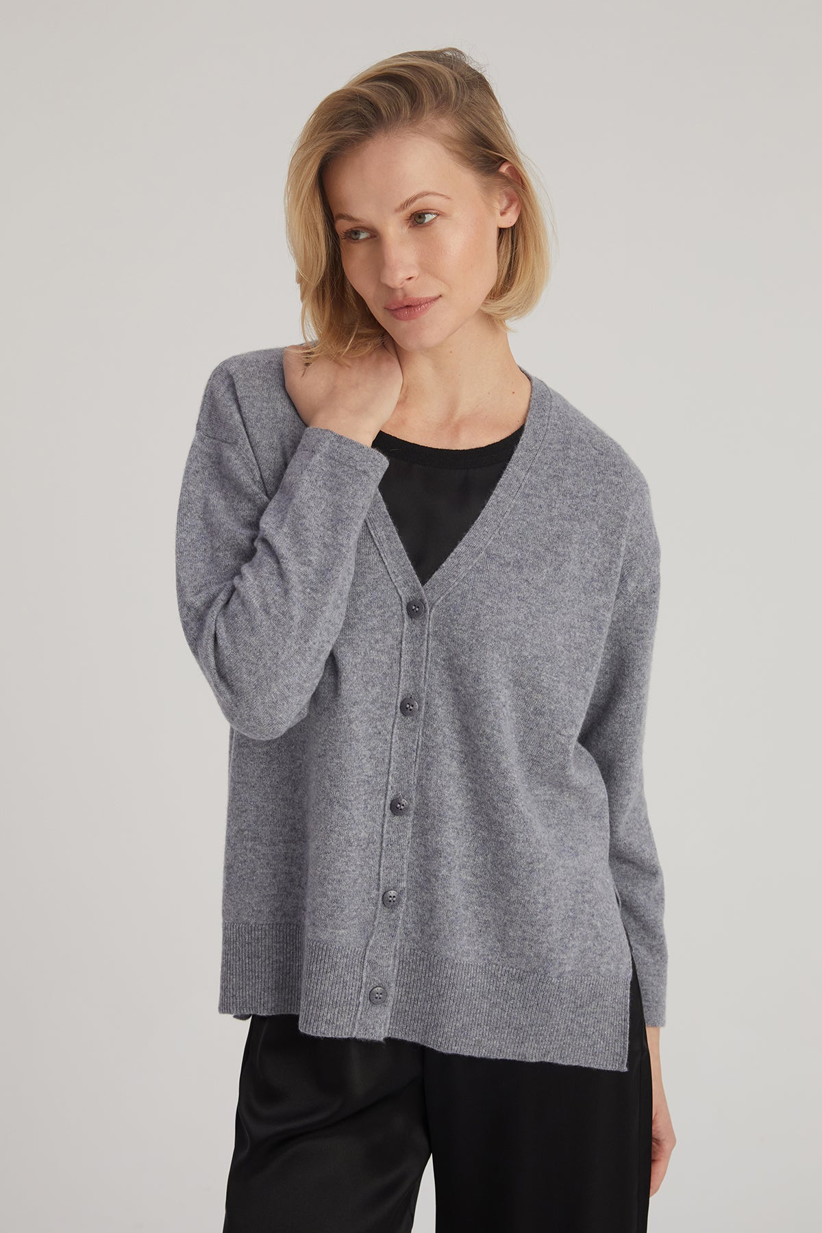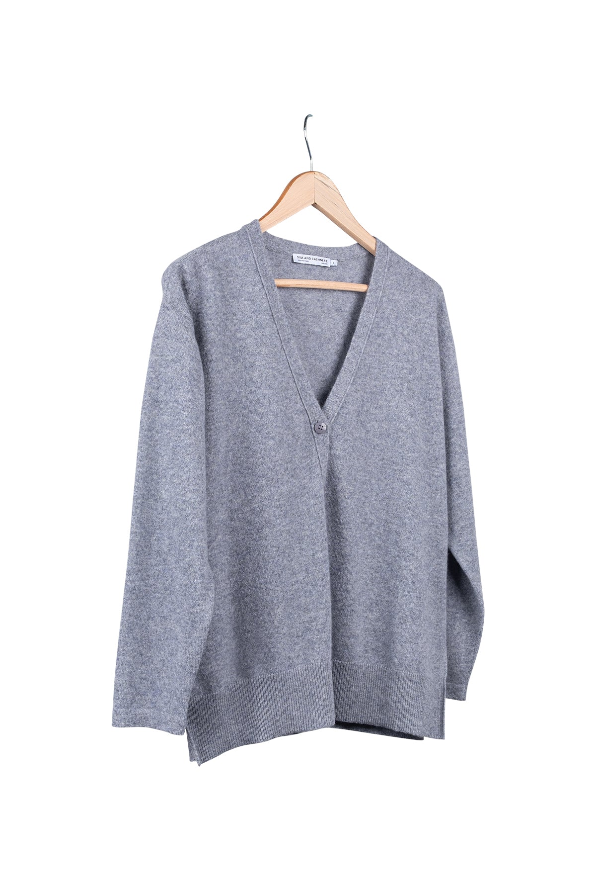 Orta Gri Melanj Lilly Saf Kaşmir V Yaka Hırka