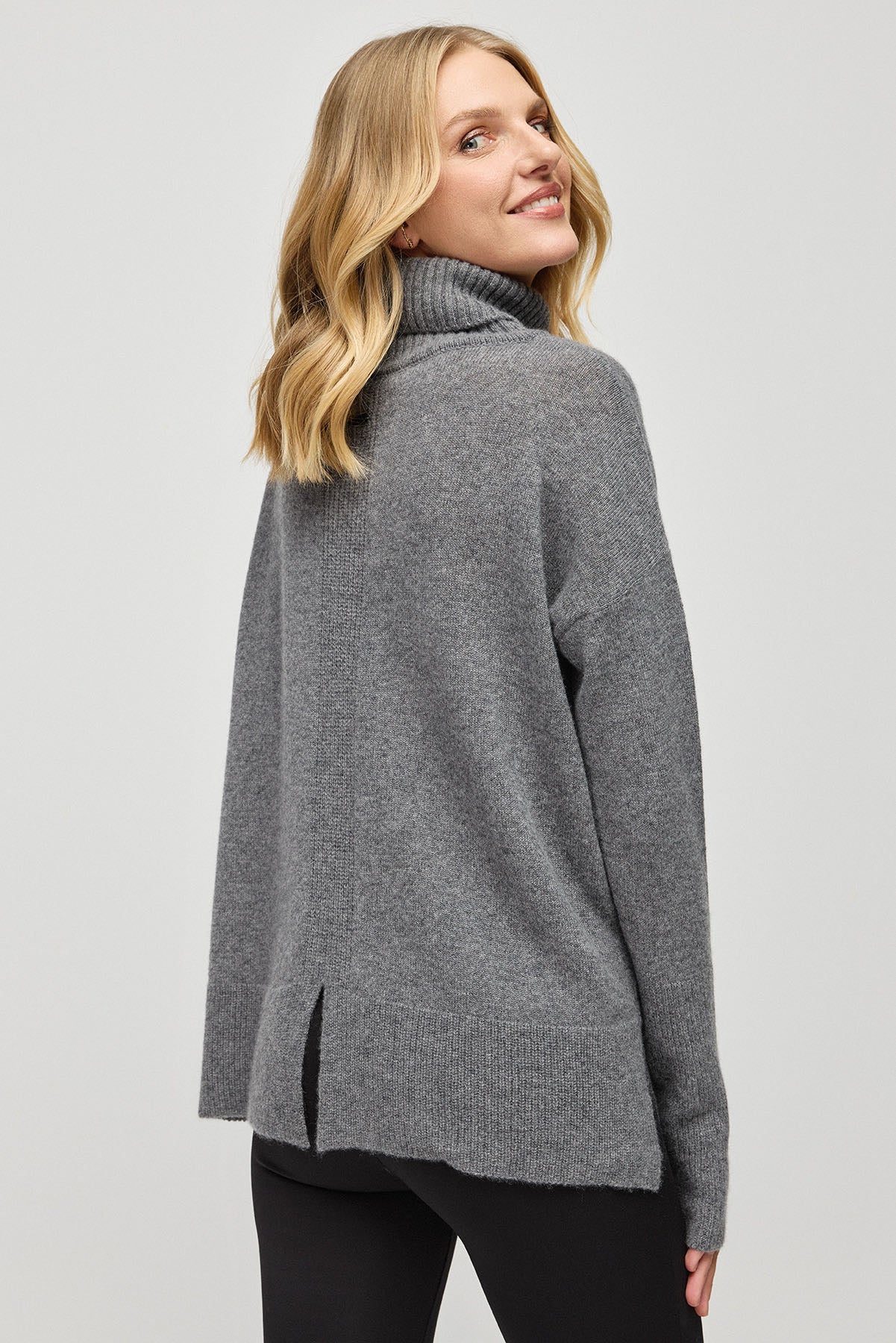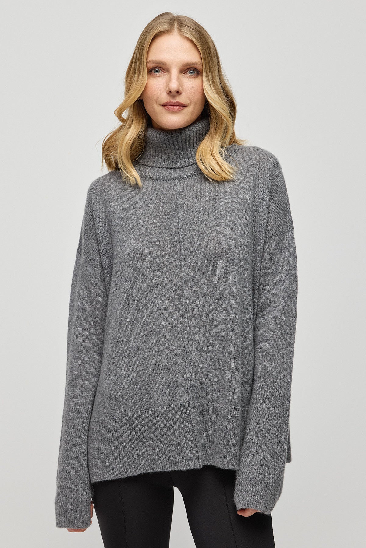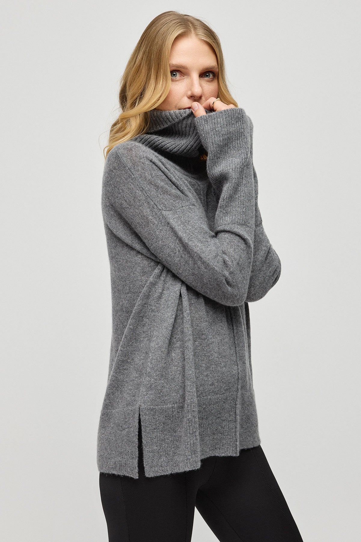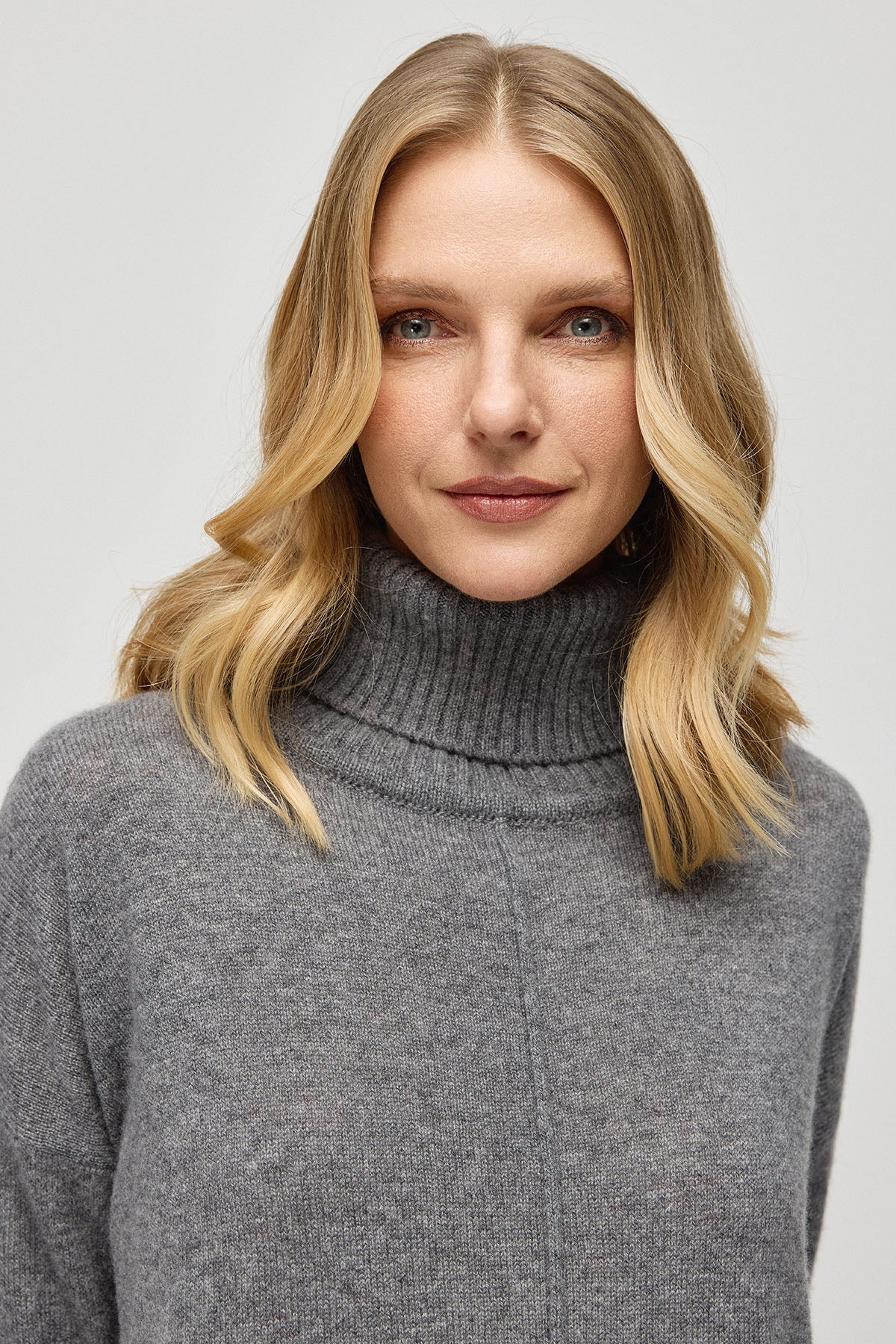 Orta Gri Melanj Saf Kaşmir Isabella Degaje Yaka Kadın Kazak