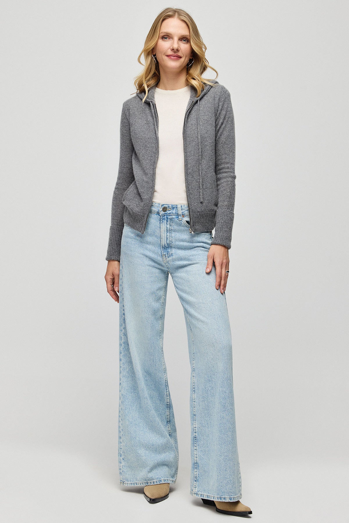 Orta Gri Melanj Orta Gri Melanj Saf Kaşmir Isabella Kadın Kapüşonlu Hırka