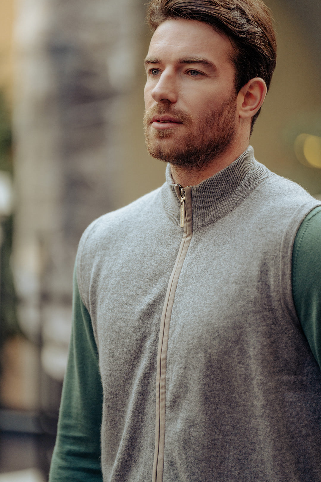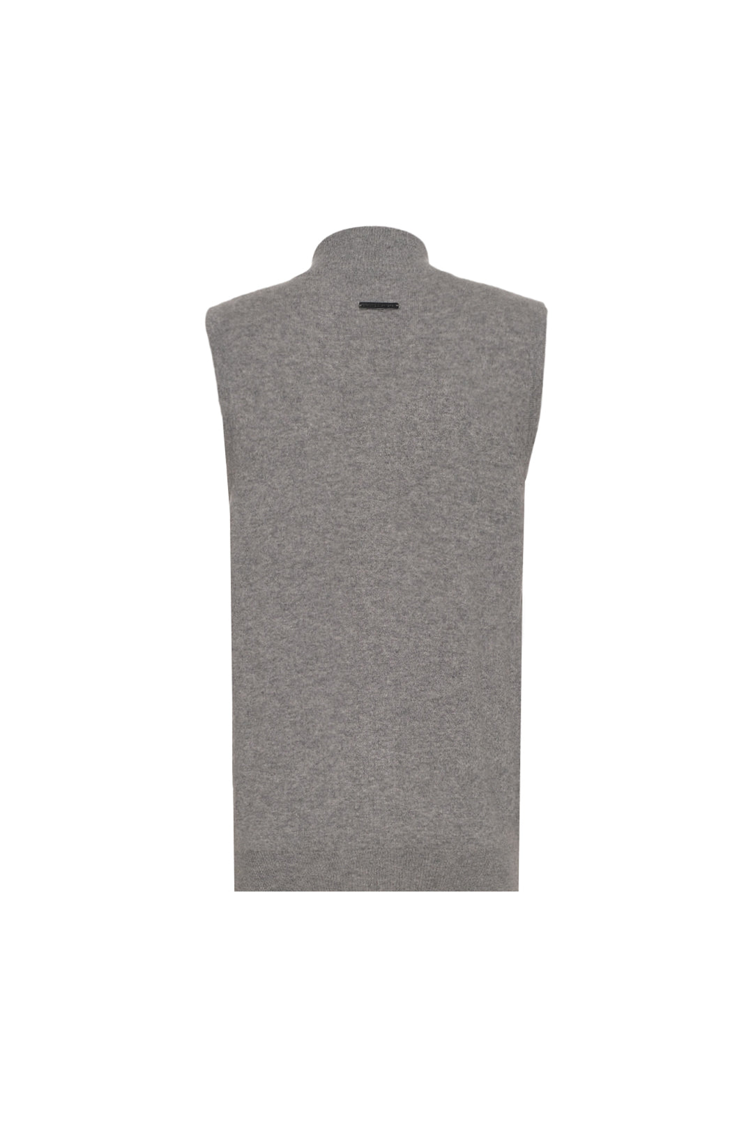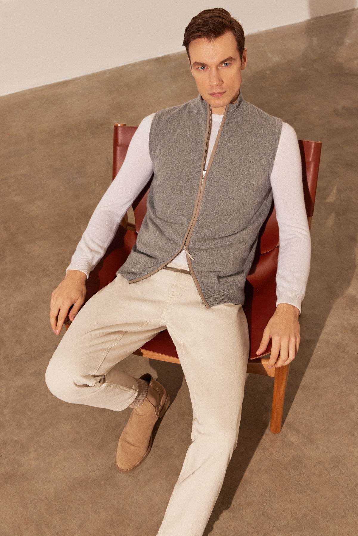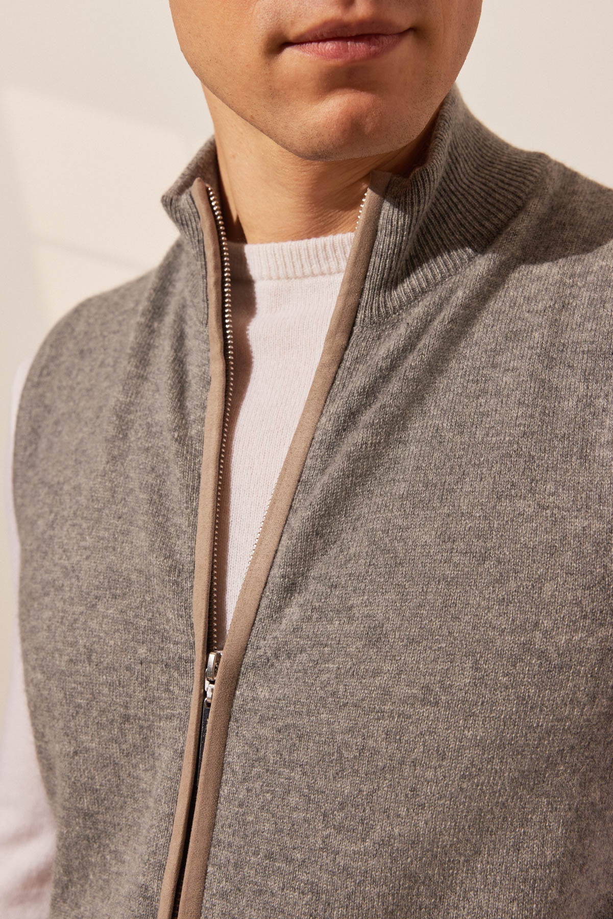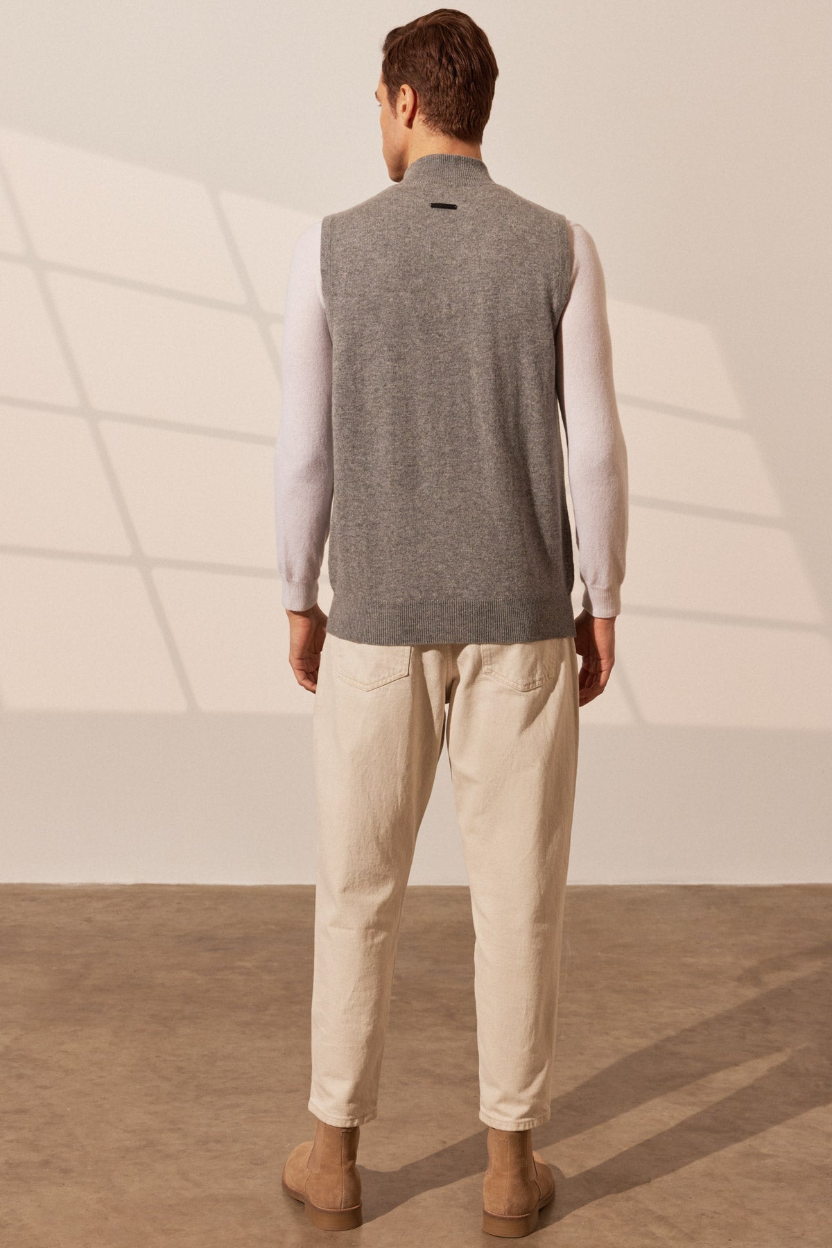 Orta Gri Melanj Saf Kaşmir Yarım Balıkçı Yaka Fermuarlı Erkek Yelek